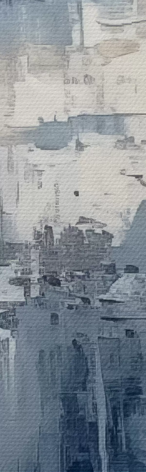 Pilt Abstraktne minimalistlik õlimaal, hõõrutud, geomeetriline, peits, sinine ja valge värv Nr r38906