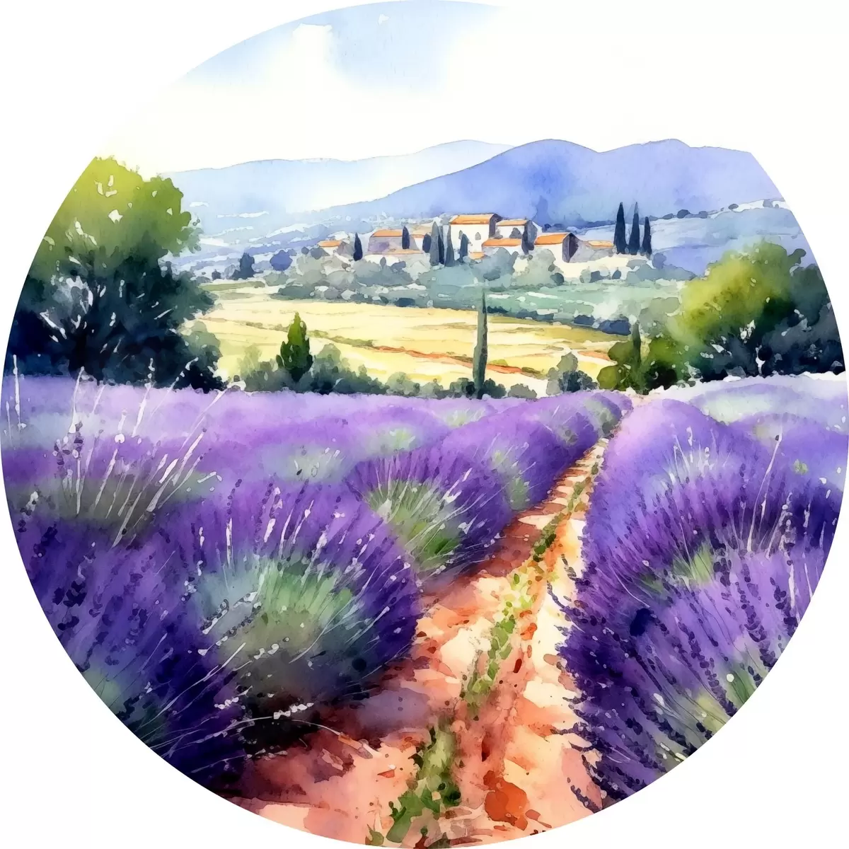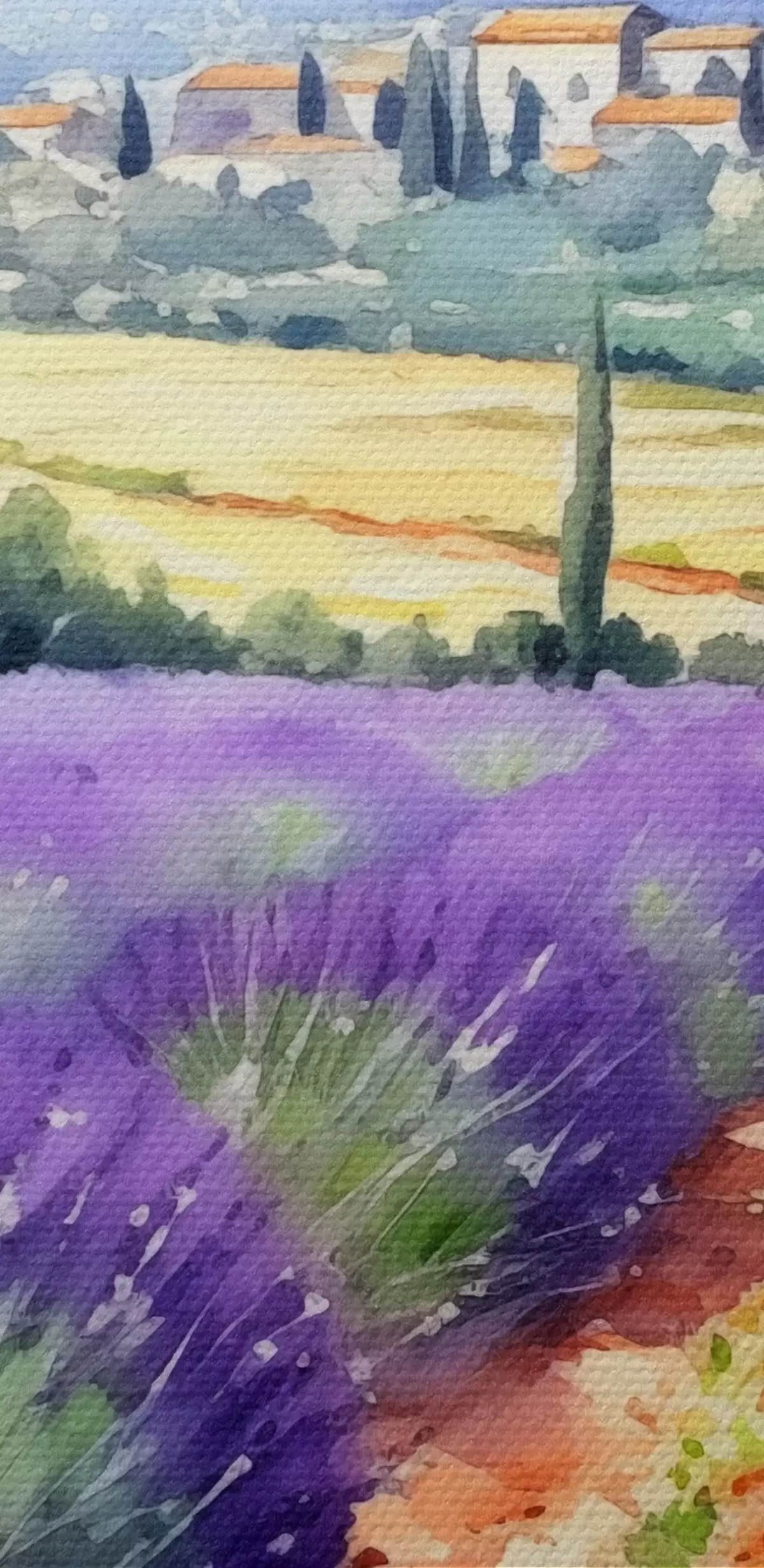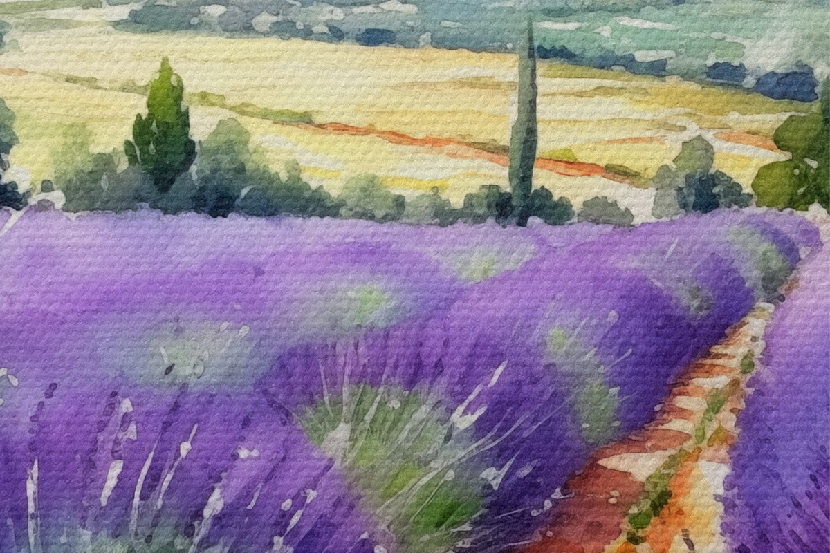Pilt Akvarell-lavendliväli mägede ja maastiku taustal Nr r38913