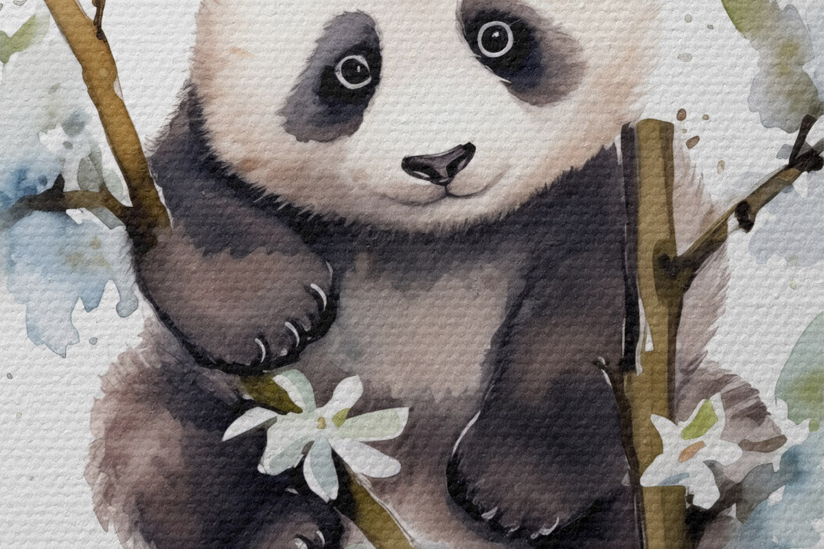 Pilt Panda istub mänguliselt lillede vahel Nr r38924