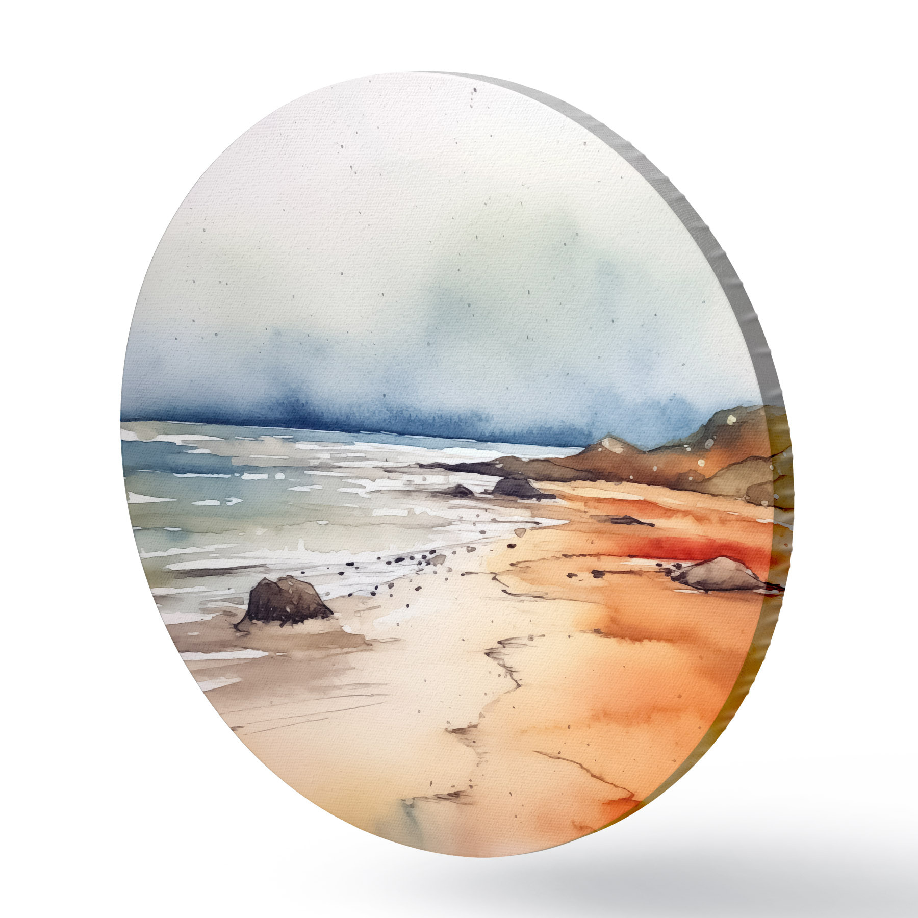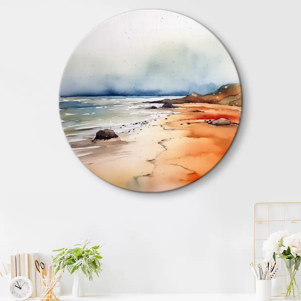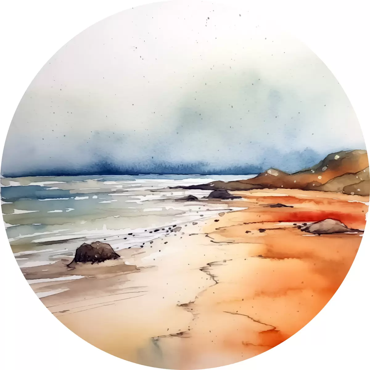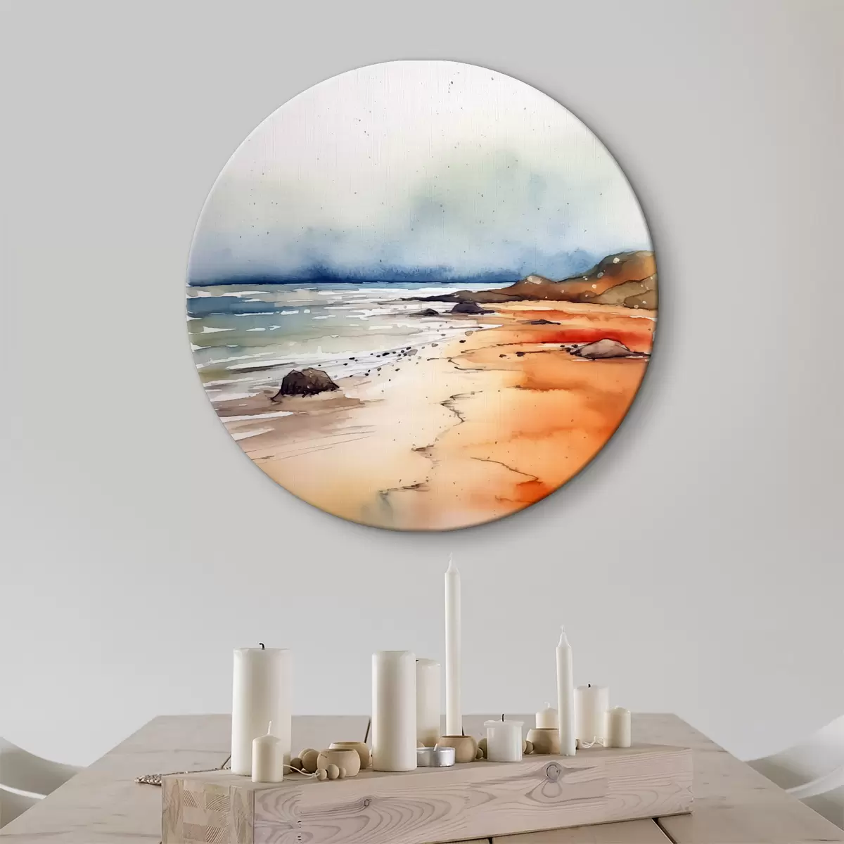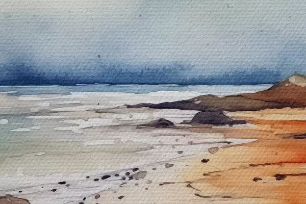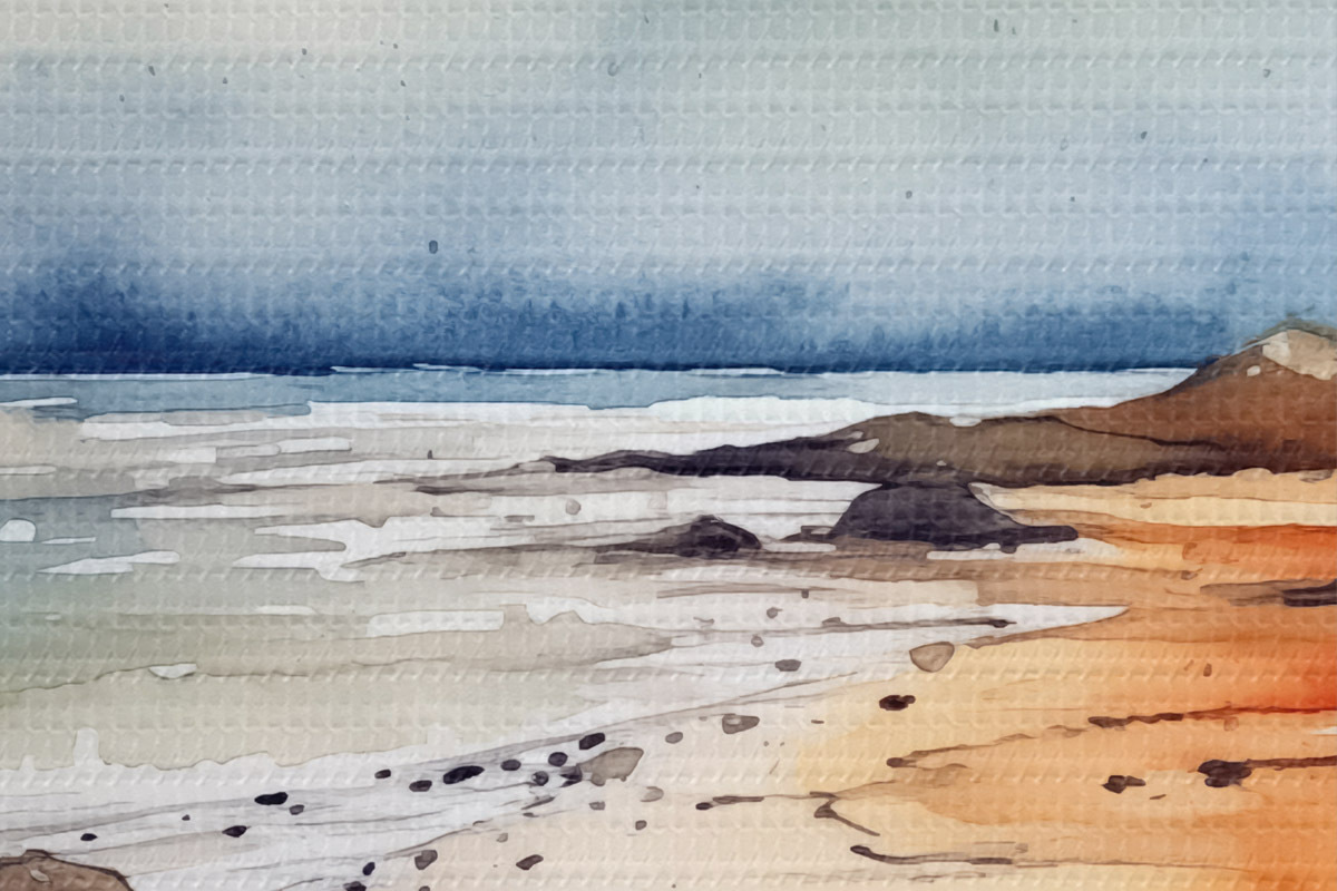 Pilt Meri ja rand, vihm, akvarell, pritsmed, maastik, maastik, sinine, oranž värv Nr r38936