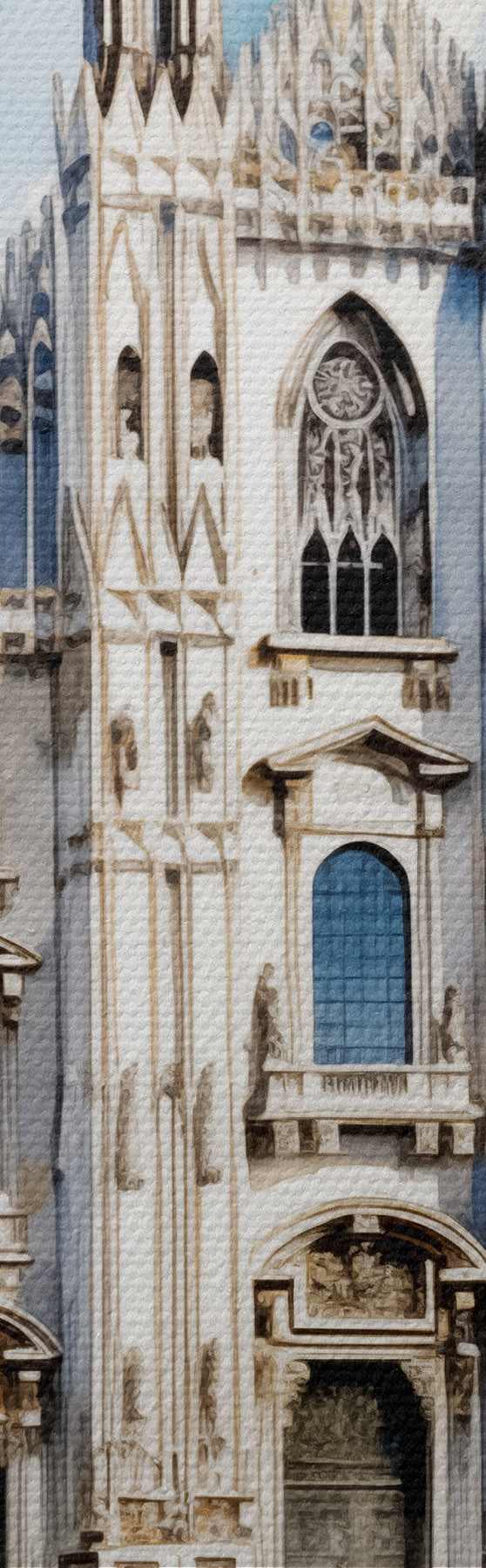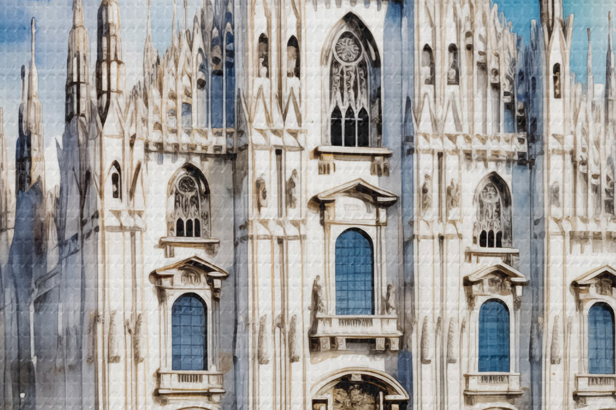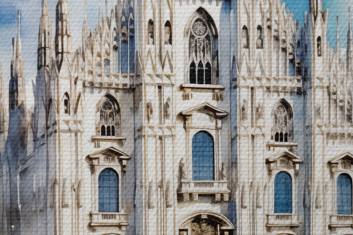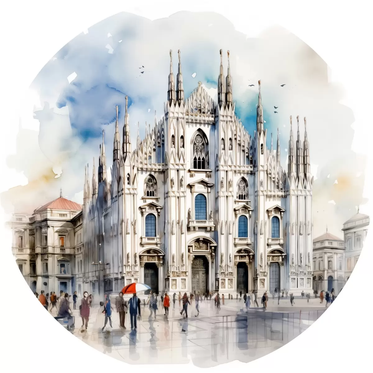Pilt Duomo katedraal Milanos, arhitektuur, linn, vihm, akvarell, sinine, hall, inimesed jalutavad Nr r38938