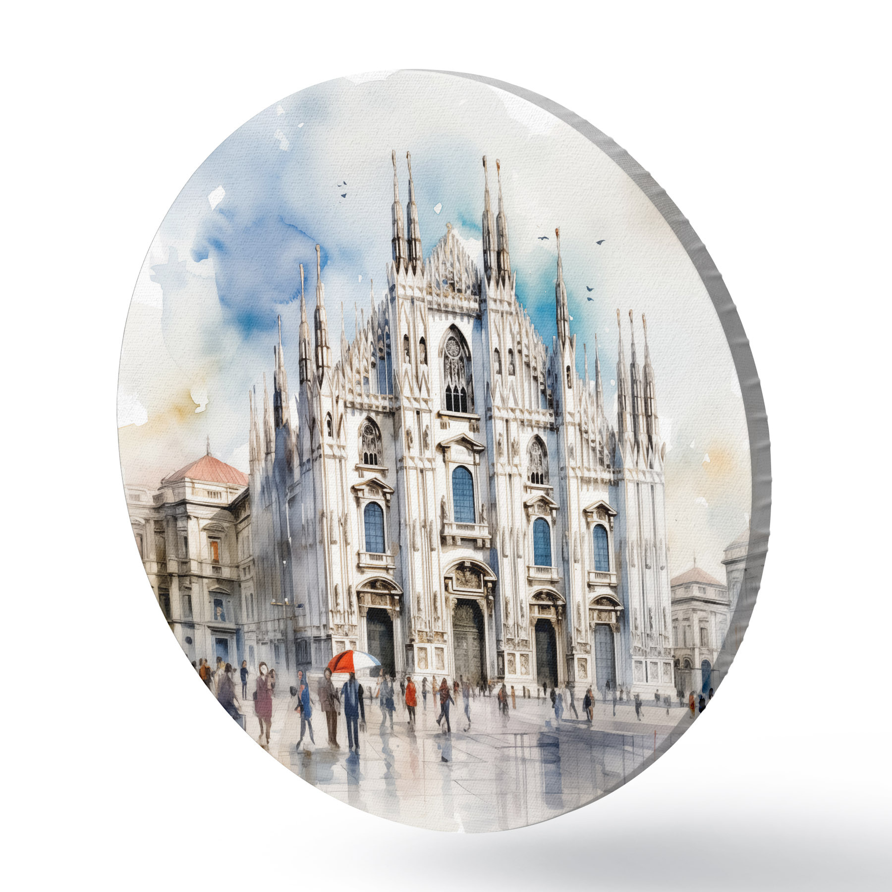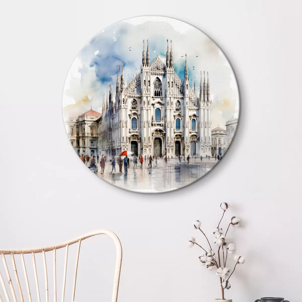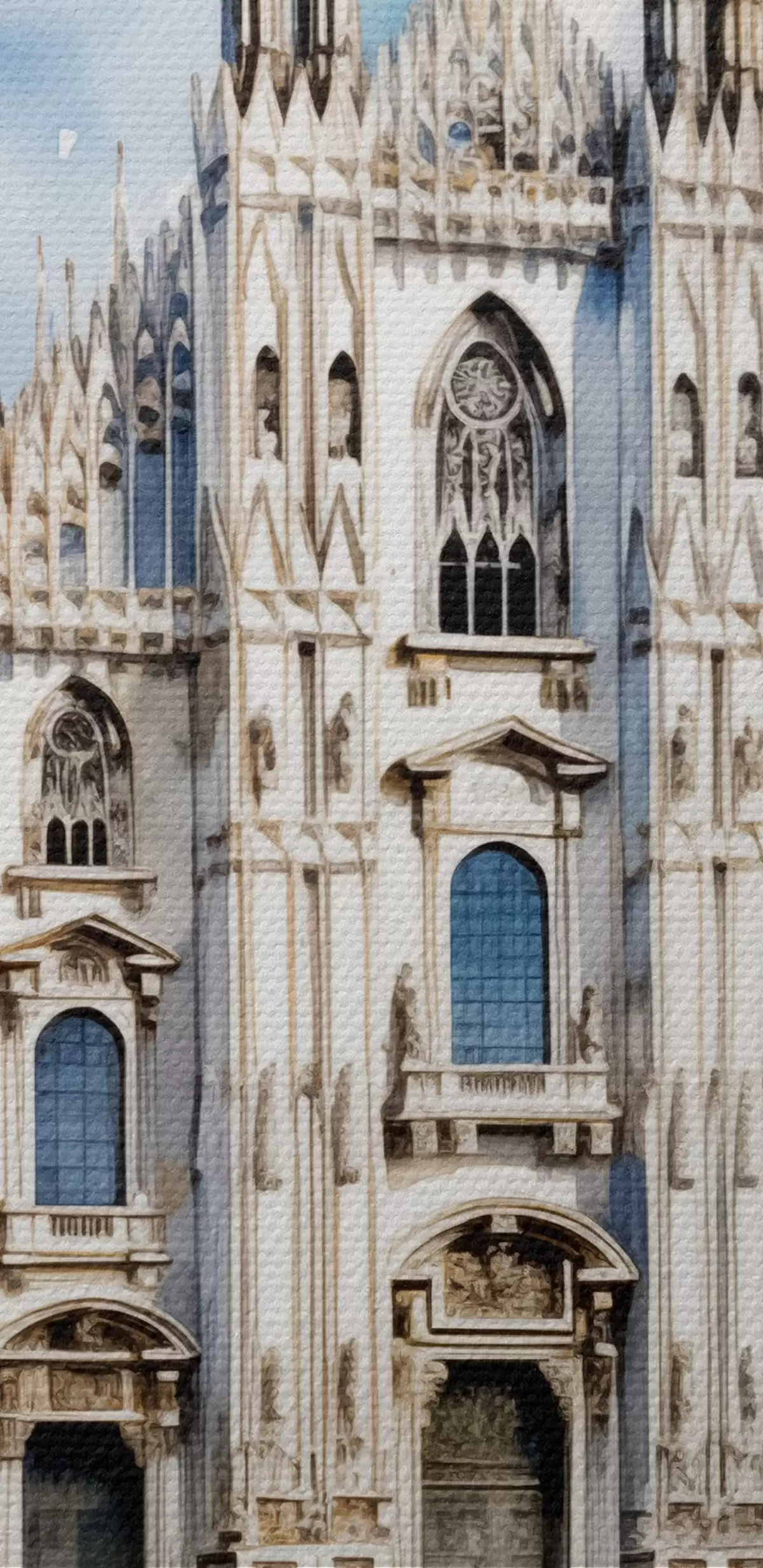 Pilt Duomo katedraal Milanos, arhitektuur, linn, vihm, akvarell, sinine, hall, inimesed jalutavad Nr r38938