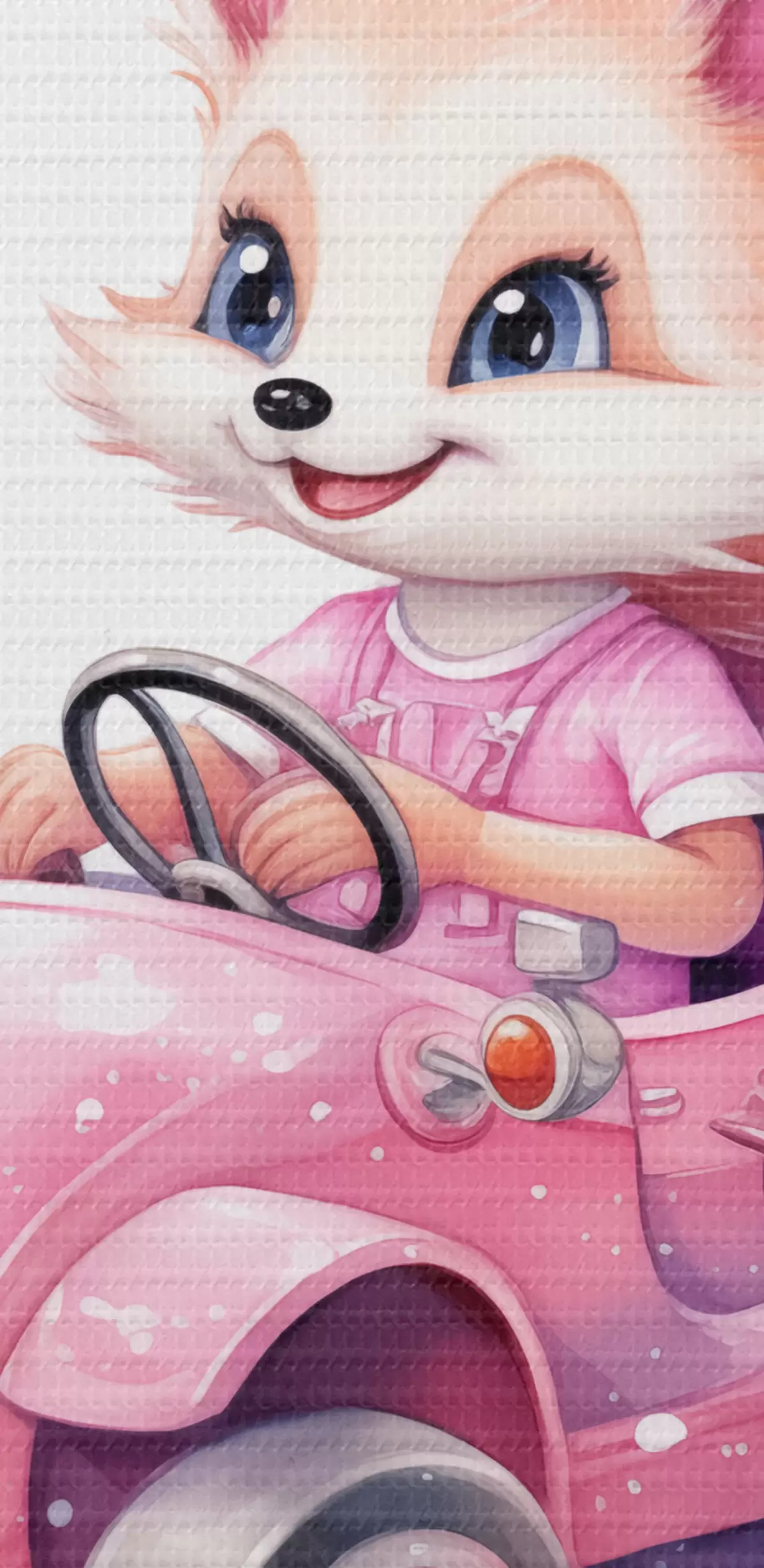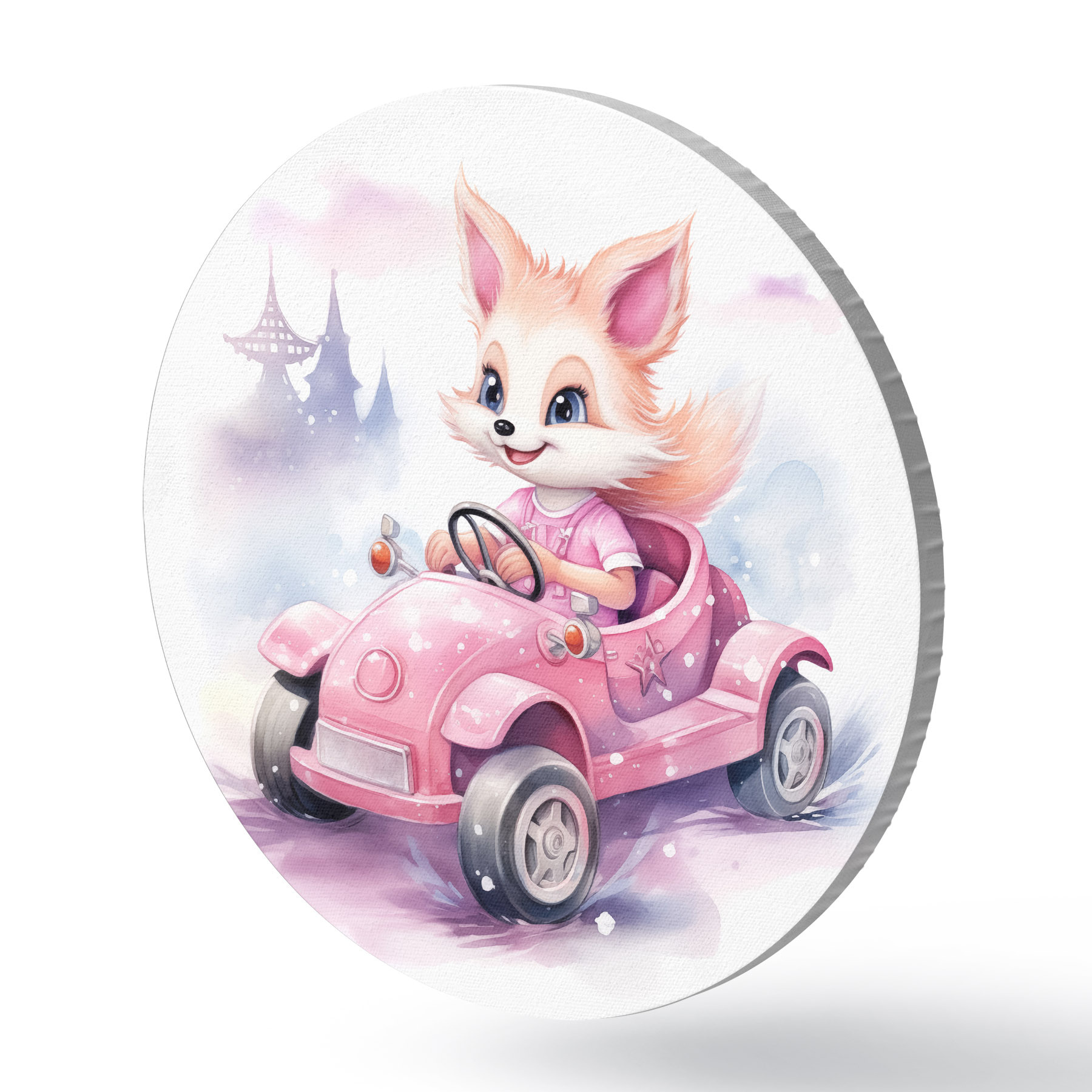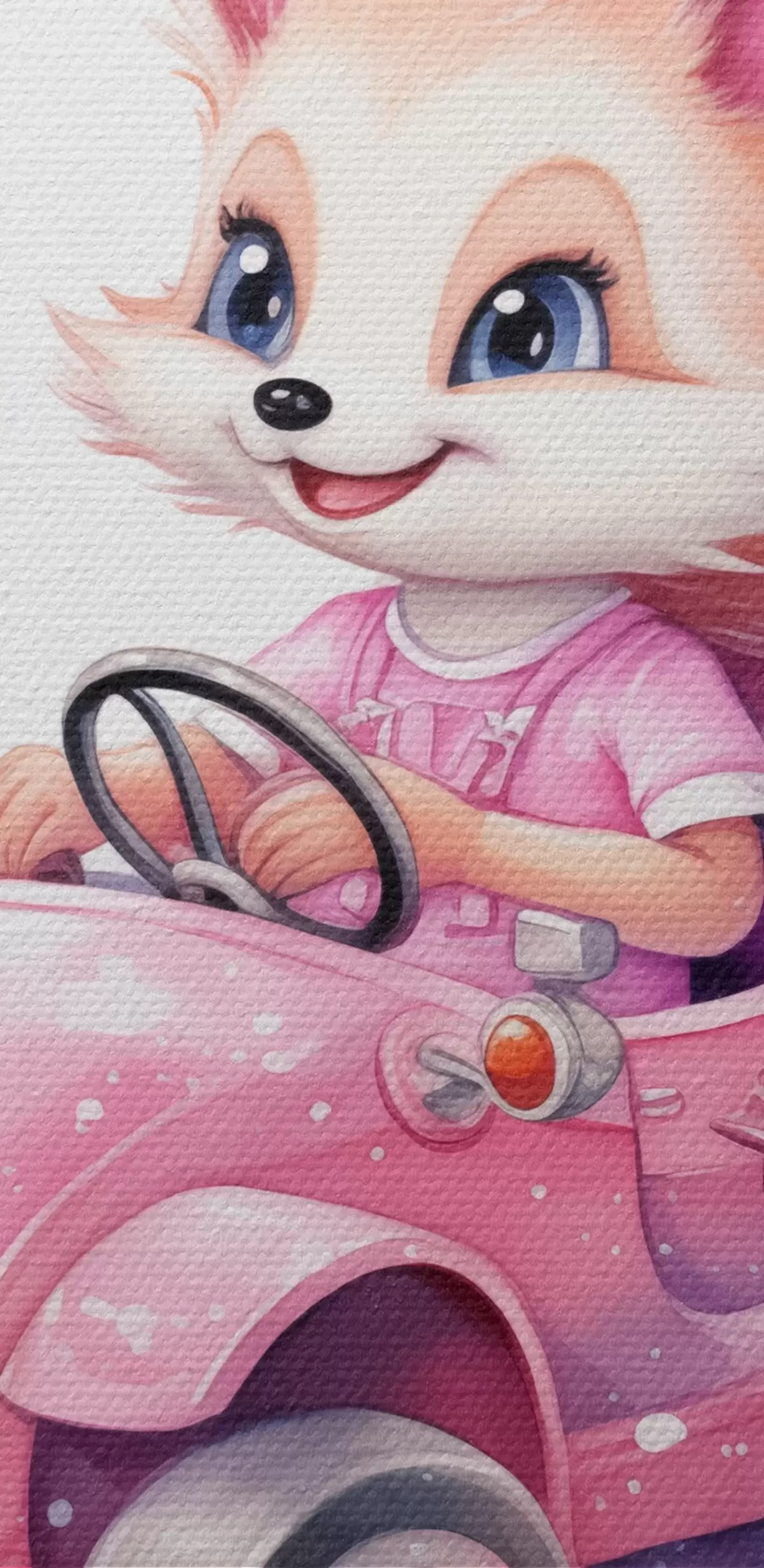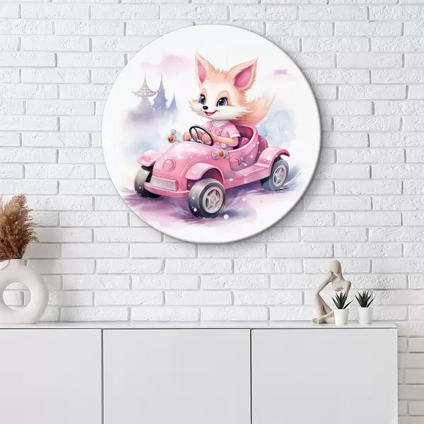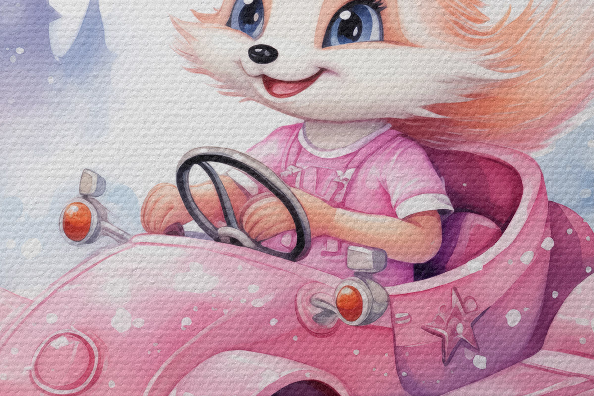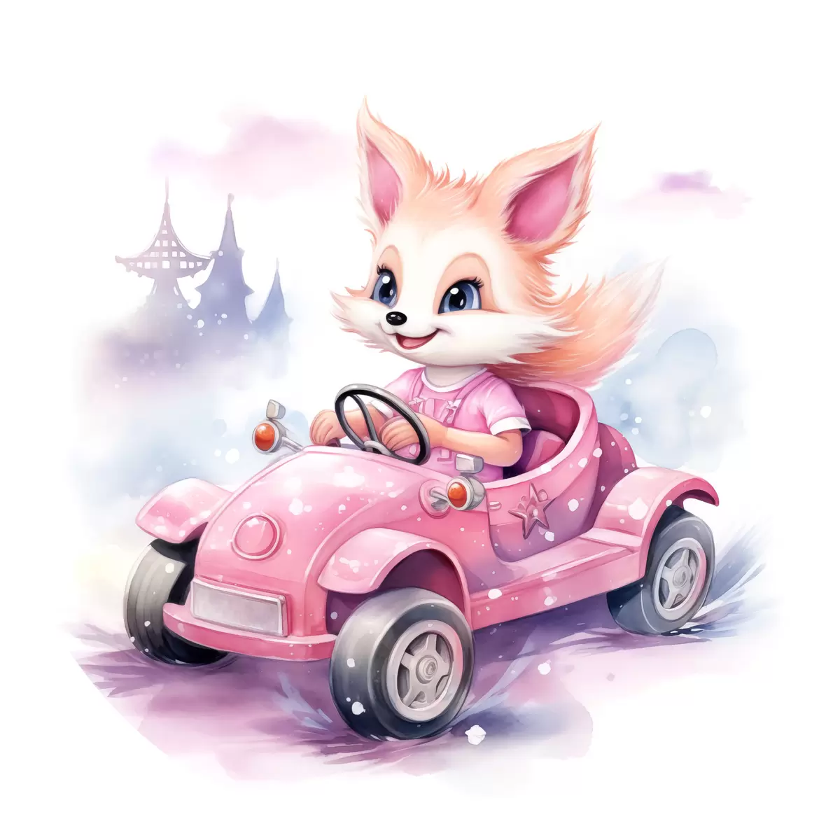 Pilt Väike rebane sõidab roosa autoga laste akvarellillustratsiooniga Nr r38943
