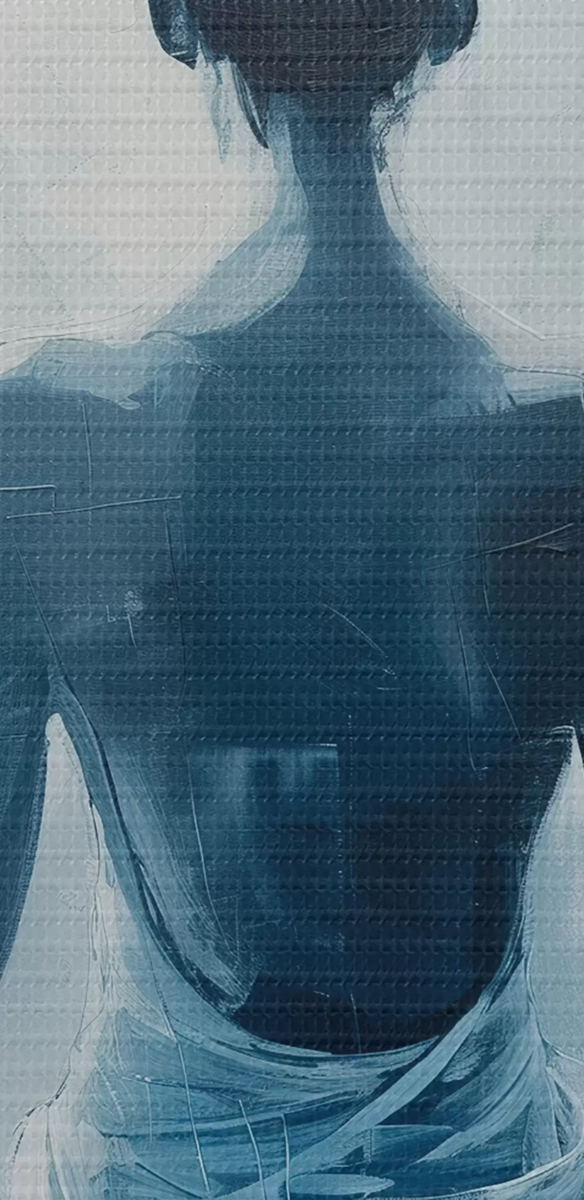 Selle lõuendi peenike niidipunus meenutab professionaalse kunstniku lõuendi pinda.