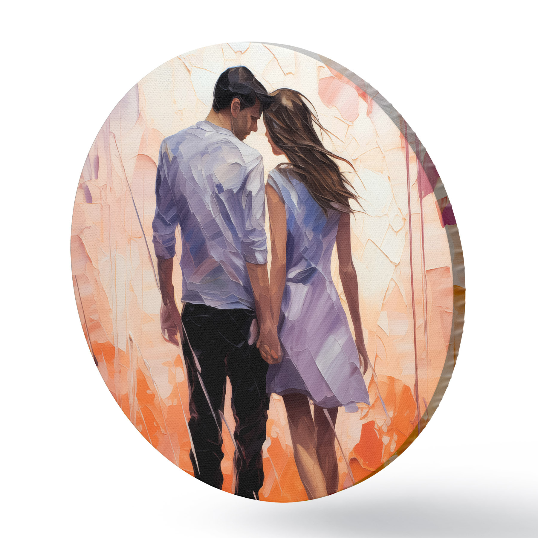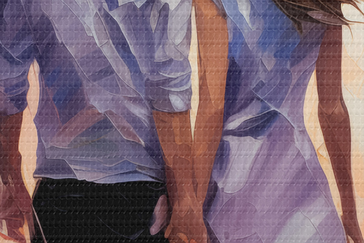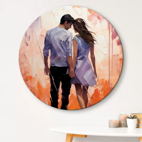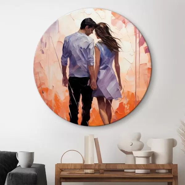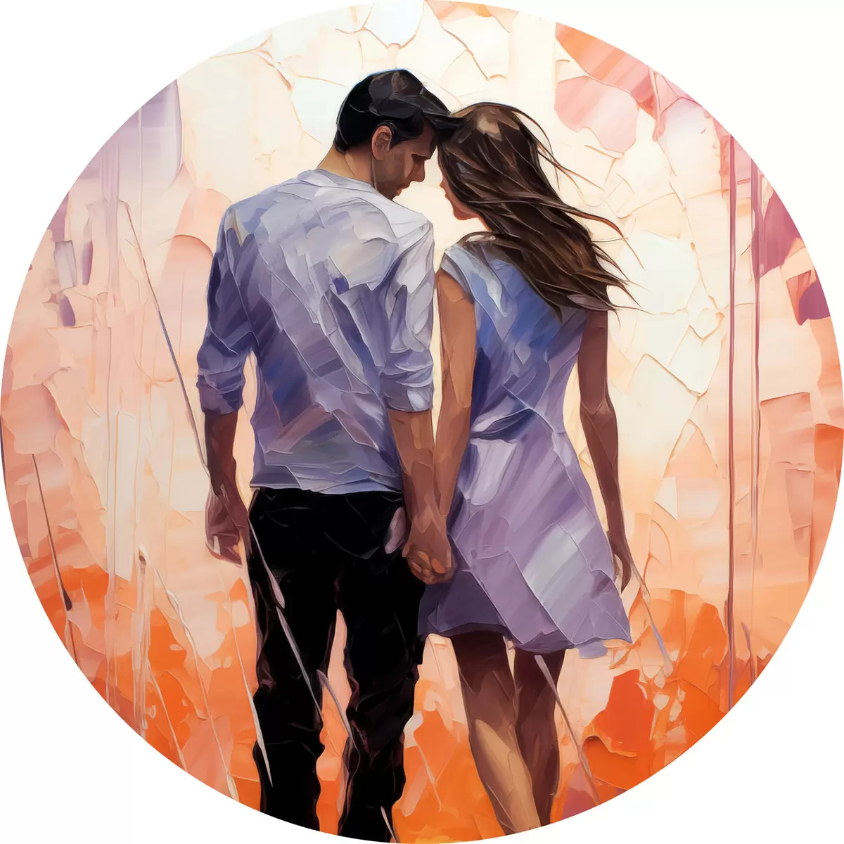 Pilt Abstraktne maal armunud paari siluett, tüdruk ja mees, roosa, oranž, lilla, must Nr r39124