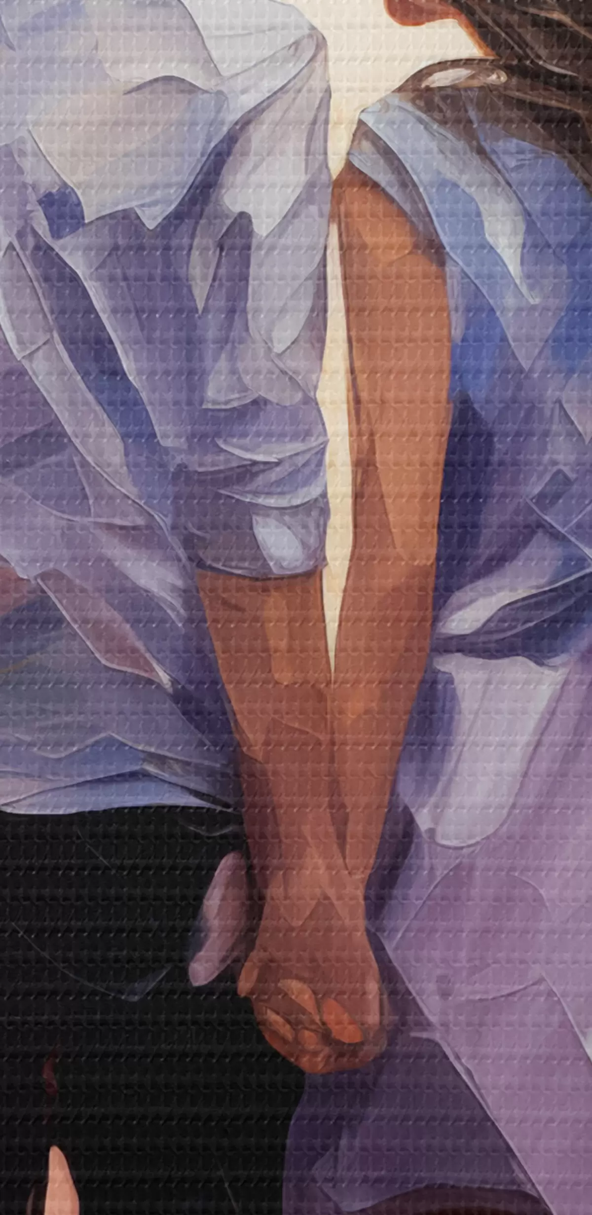 Selle lõuendi peenike niidipunus meenutab professionaalse kunstniku lõuendi pinda.