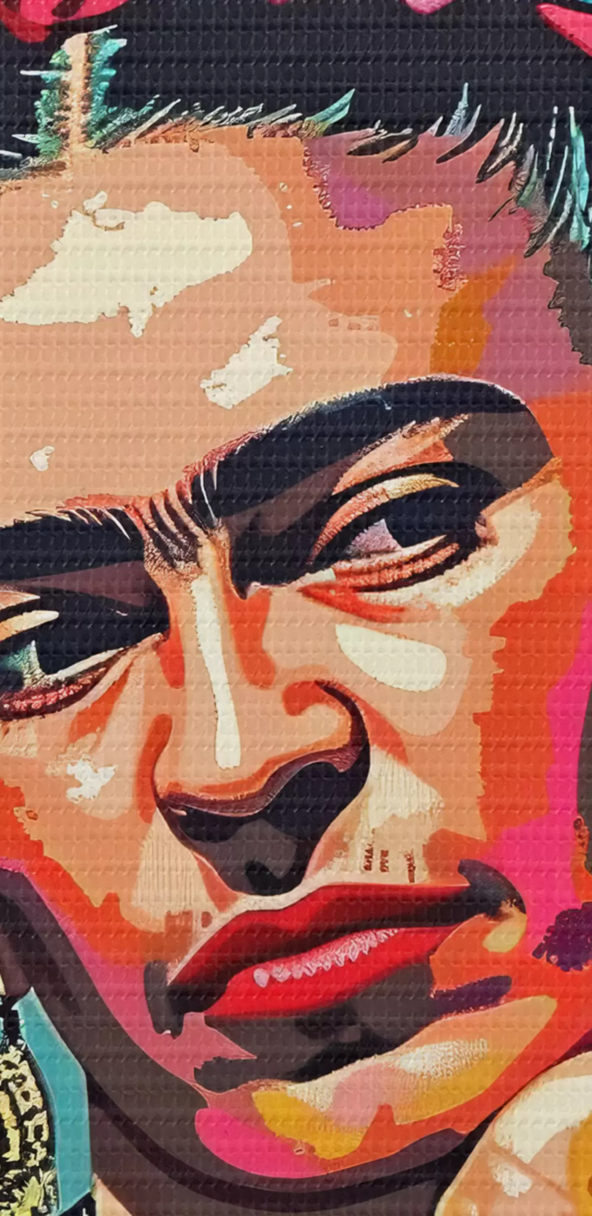 Selle lõuendi peenike niidipunus meenutab professionaalse kunstniku lõuendi pinda.