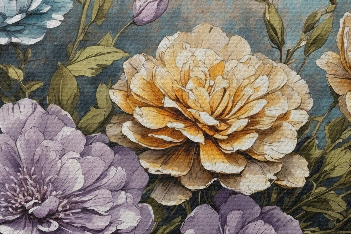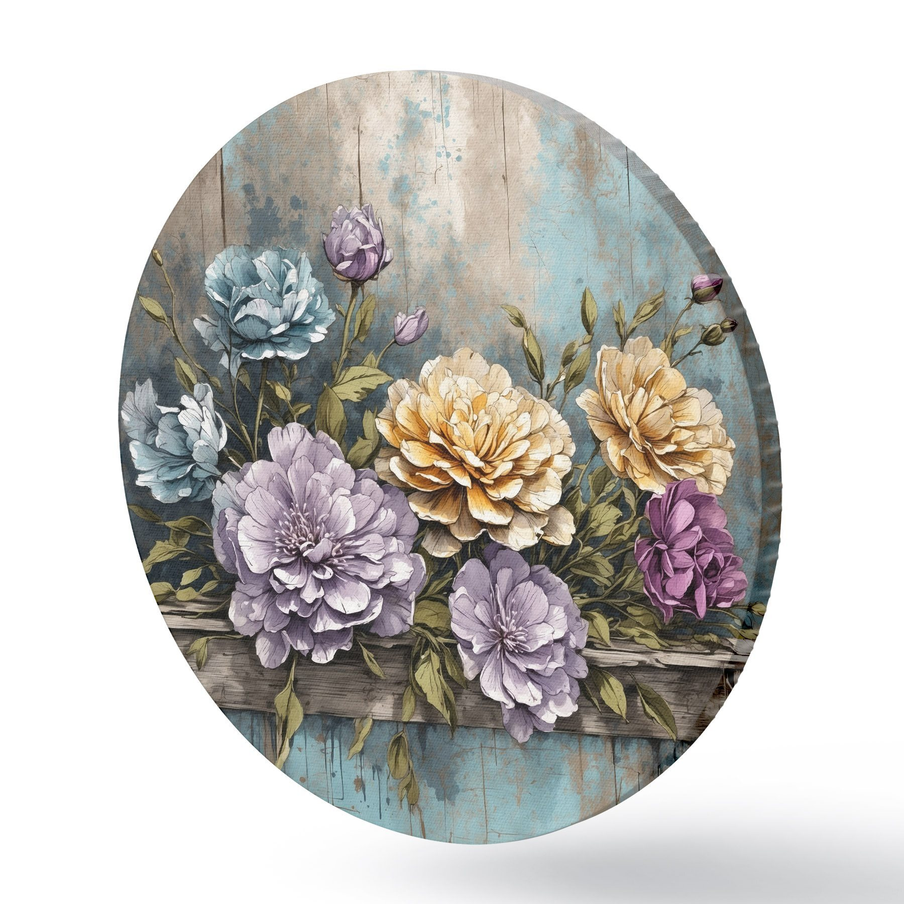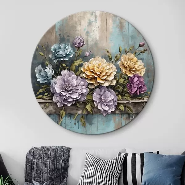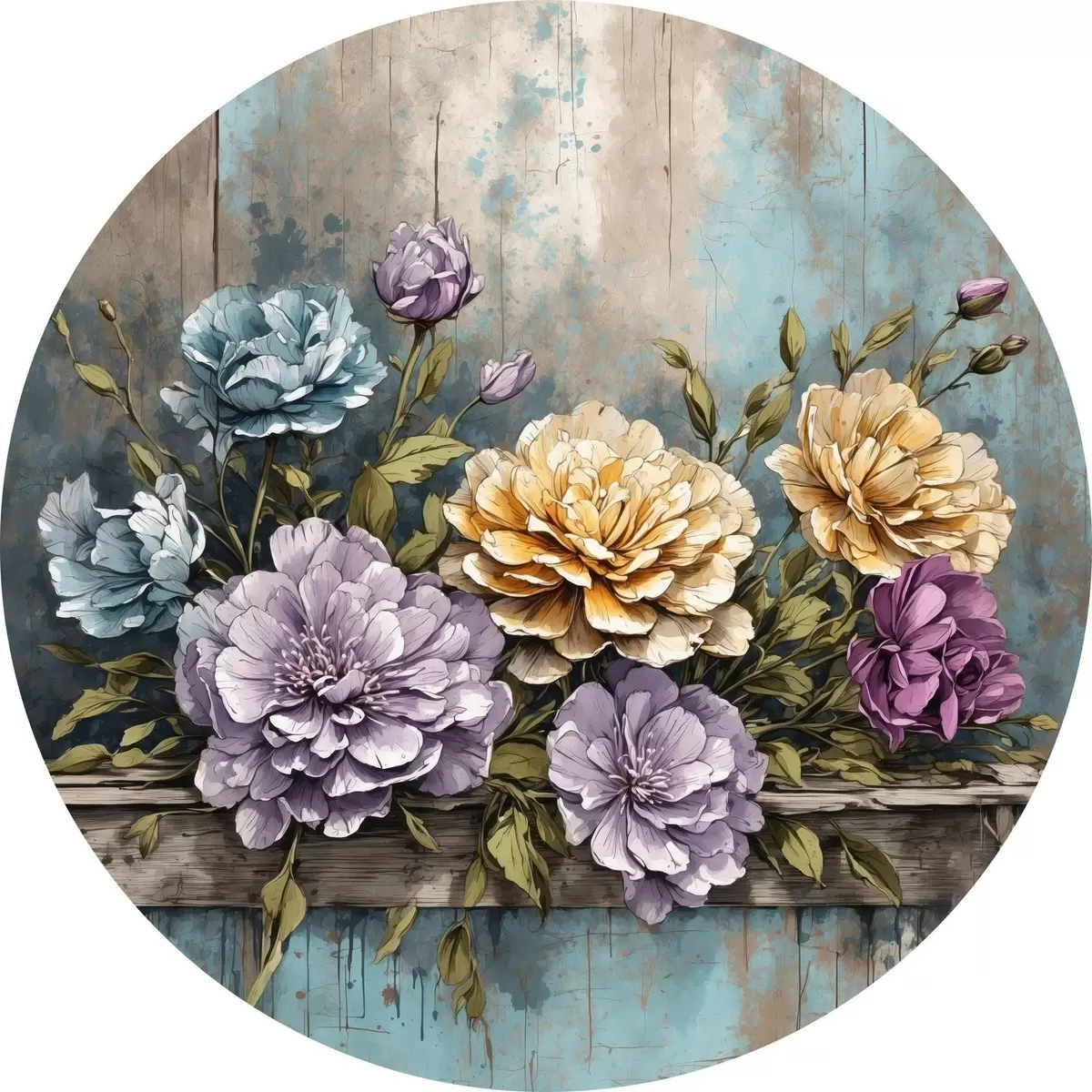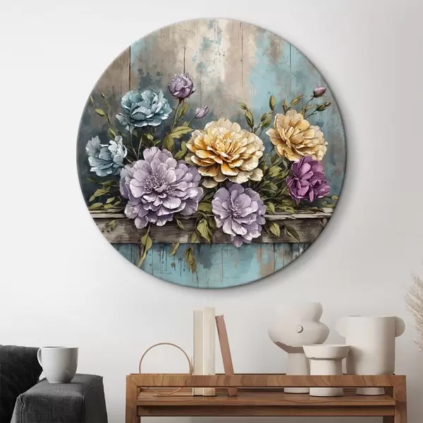 Pilt Lilled ja lehed vanal puidust riiulil Nr r39169