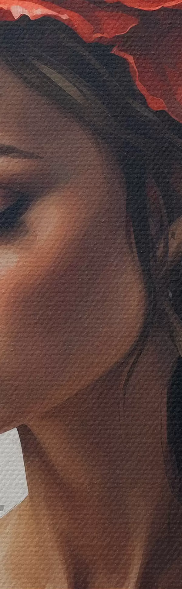 Selle lõuendi peenike niidipunus meenutab professionaalse kunstniku lõuendi pinda.