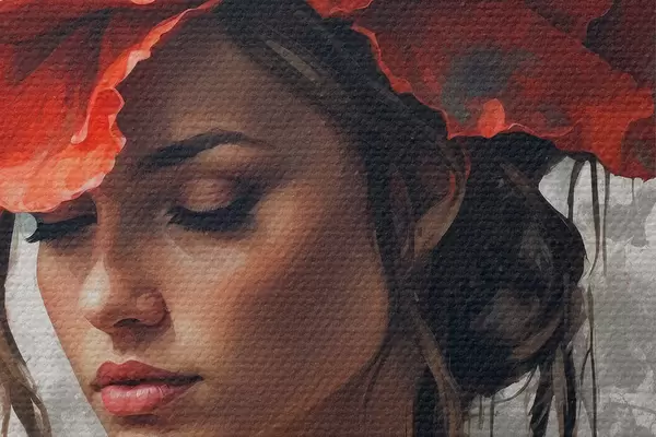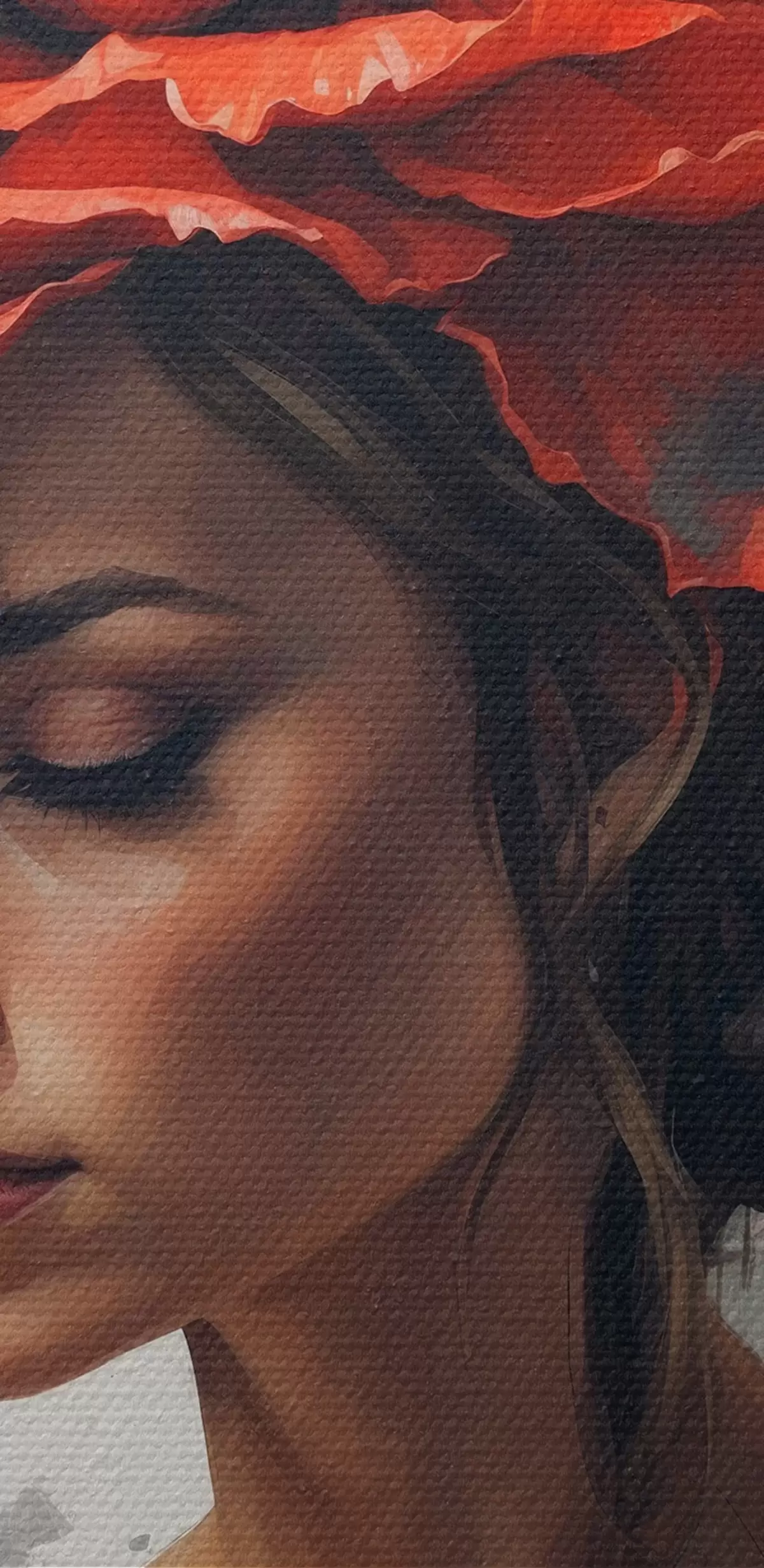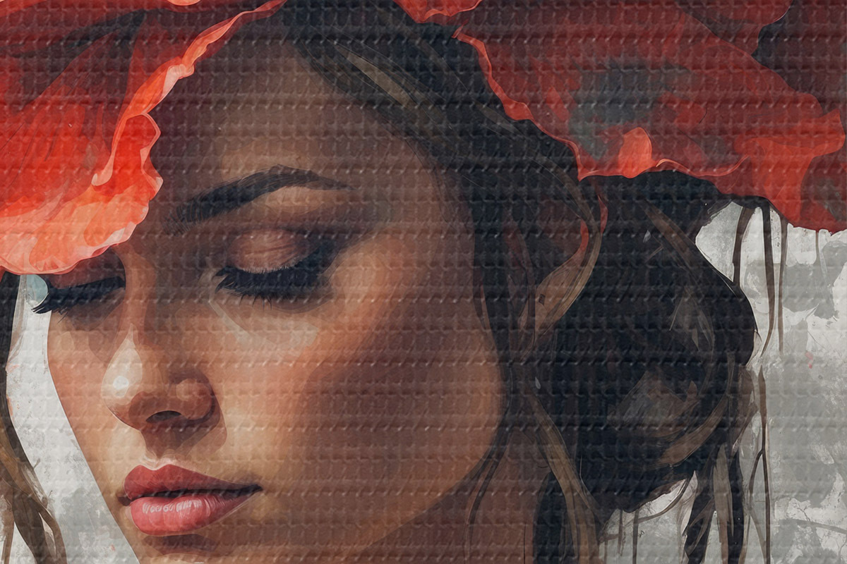 Selle lõuendi peenike niidipunus meenutab professionaalse kunstniku lõuendi pinda.