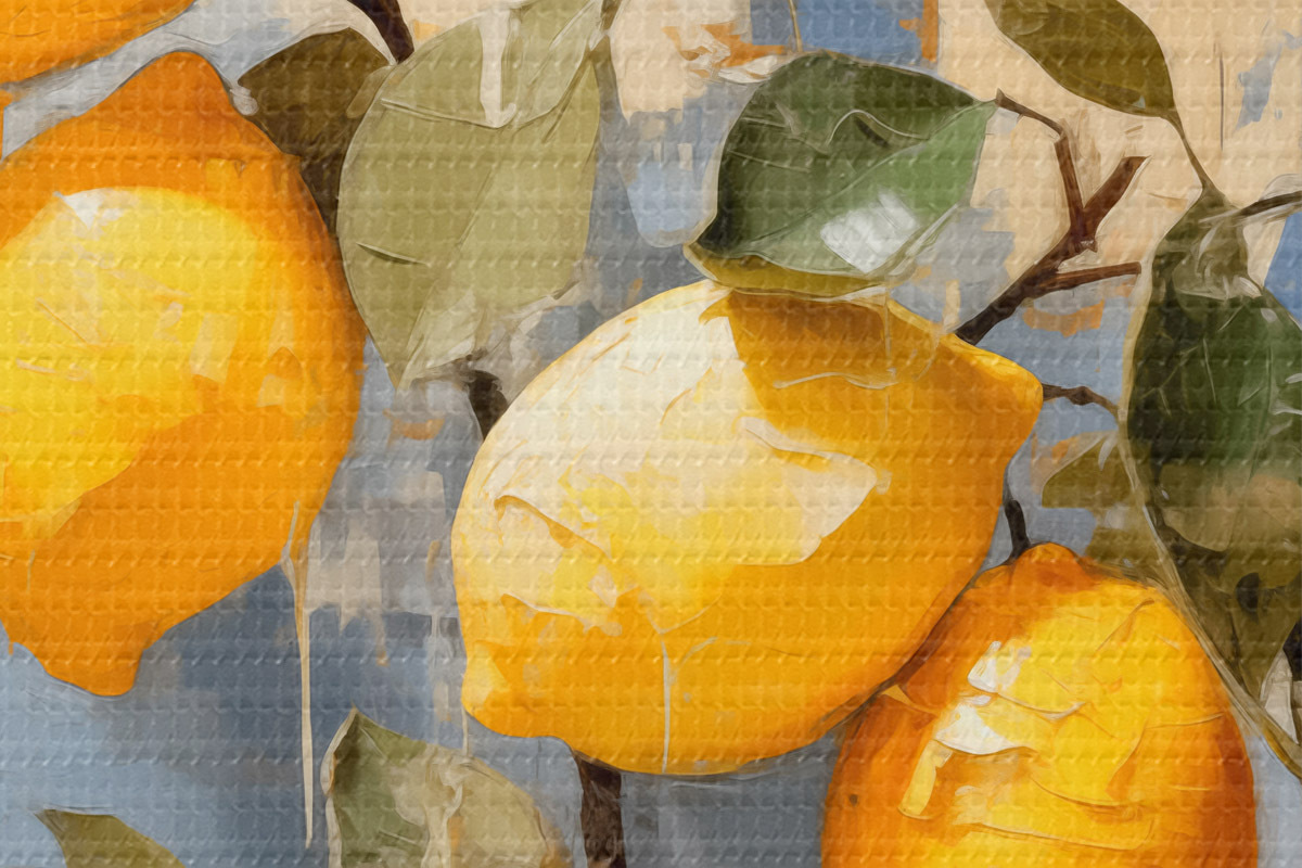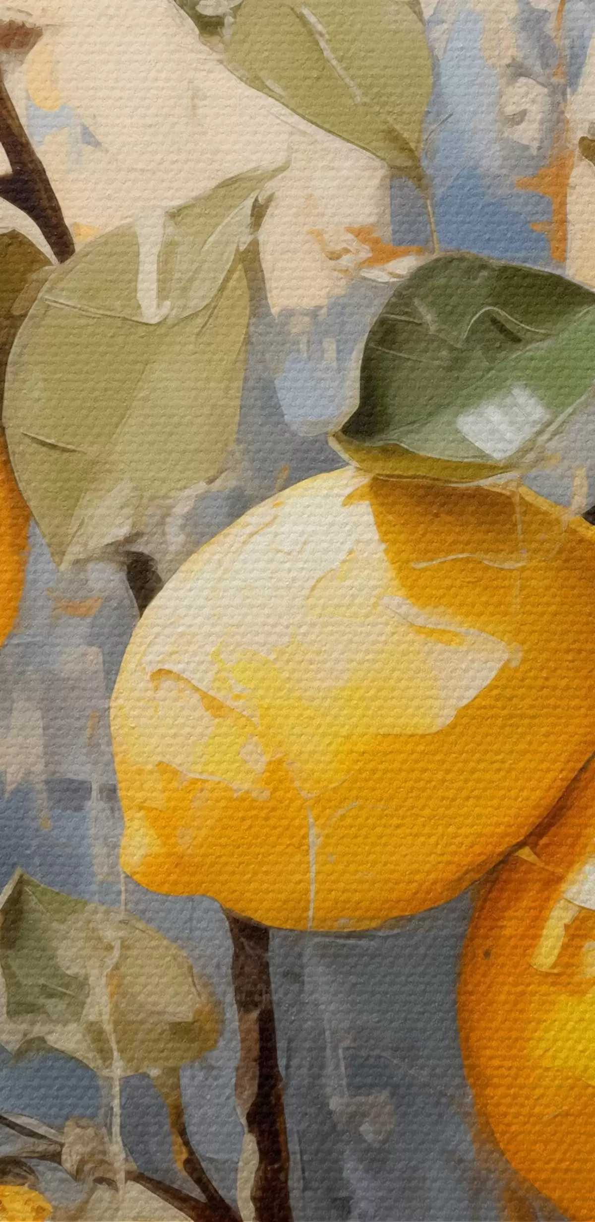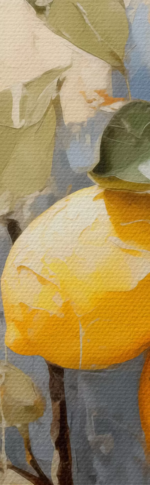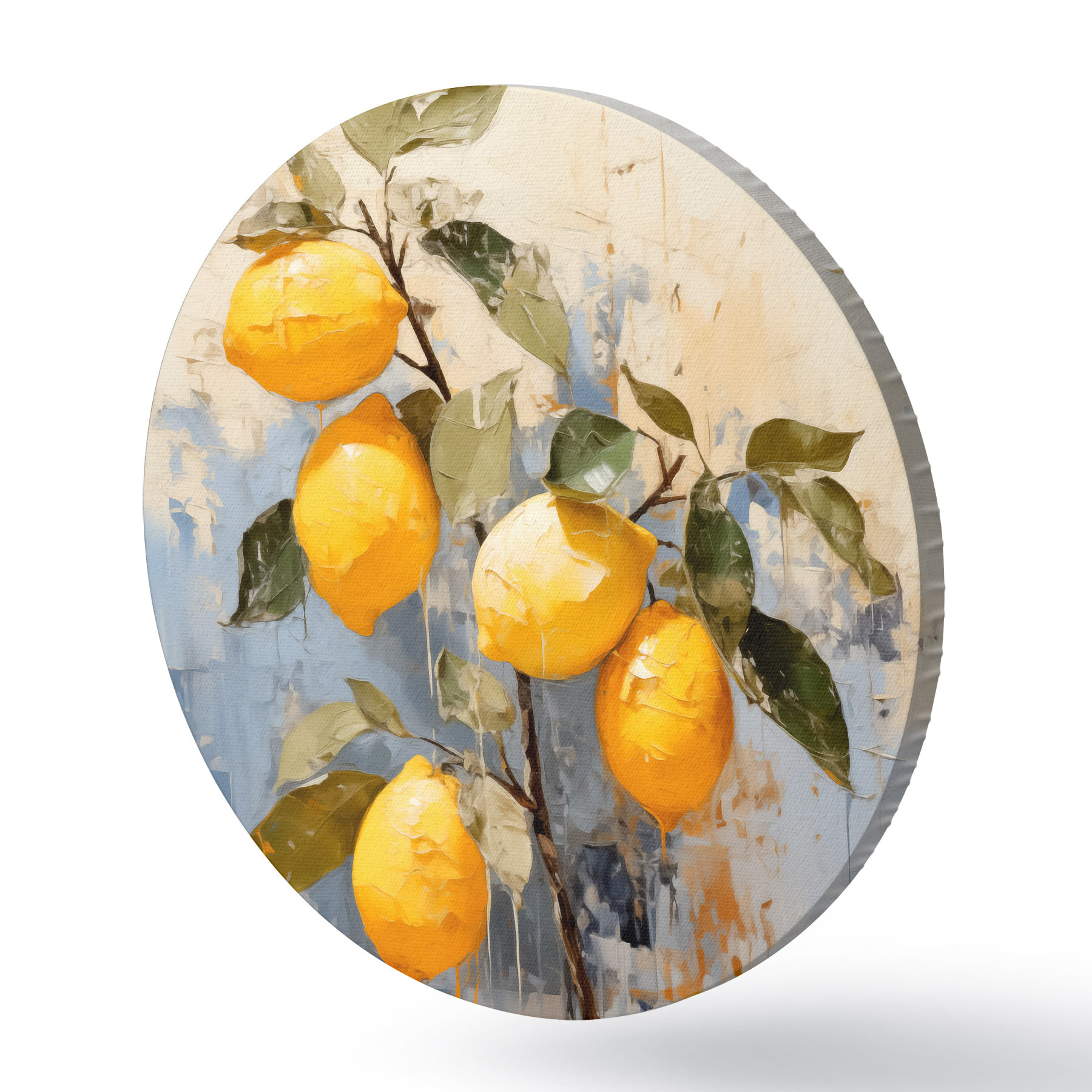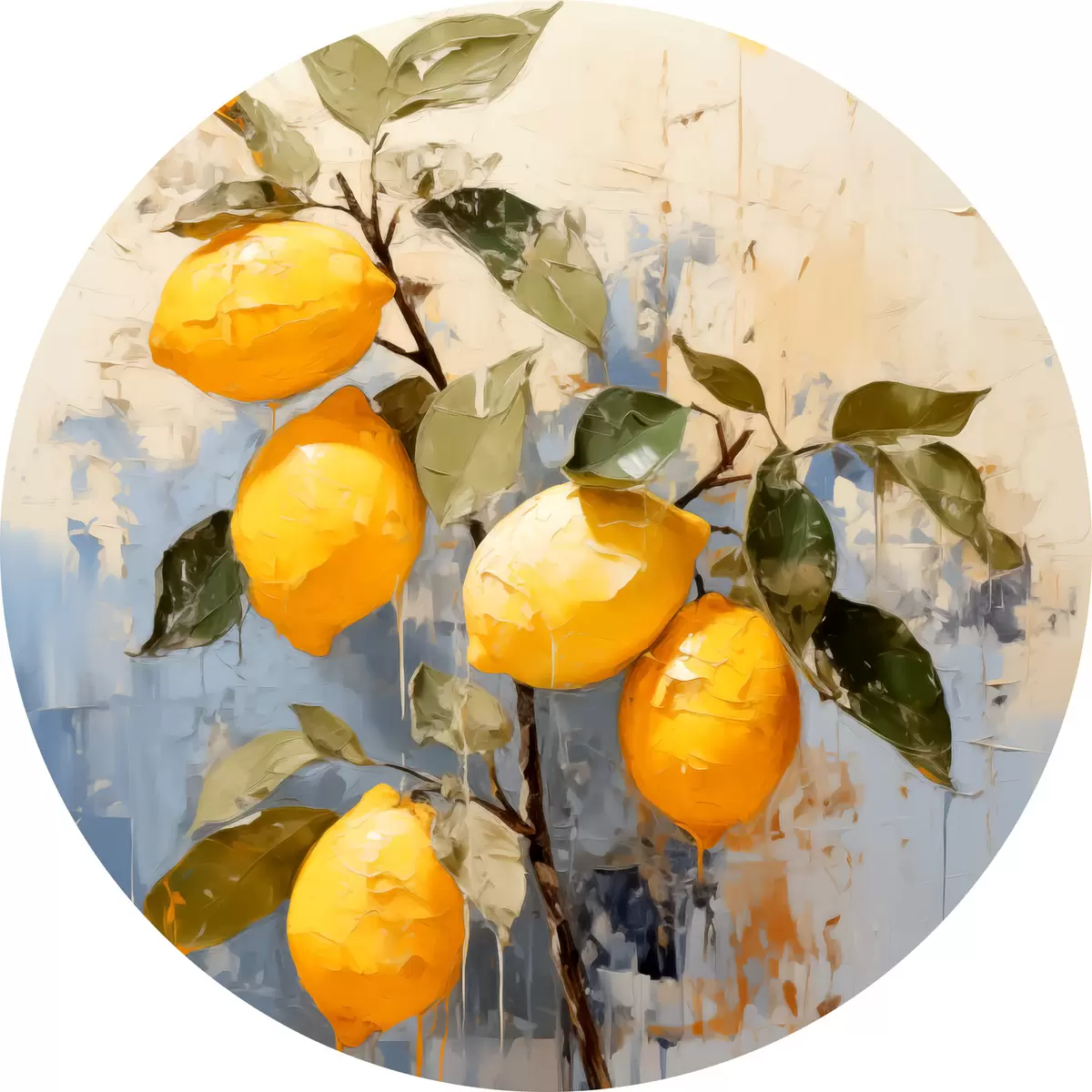 Pilt Oks küpsete sidrunitega õlimaal abstraktne kunst, kollane, sinine ja roheline värv Nr r39186
