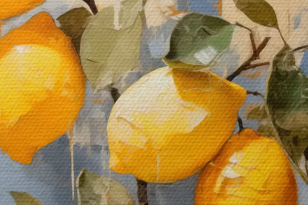 Pilt Oks küpsete sidrunitega õlimaal abstraktne kunst, kollane, sinine ja roheline värv Nr r39186
