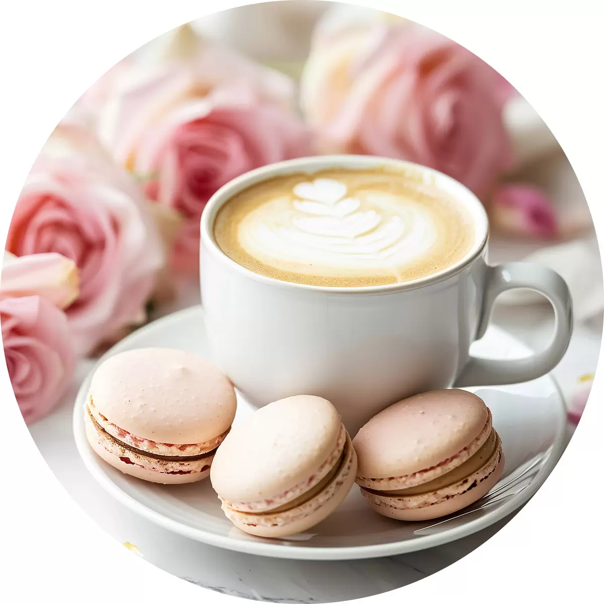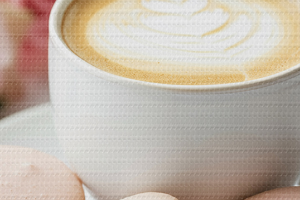 Pilt Tass kohvi õrnal lillelisel taustal Nr r39232
