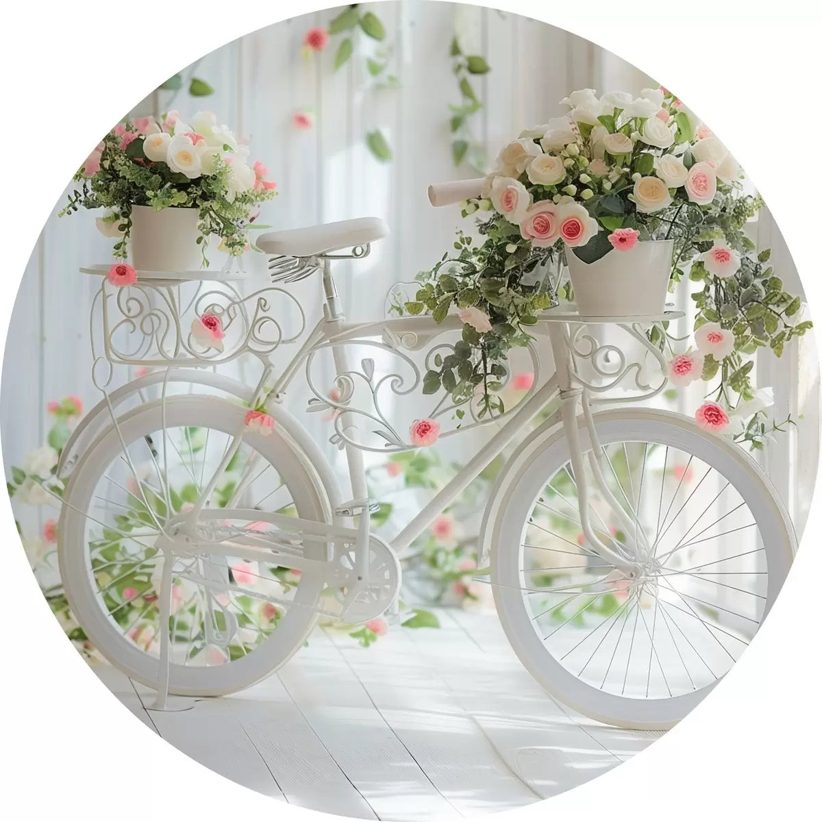 Pilt Valge jalgratas Provence stiilis lillekorviga Nr r39243