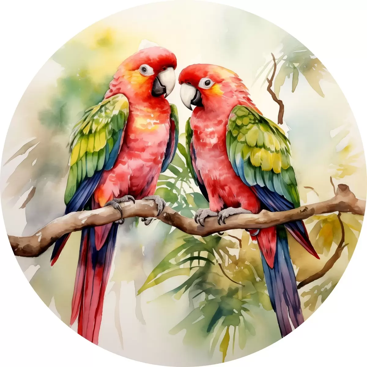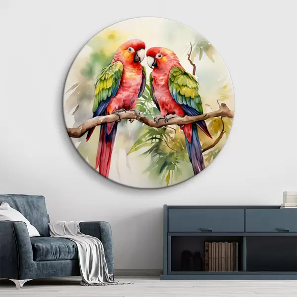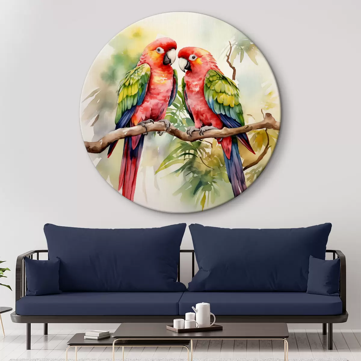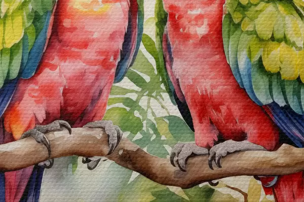 Pilt Kaks säravat arapapagoi ühel oksal istuvad akvarell Nr r39333