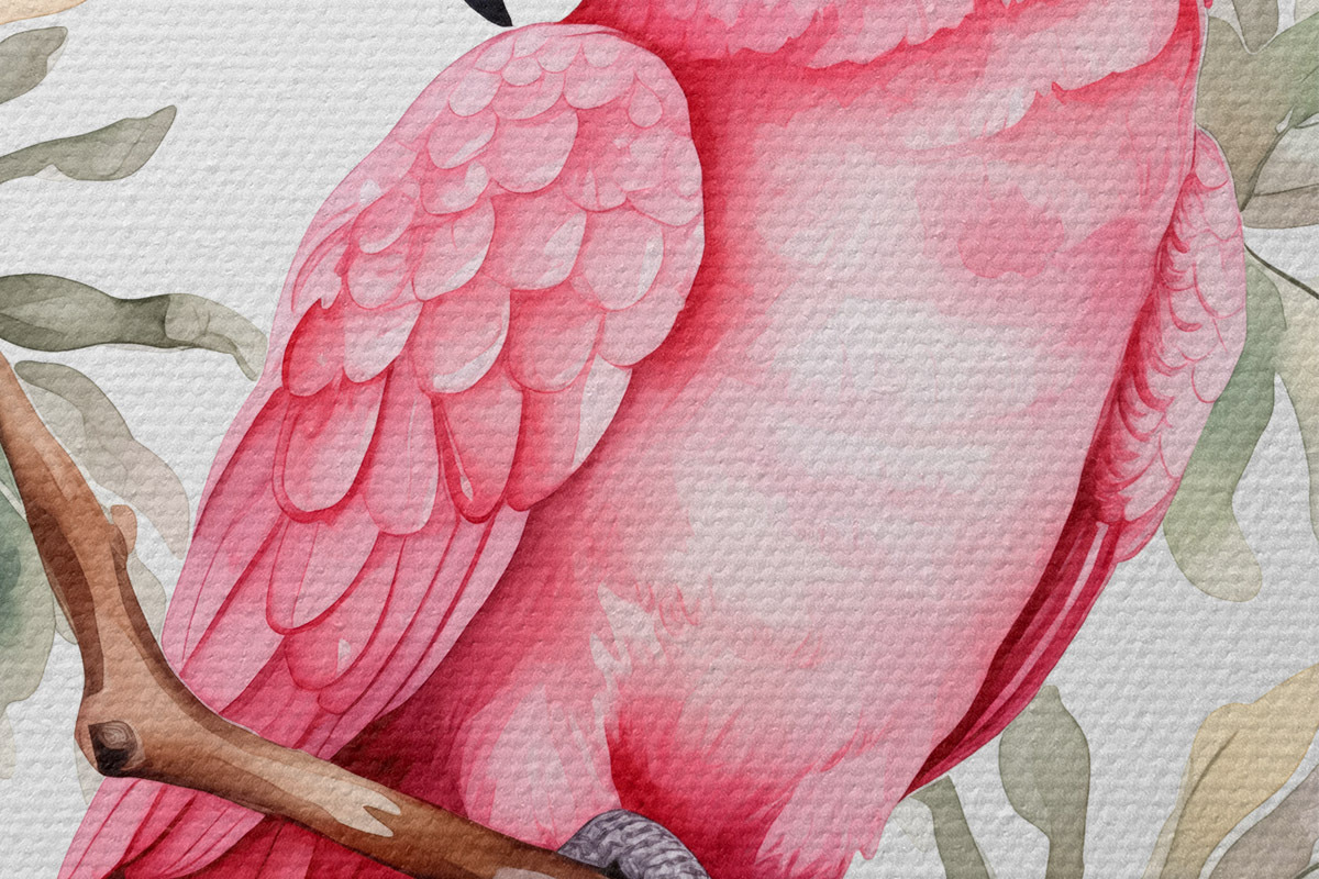 Pilt Roosa kakaduupapagoi istub oksal akvarell Nr r39334