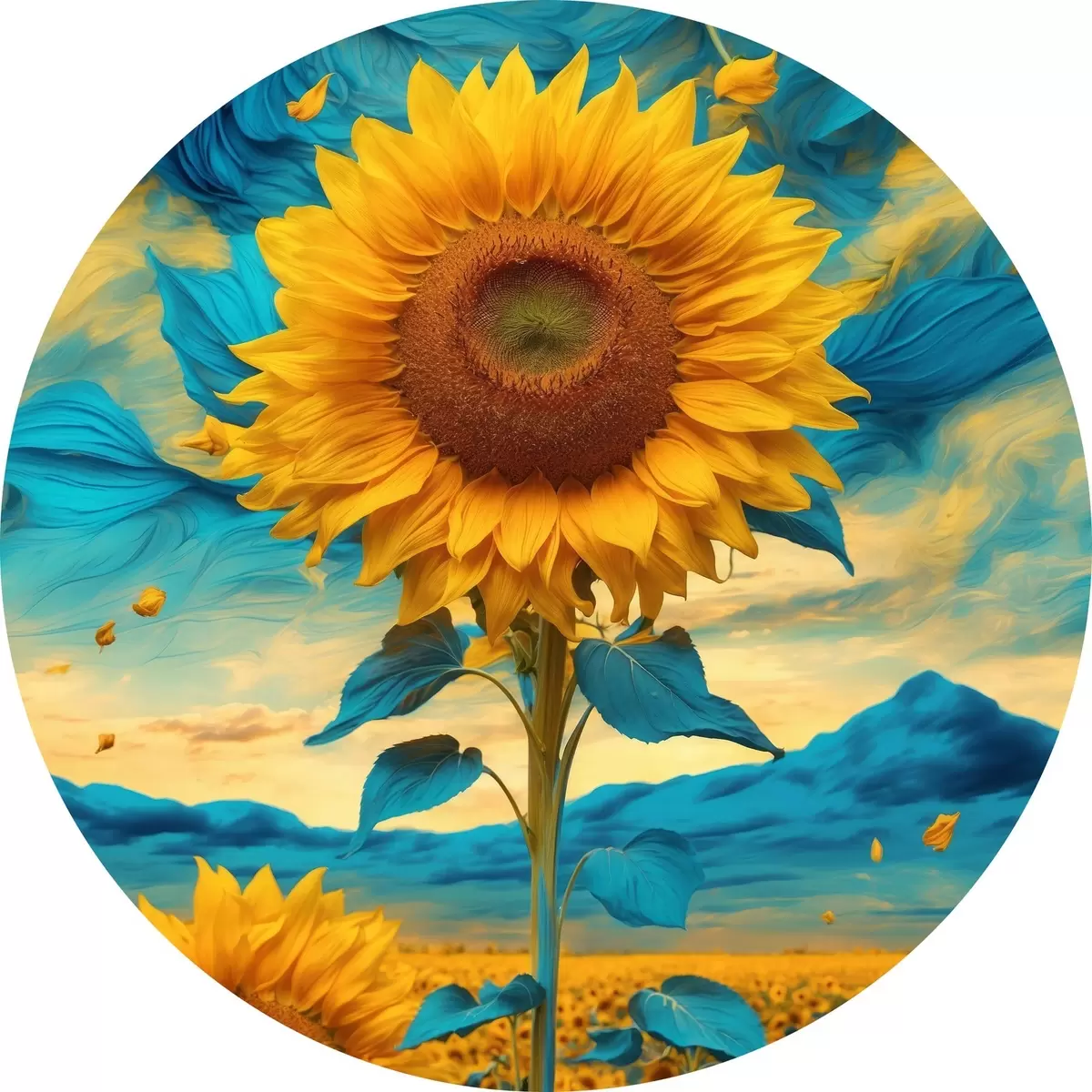 Pilt Päevalillede põld abstraktse taeva kohal Nr r39367