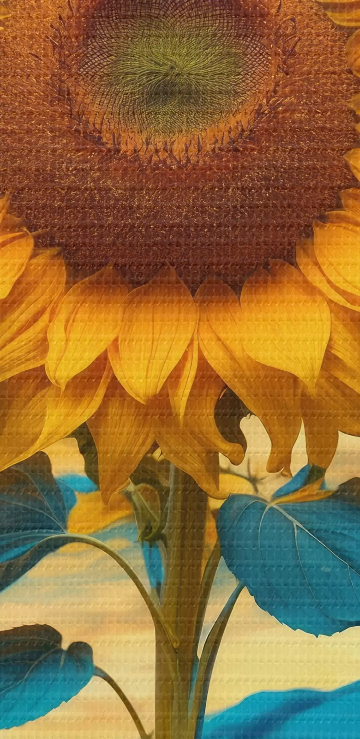 Selle lõuendi peenike niidipunus meenutab professionaalse kunstniku lõuendi pinda.