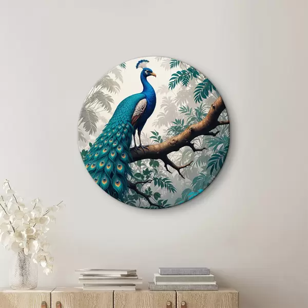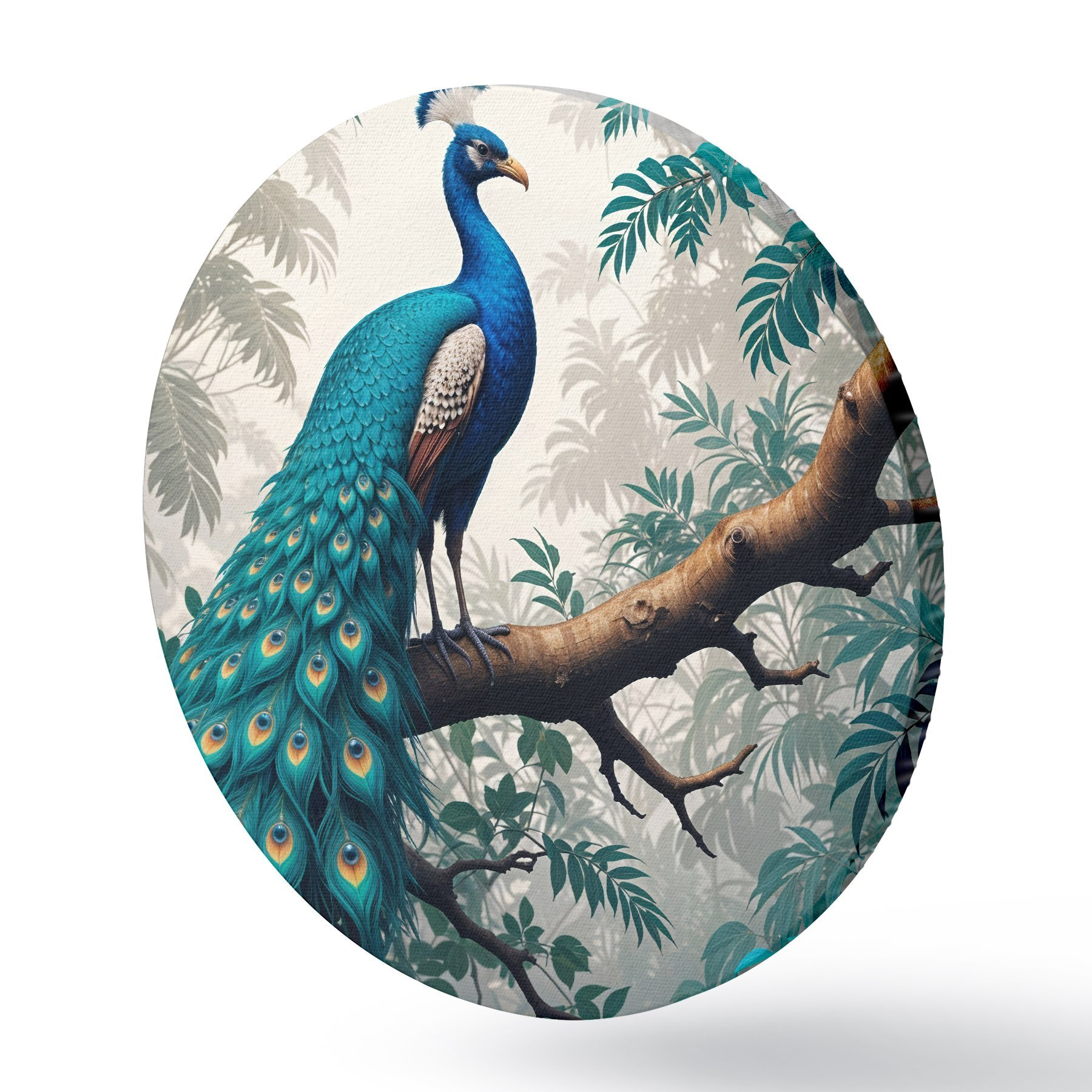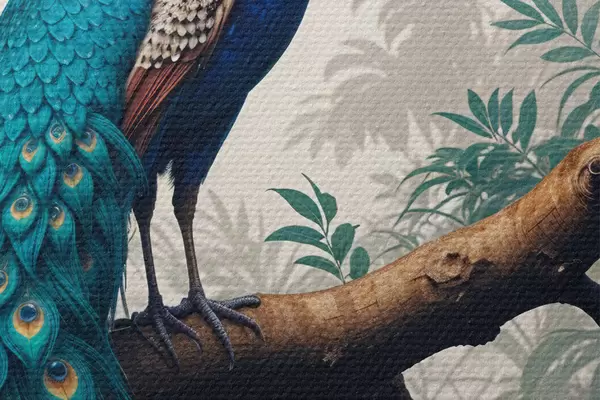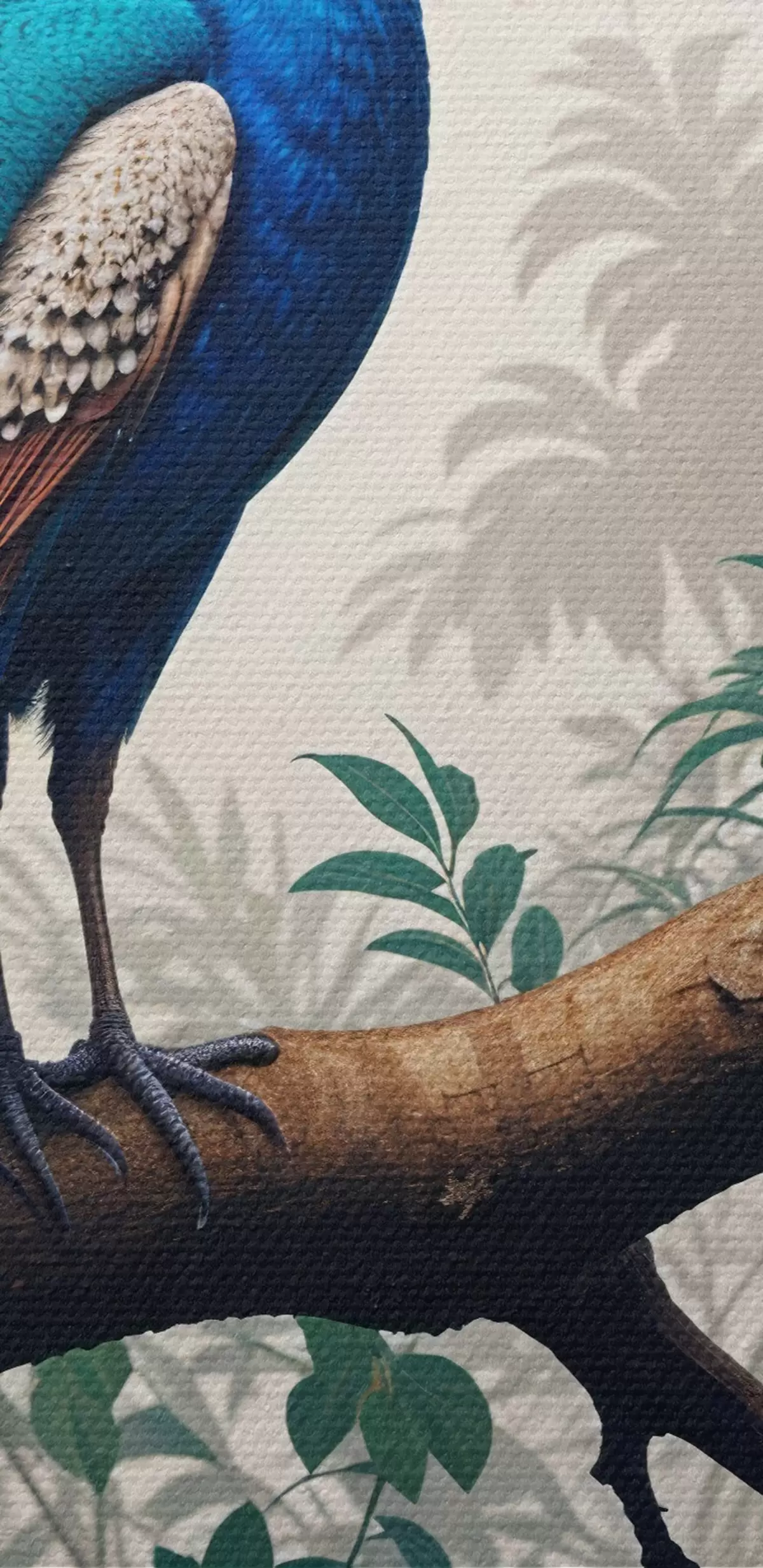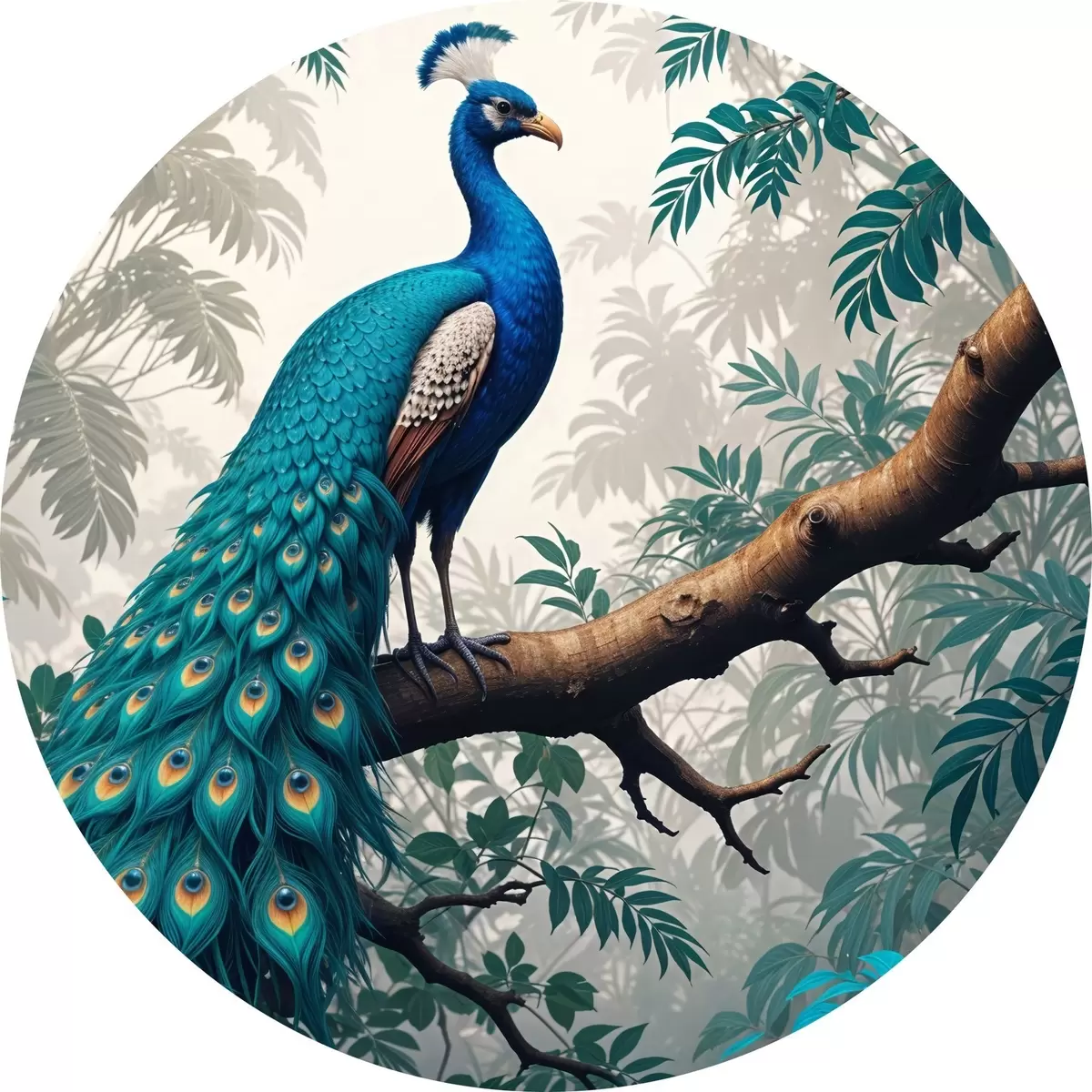 Pilt Särav sinine paabulind istus lopsakas troopilises metsas puuoksal Nr r39401
