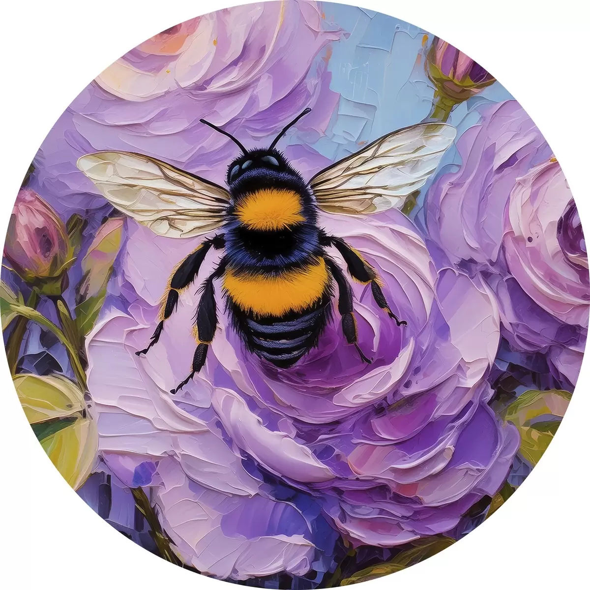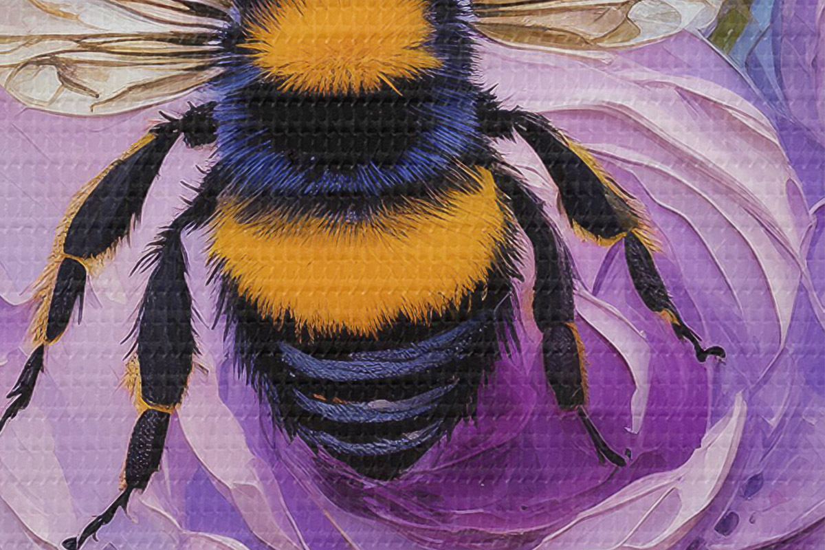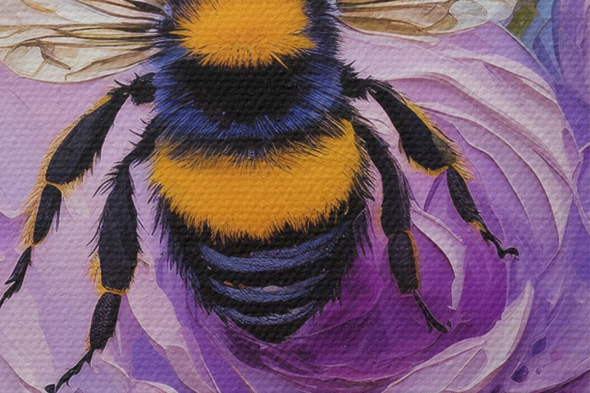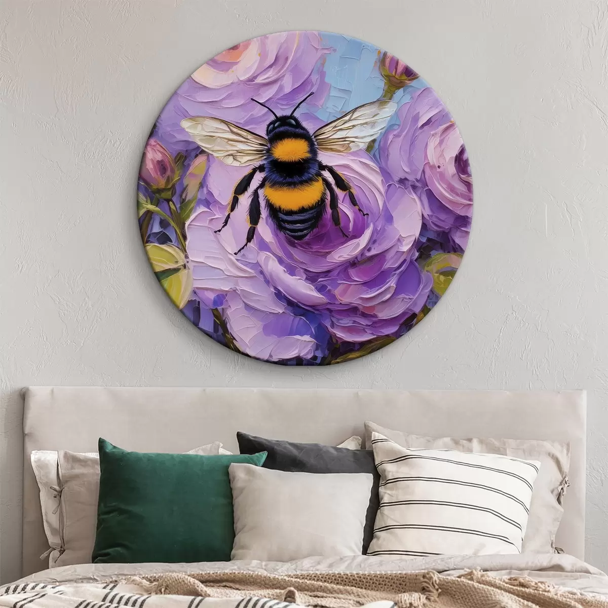 Pilt Mesilane roosadel pojengidel, värvilised suvelilled, õlimaal, erksad pintslitõmbed Nr r39411
