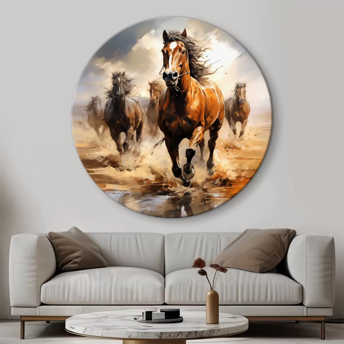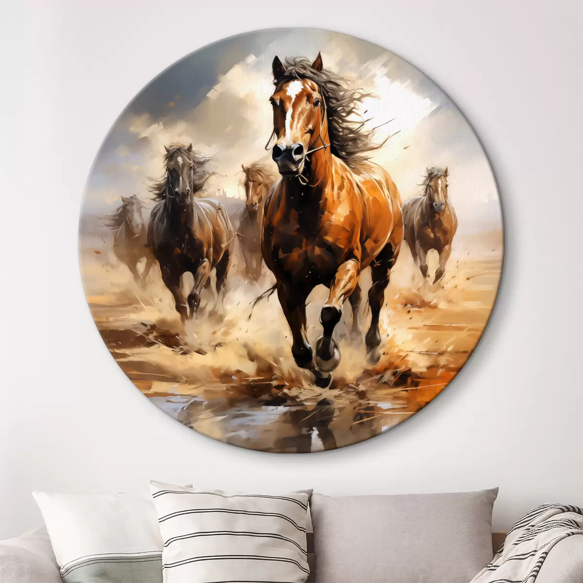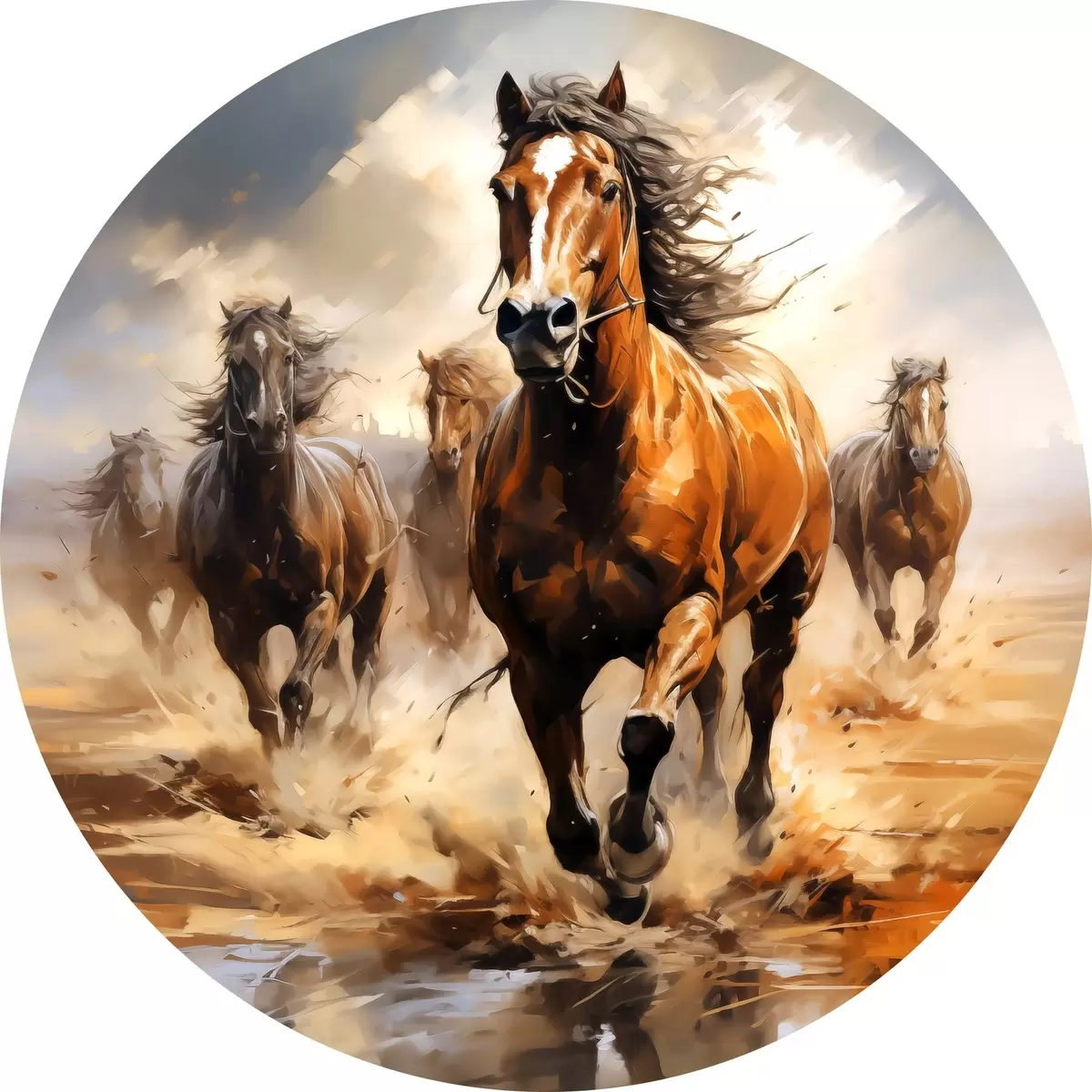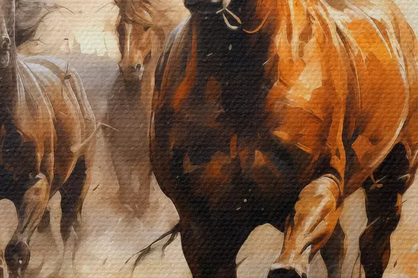 Pilt Hobused kappamas üle heinamaa õlimaali Nr r39436