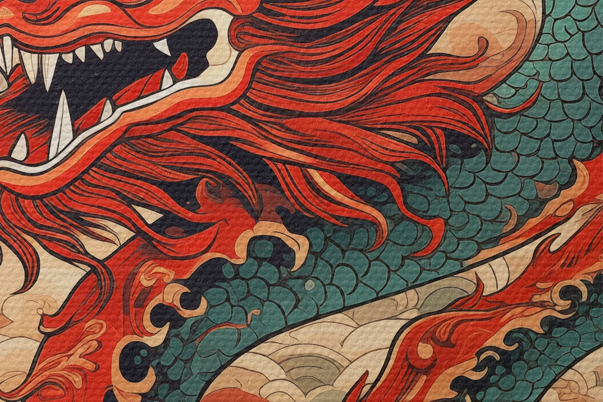 Pilt Hiina stiilis punane draakon, idamaine Nr r39439