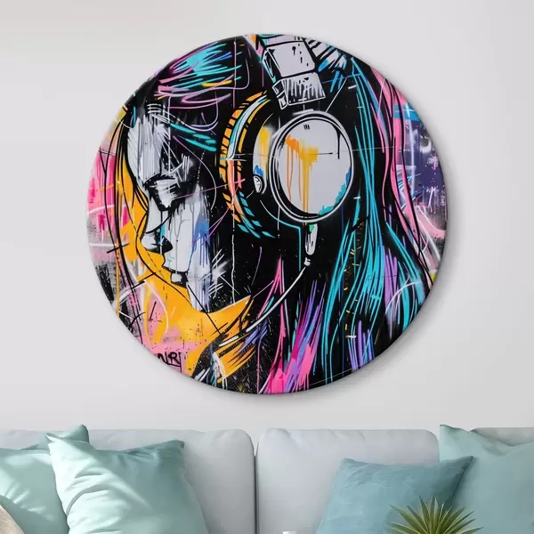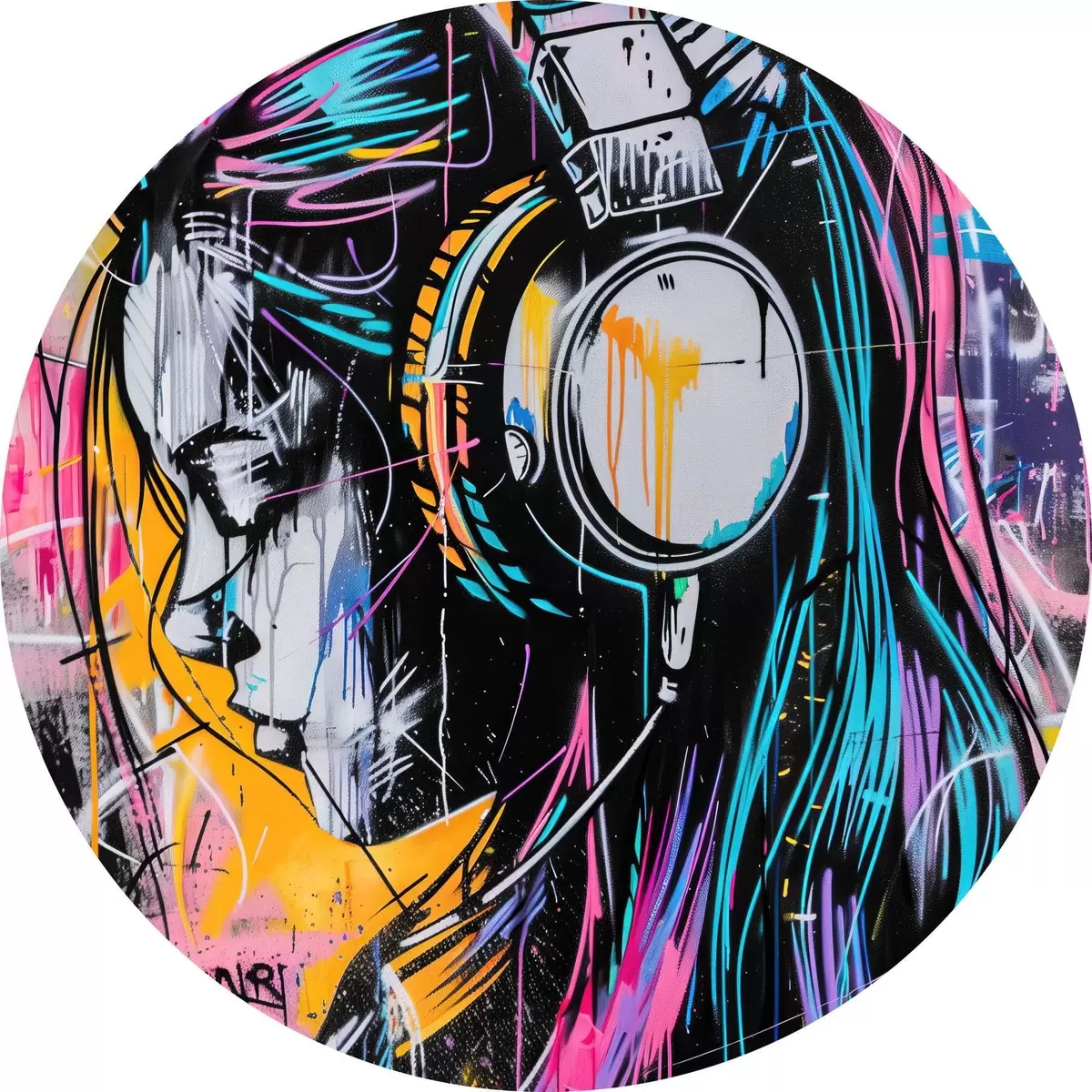Pilt Graffiti stiilis kõrvaklappidega naine Nr r39443