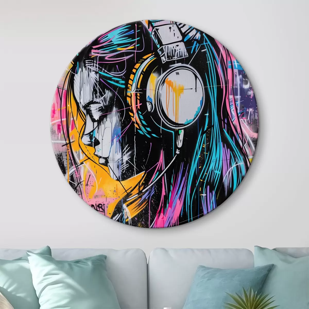 Ümmargused maalid Graffiti stiilis kõrvaklappidega naine r39443
