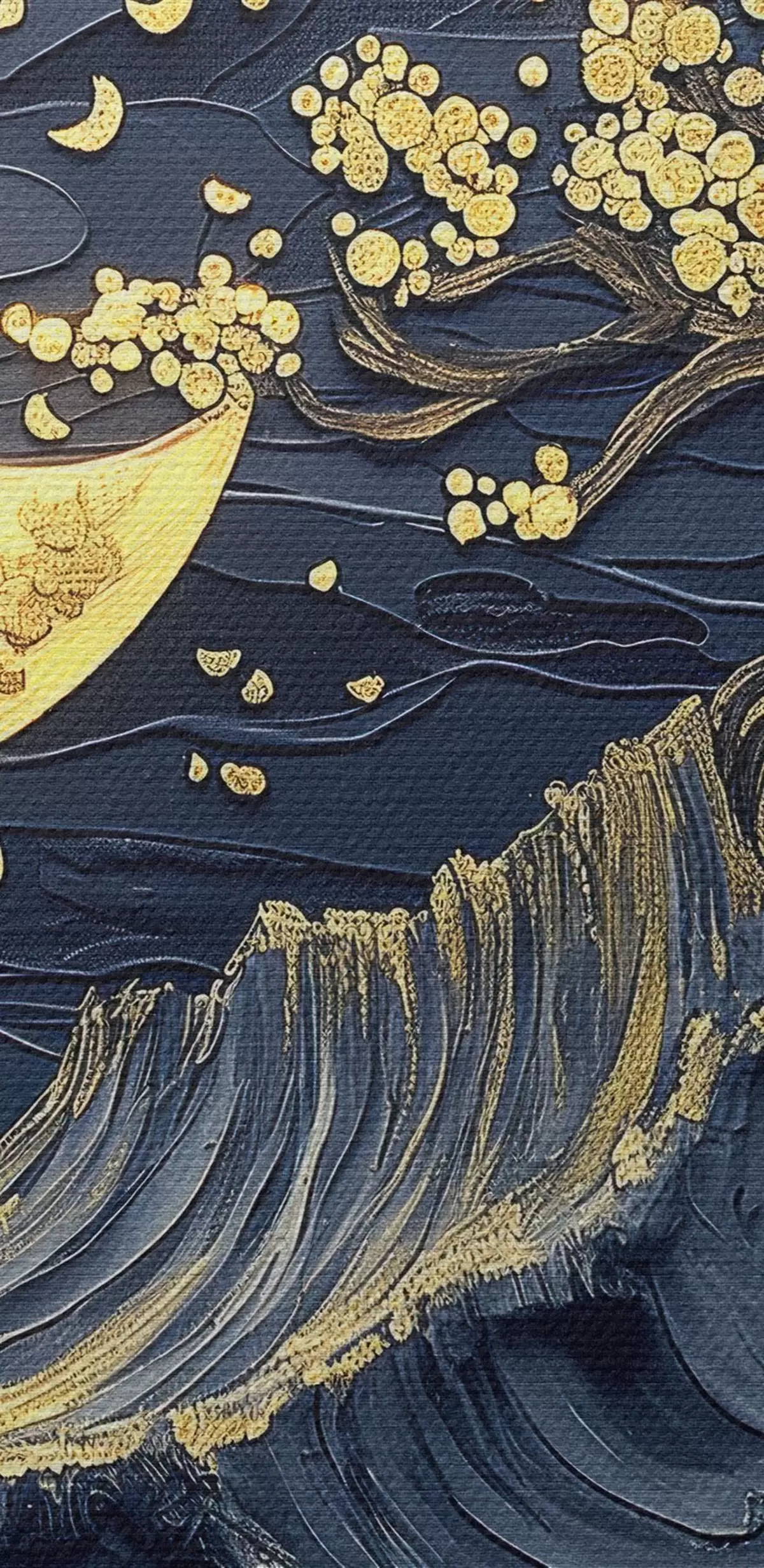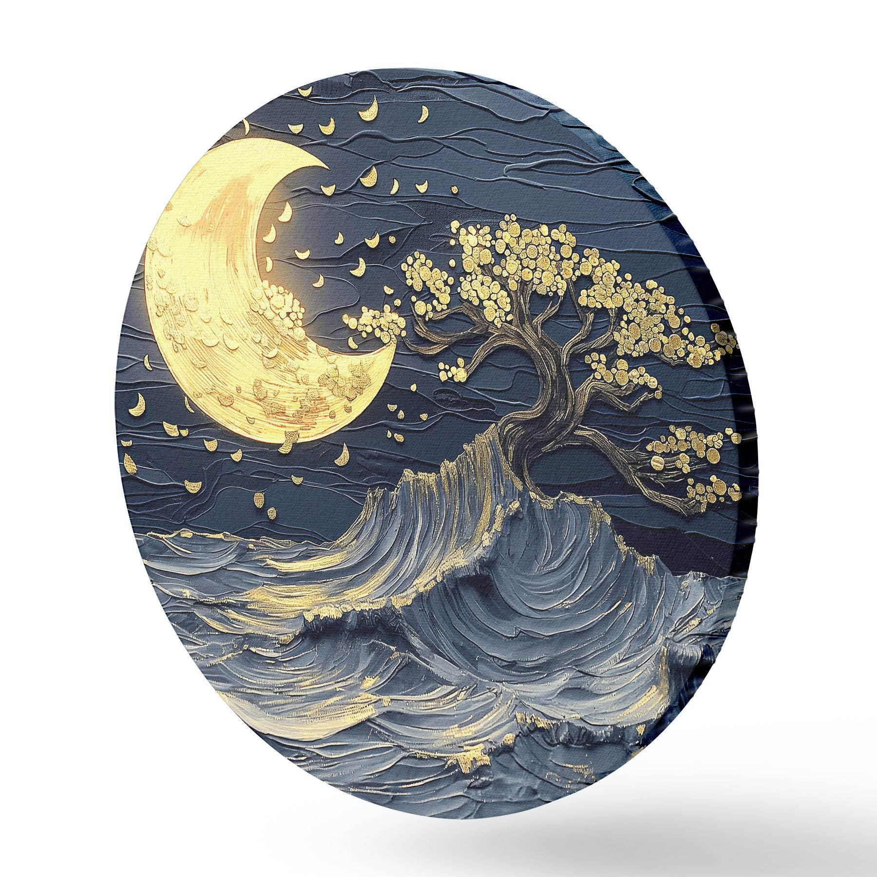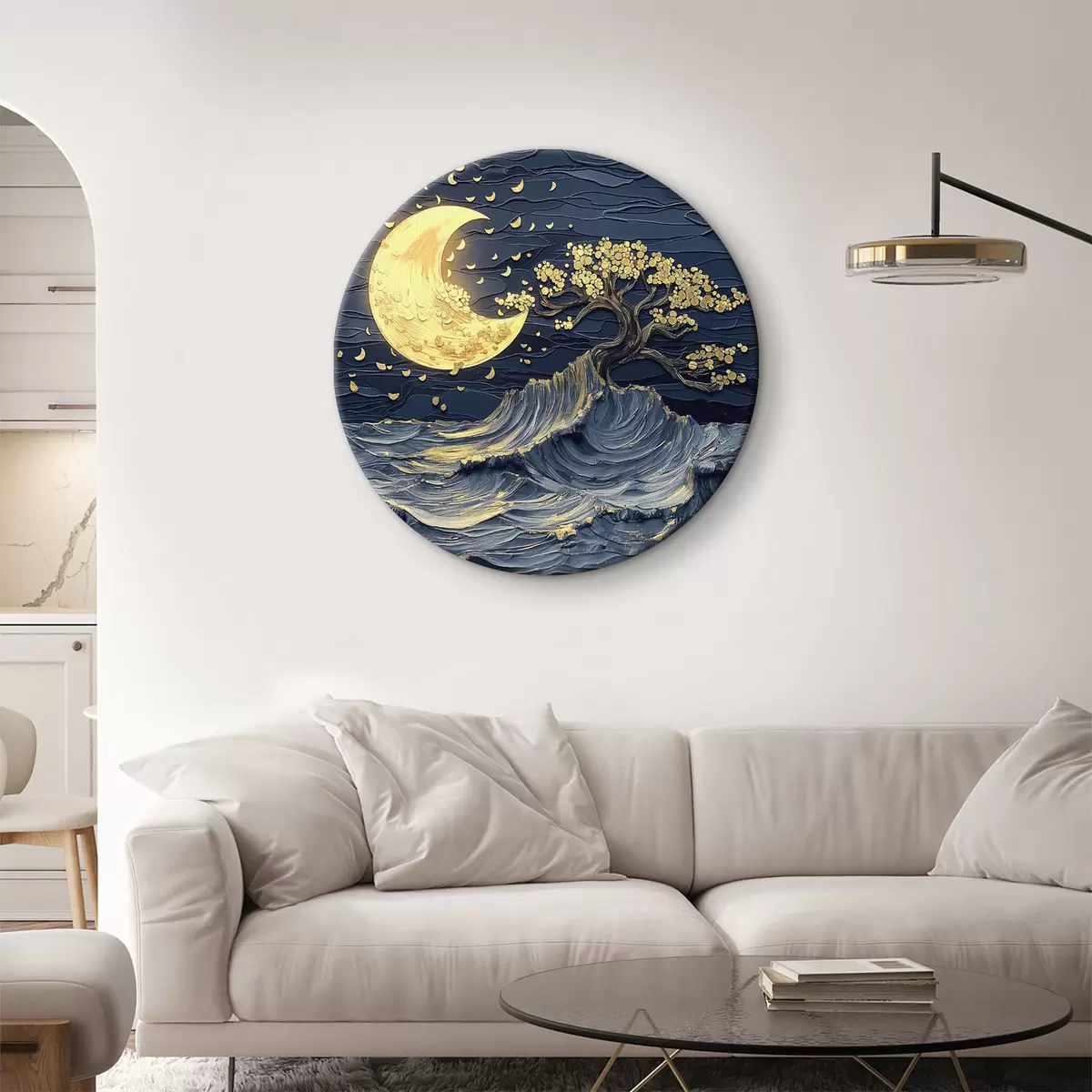 Pilt Akrüülmaal: romantiline meremaastik langenud lehtede ja kuuvalguse peegeldustega Nr r39449