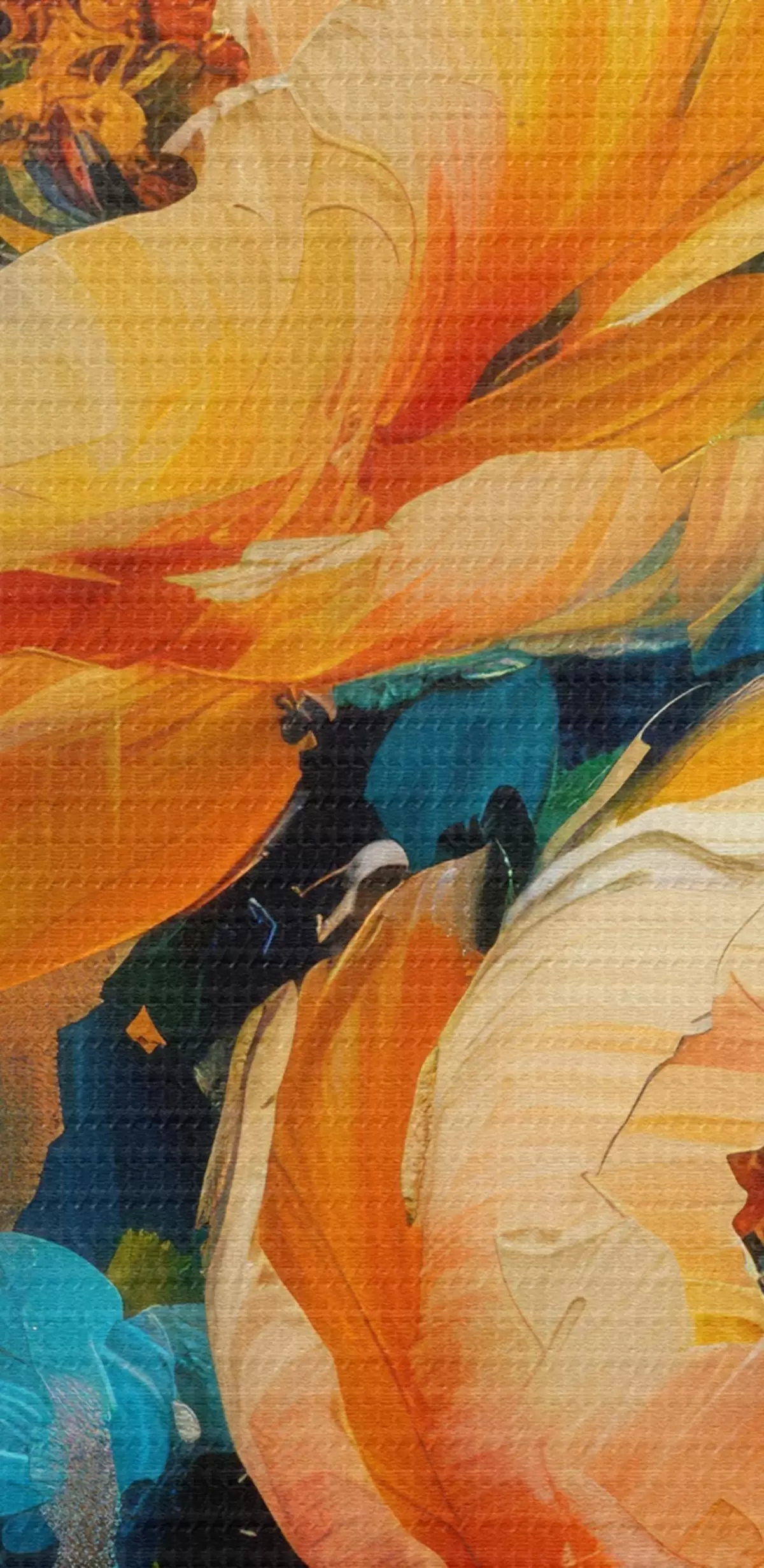 Selle lõuendi peenike niidipunus meenutab professionaalse kunstniku lõuendi pinda.
