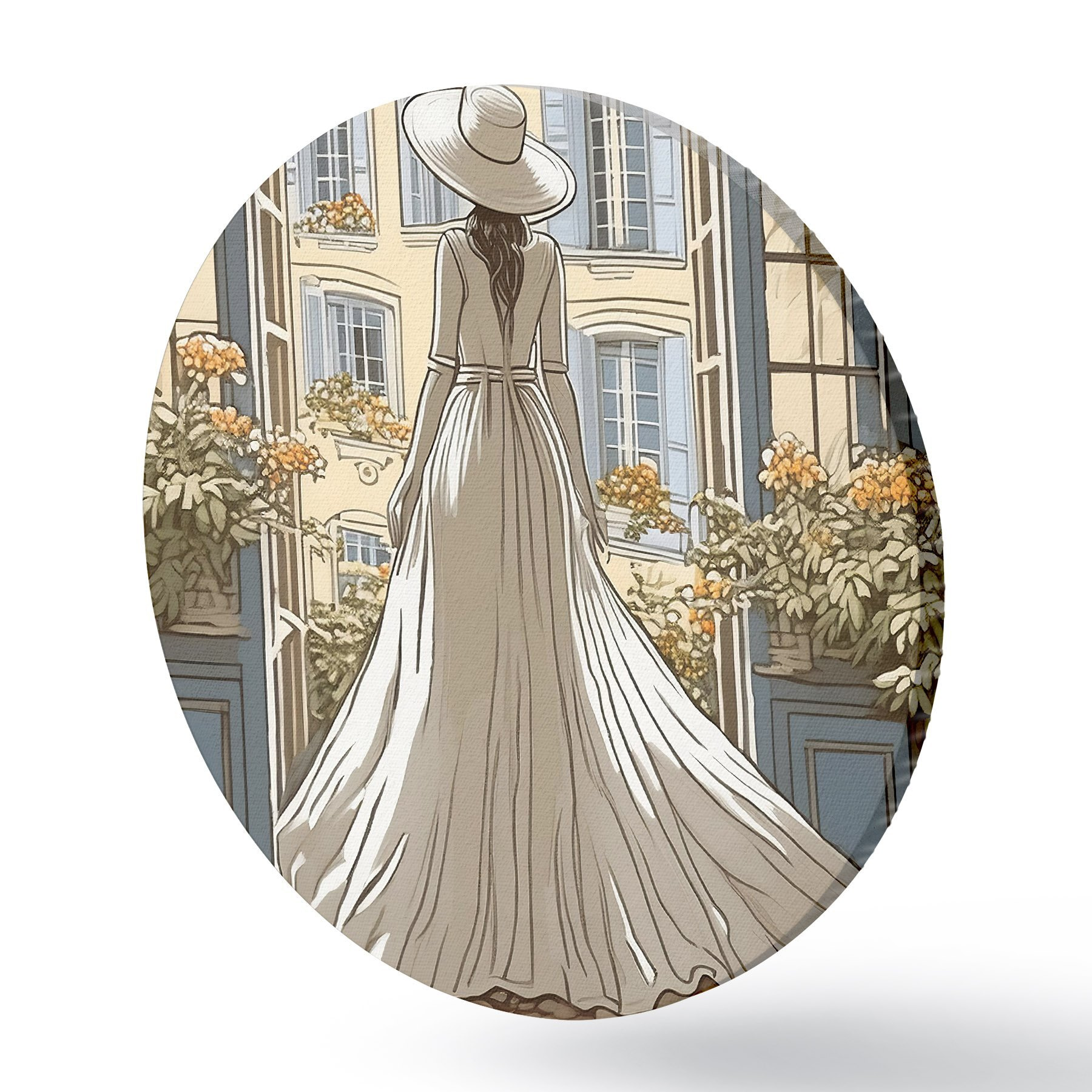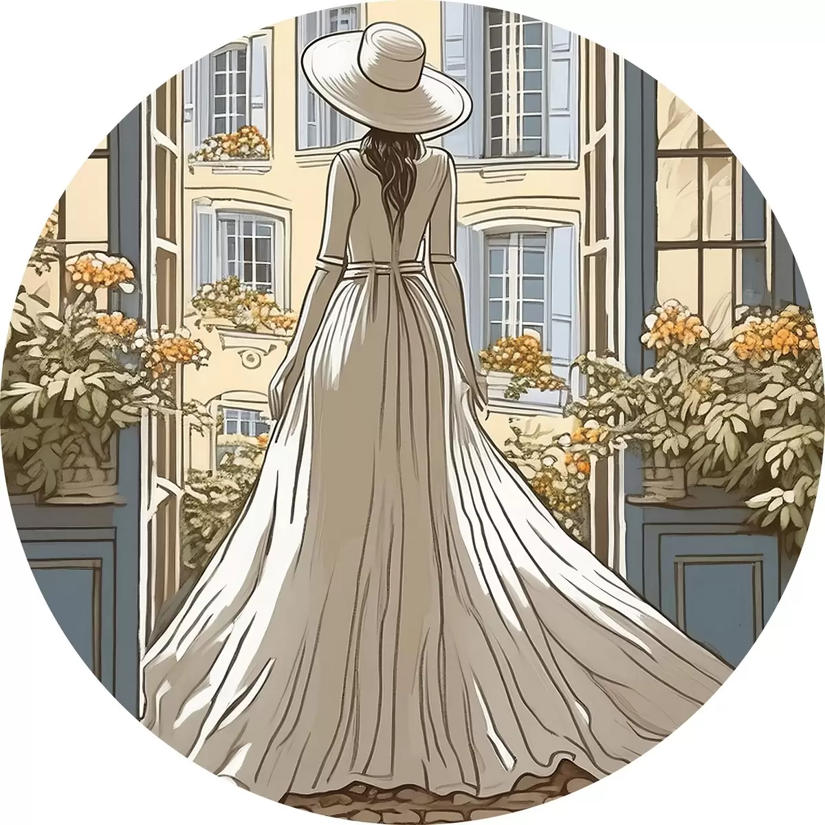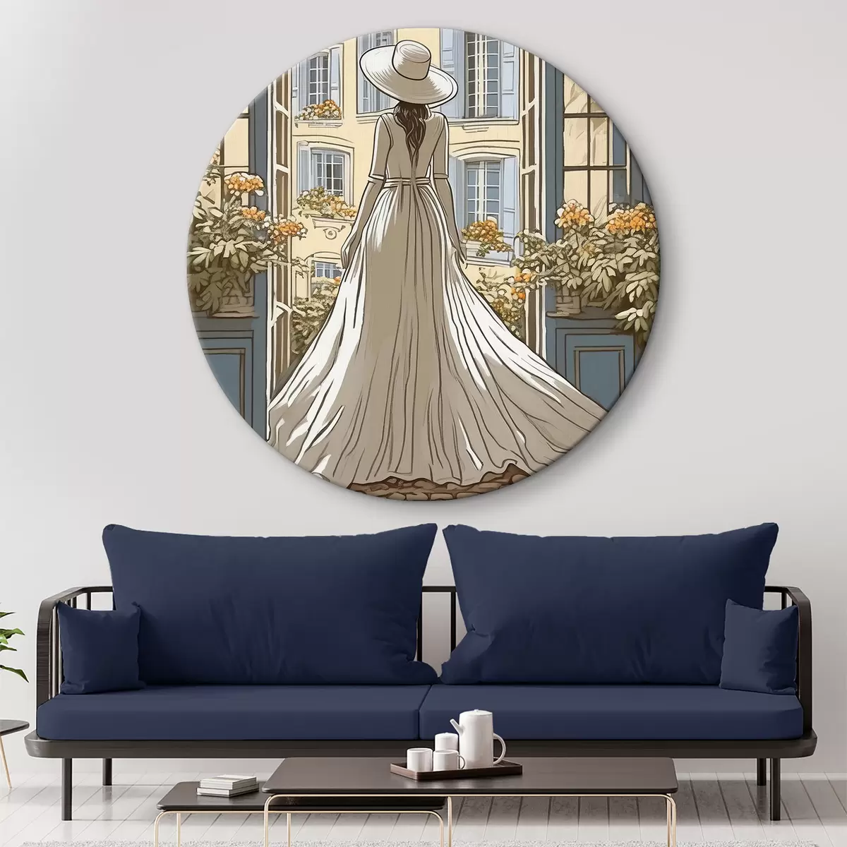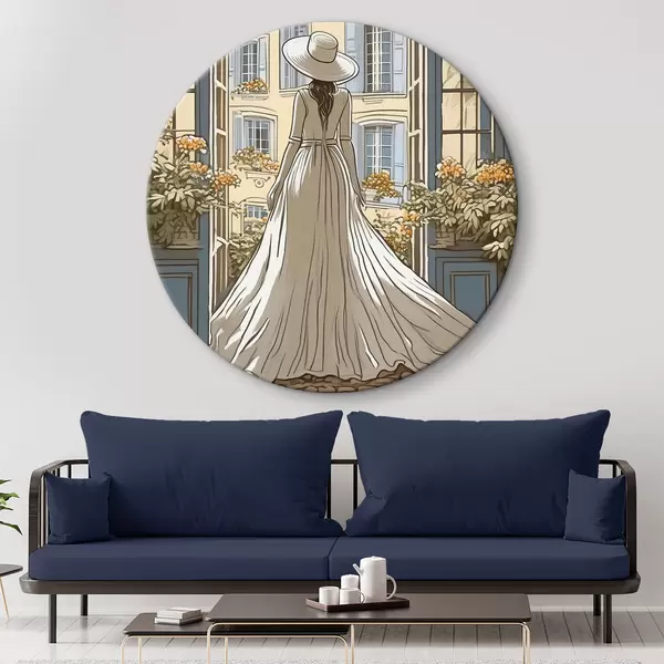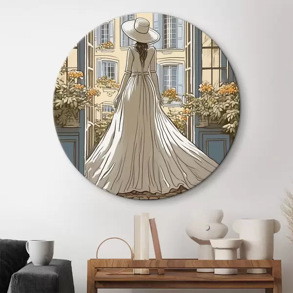 Pilt valges kleidis tüdruku siluett akna ääres Nr r39479