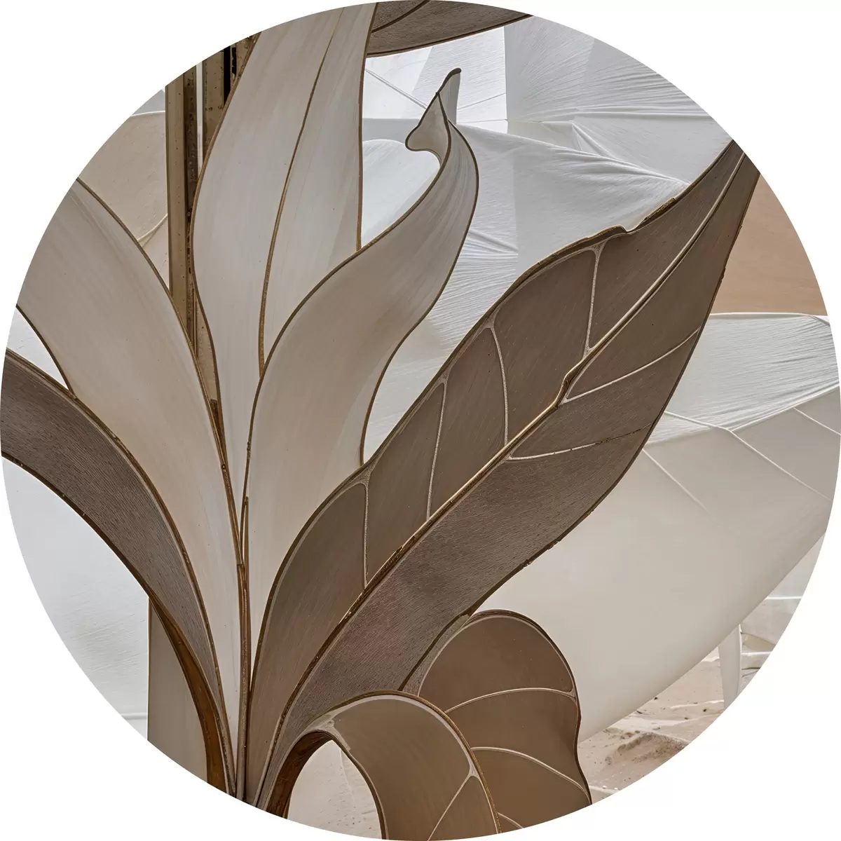 Pilt Abstraktse geomeetrilise mustri lähivaade beežides kattuvate kujundite ja tekstuuridega Nr r39498