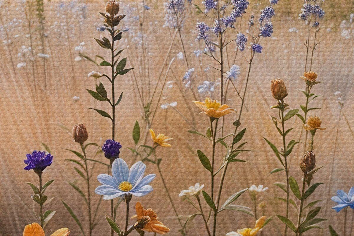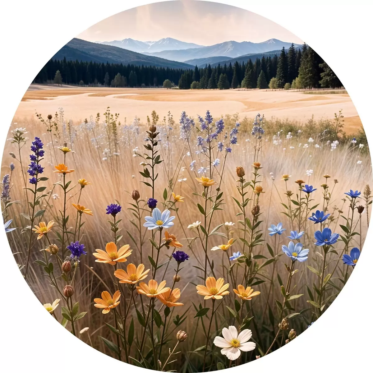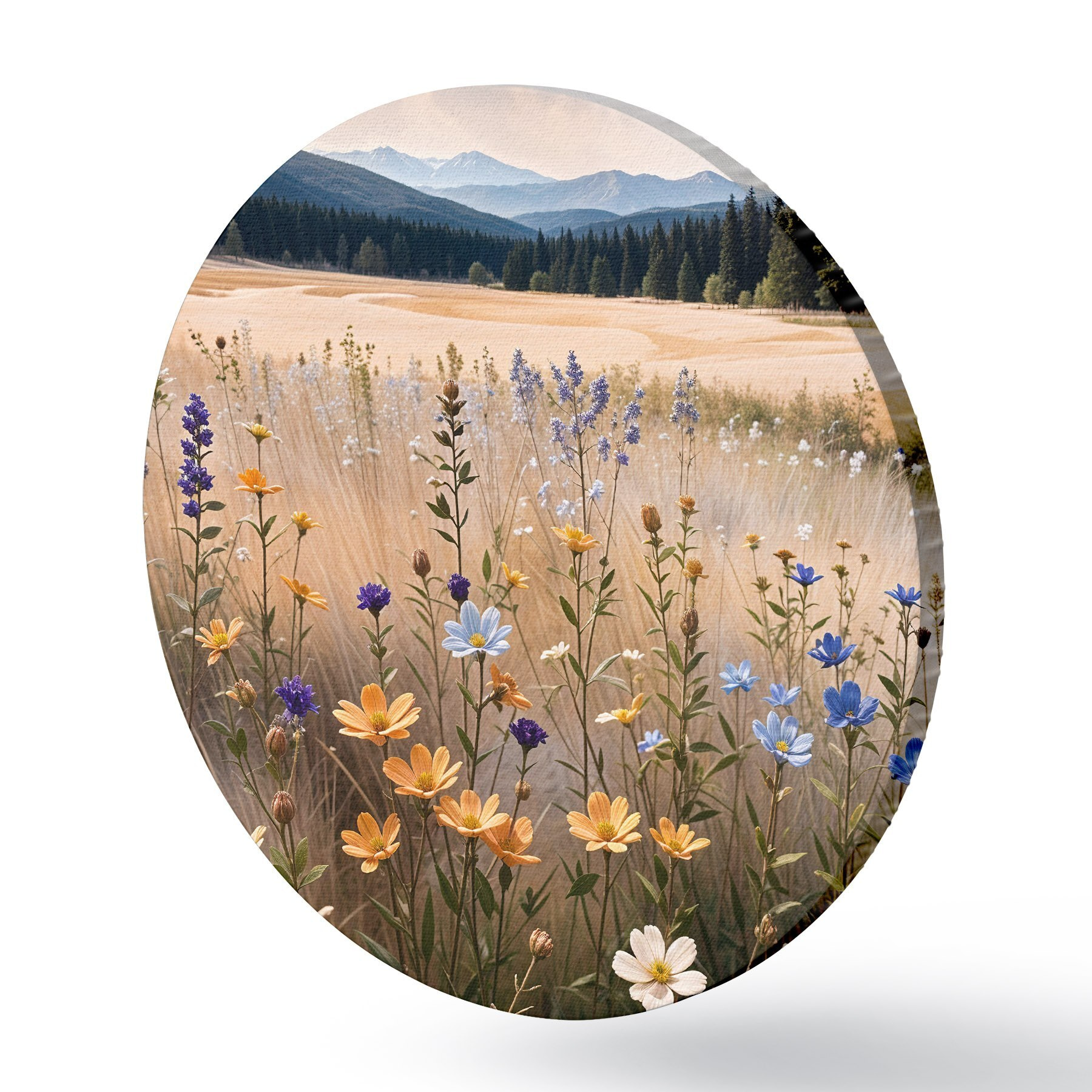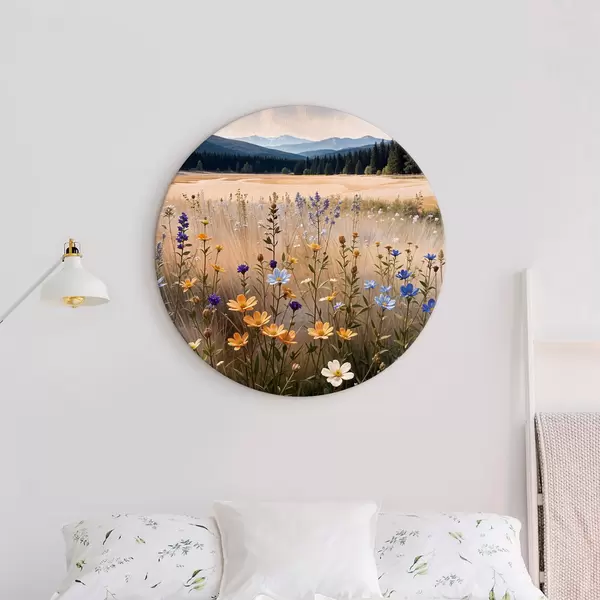 Pilt Esiplaanil värviliste metsalillede põld, taamal järv ja mäed Nr r39502