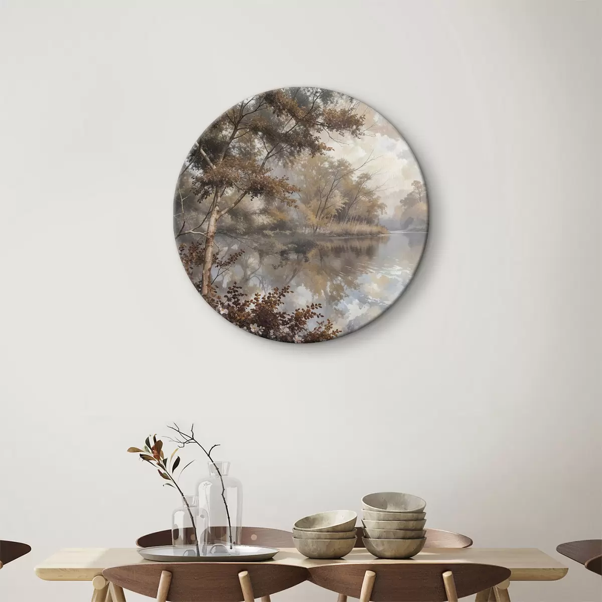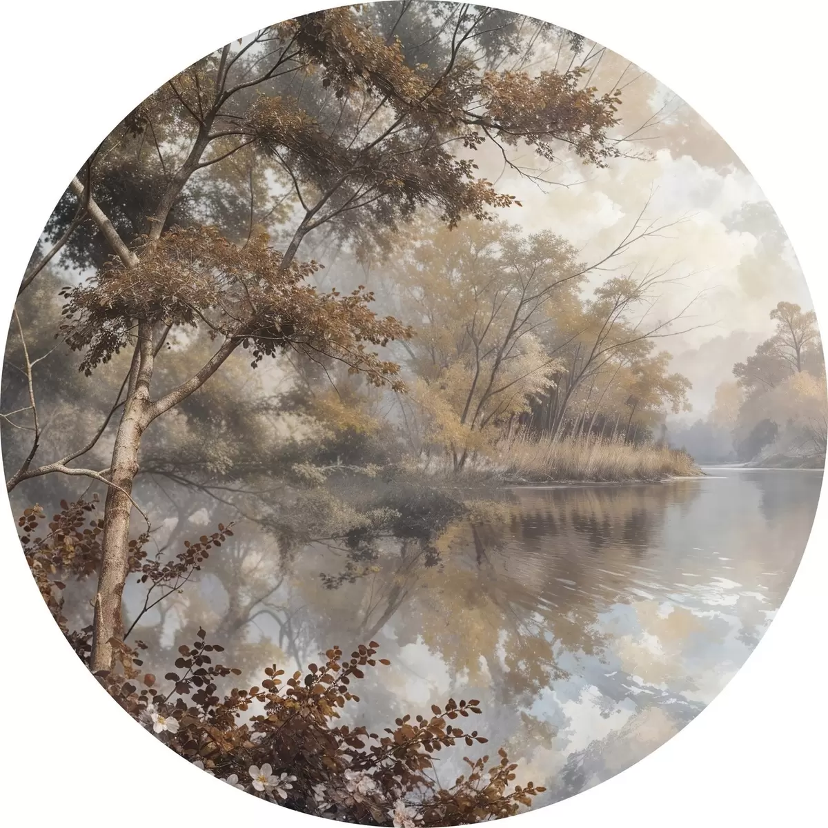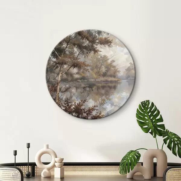 Pilt Sügisene maastik rahuliku järvega, mida ümbritsevad erksa oranži ja kollase lehestikuga puud Nr r39511
