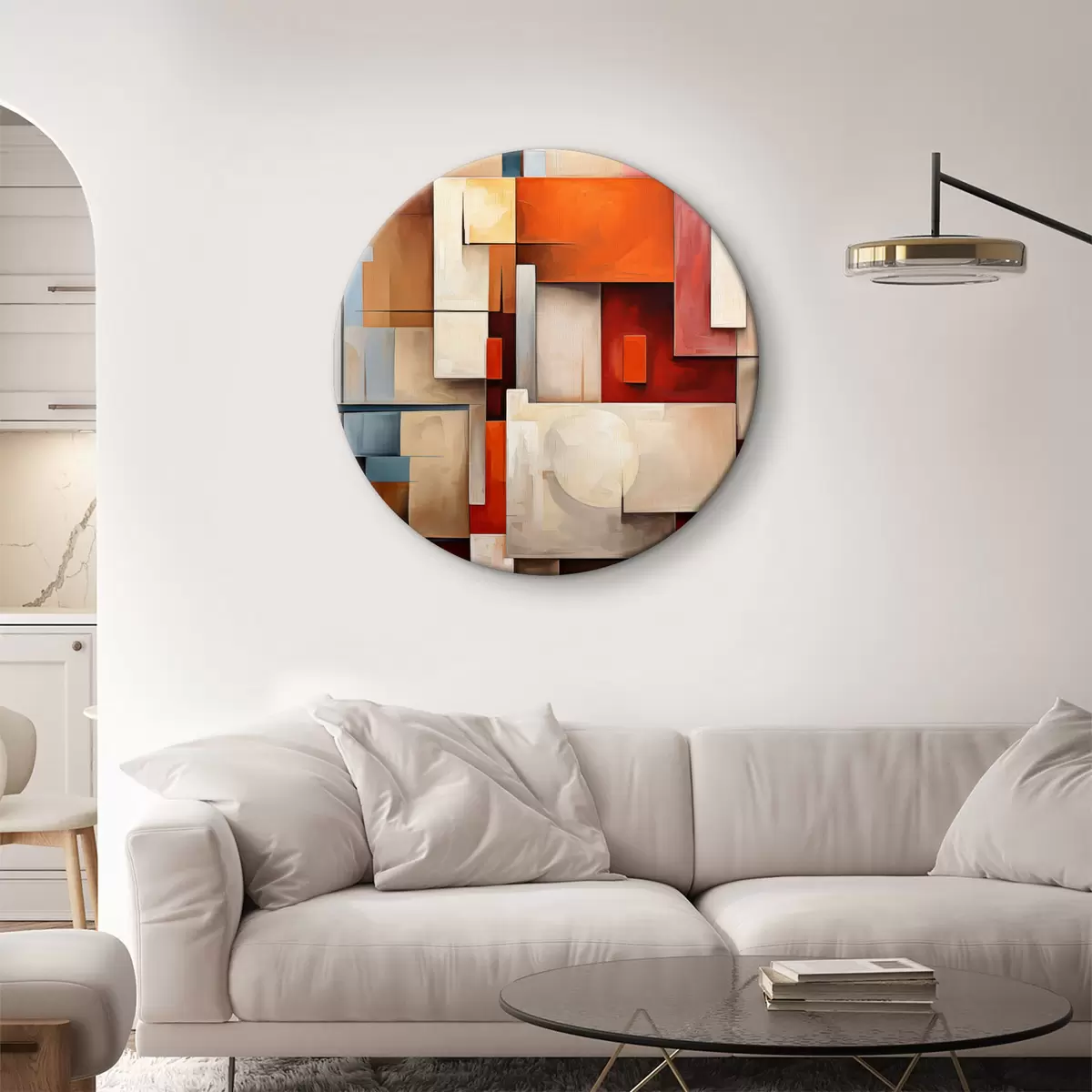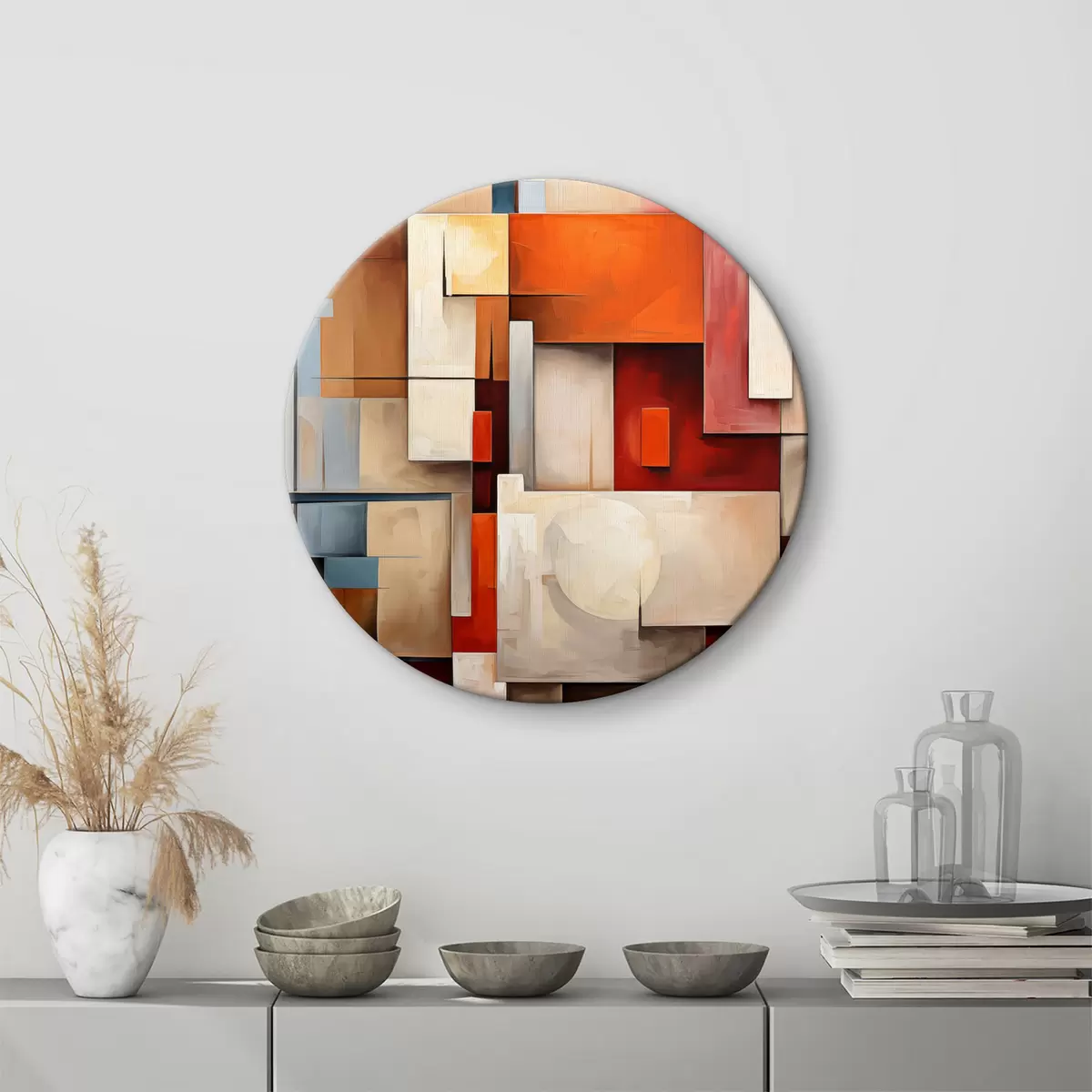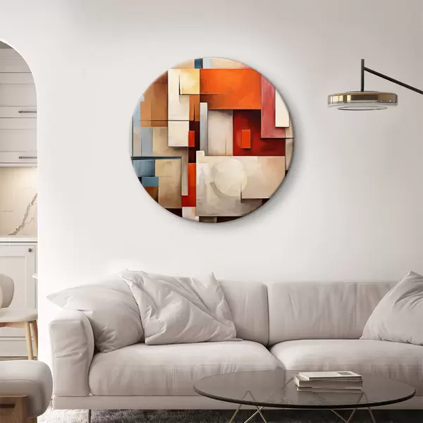 Pilt Abstraktsioon kubismi stiilis, õlimaal, punane, sinine, valge värvid Nr r39571