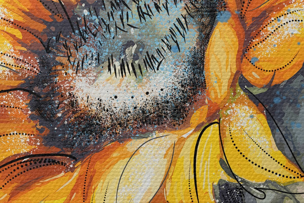 Pilt Akvarell päikeselill koos värvipritsmetega Nr r39583