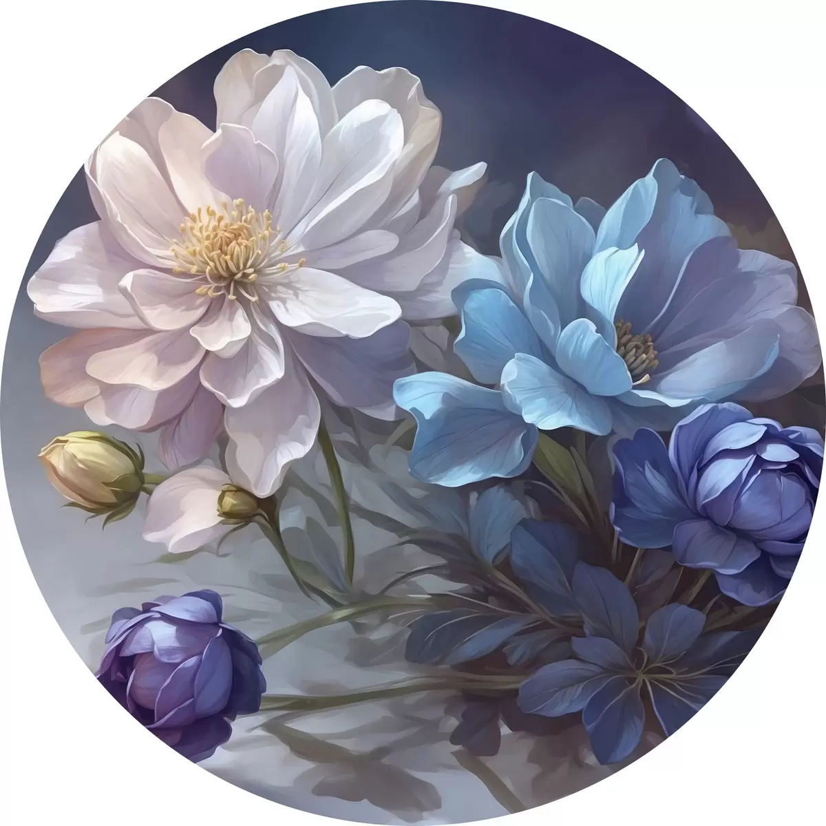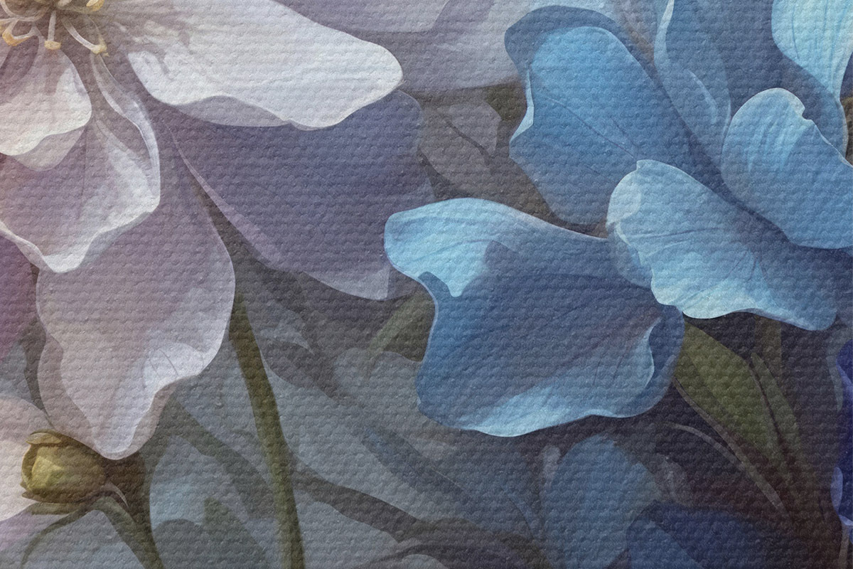 Pilt Valged ja sinised lilled ähmasel taustal Nr r39603