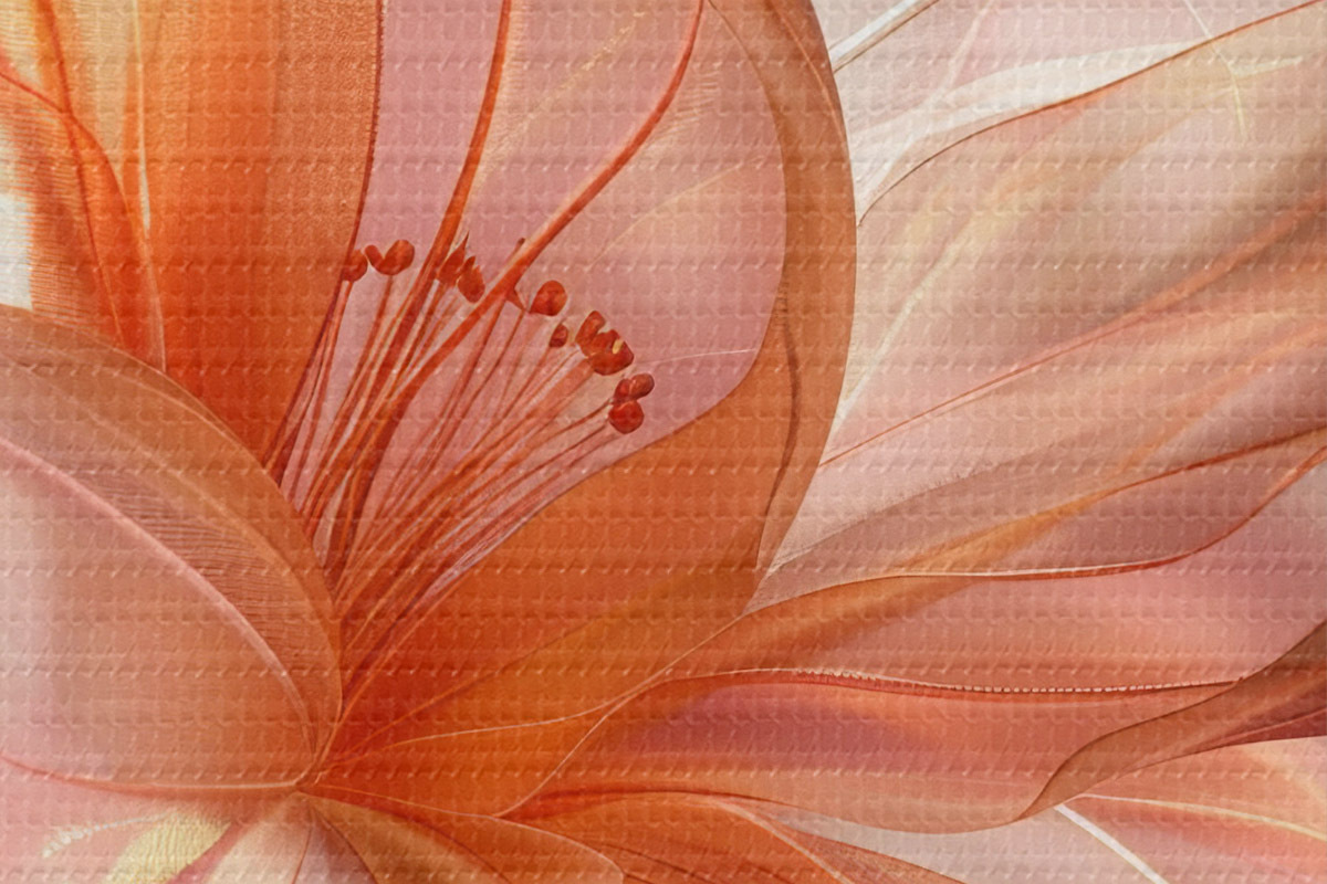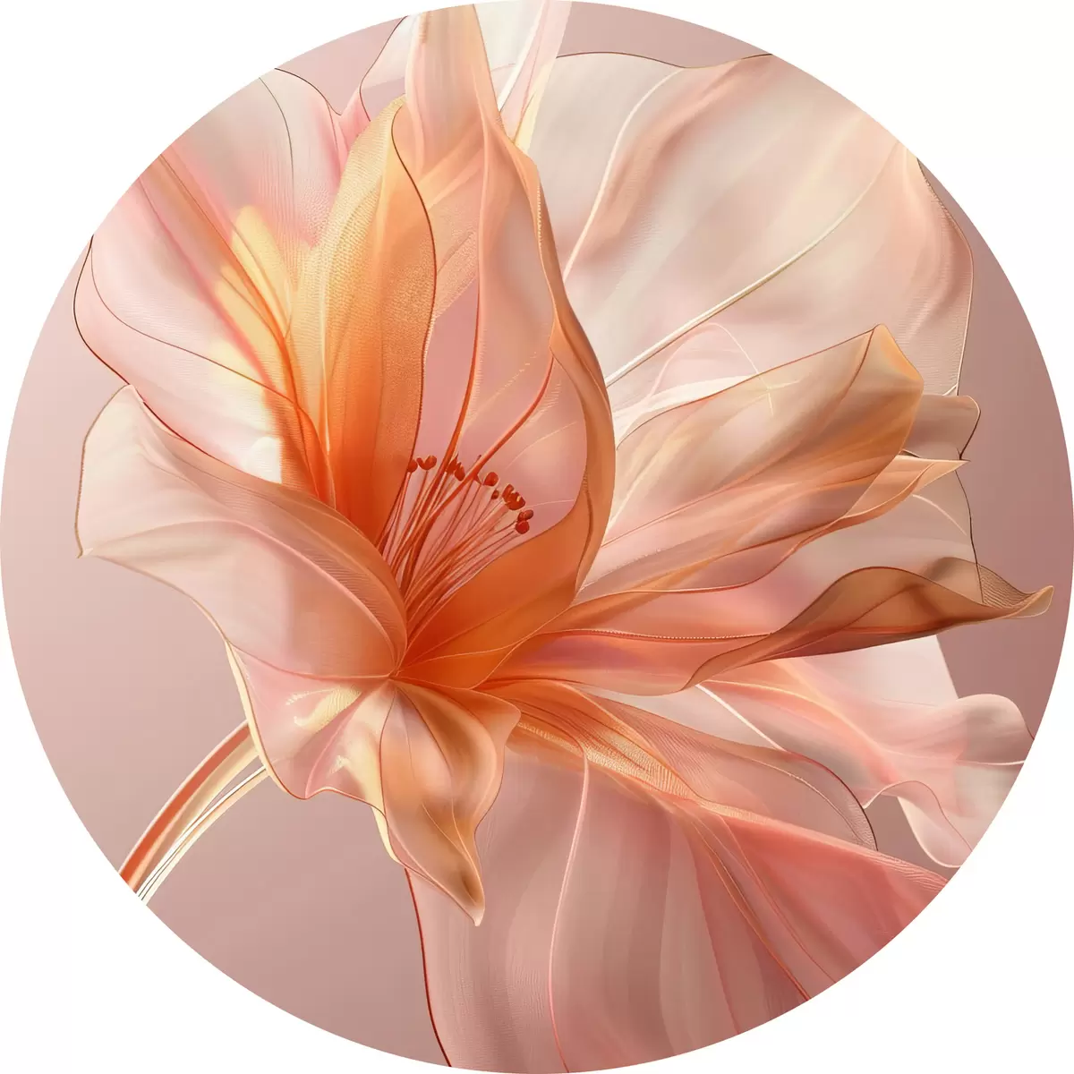 Pilt Virsikuõie kroonleht roosal taustal voolavate joonte, minimalismi ja õrnade detailidega Nr r39631