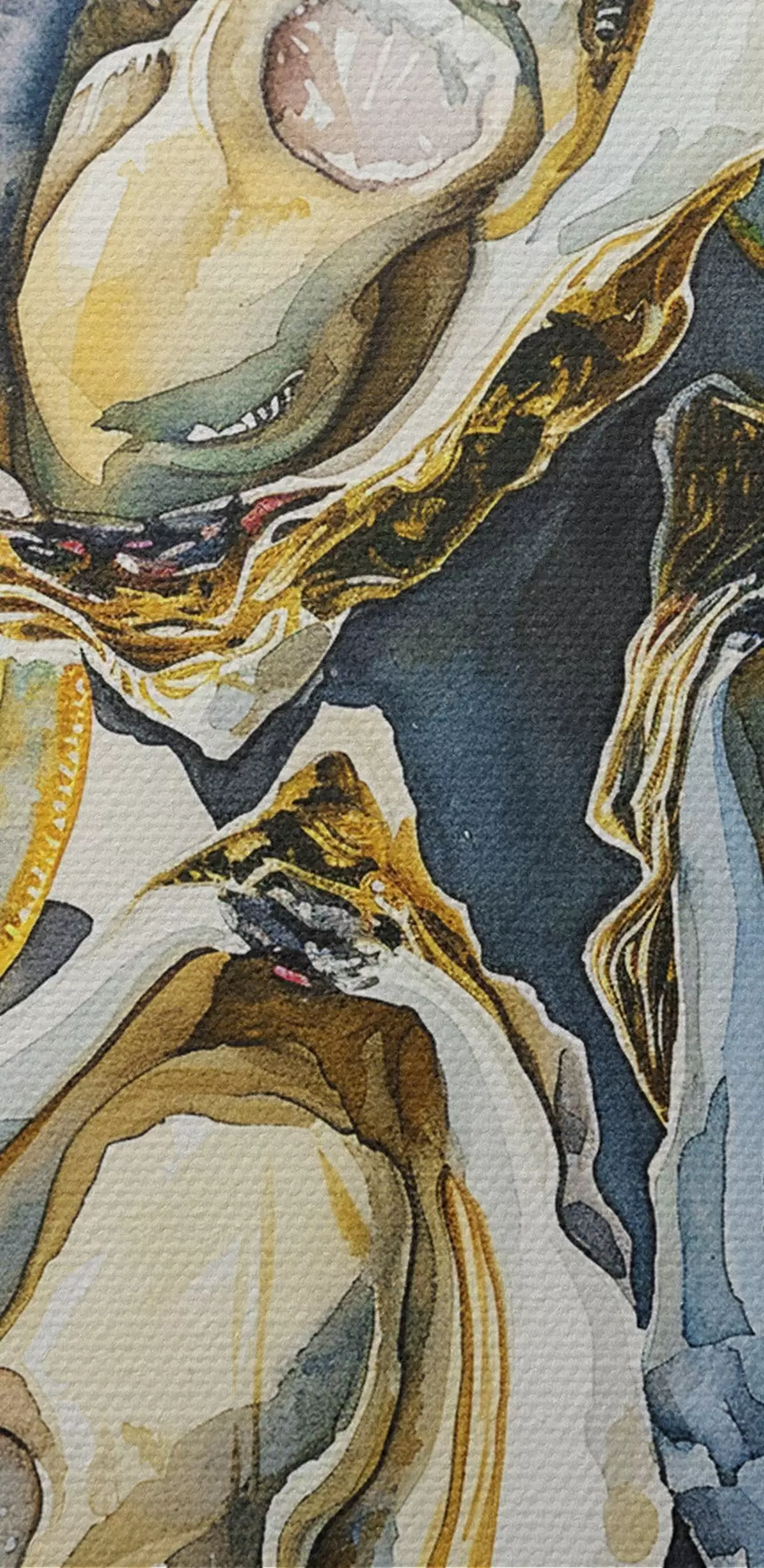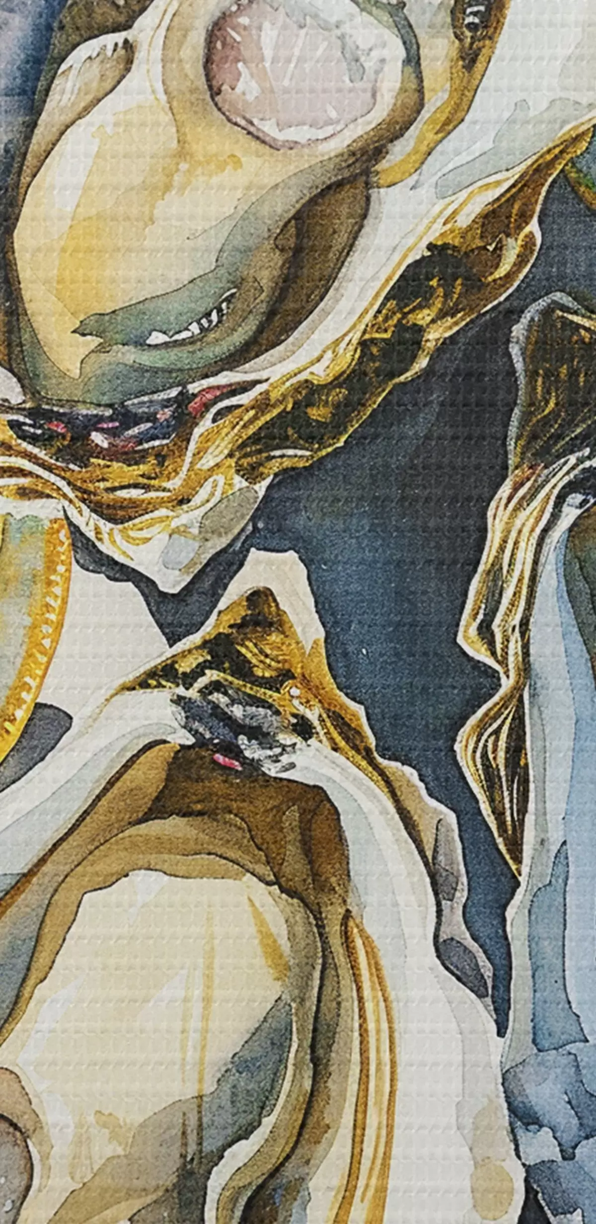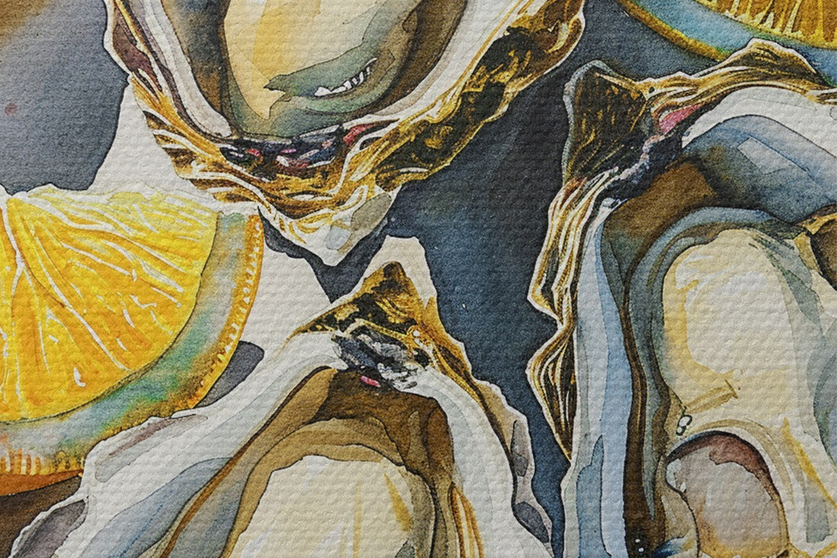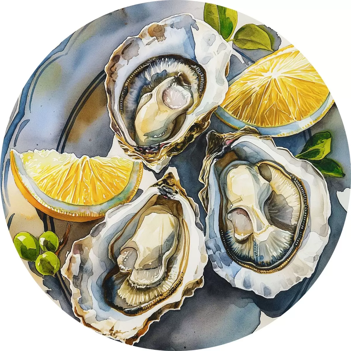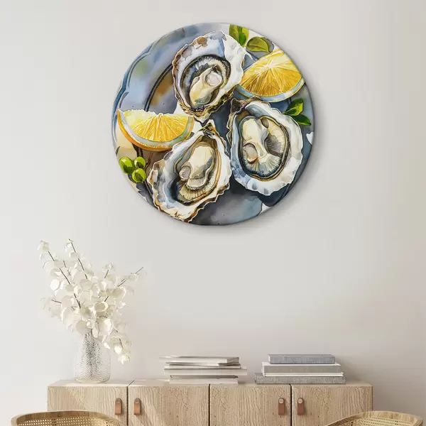 Pilt Elegantsed austrid taldrikul, akvarell, sidrunid, looduslikud värvid, vahemerelik Nr r39711