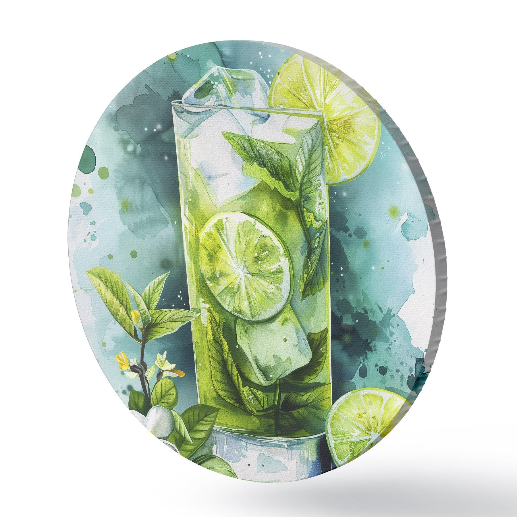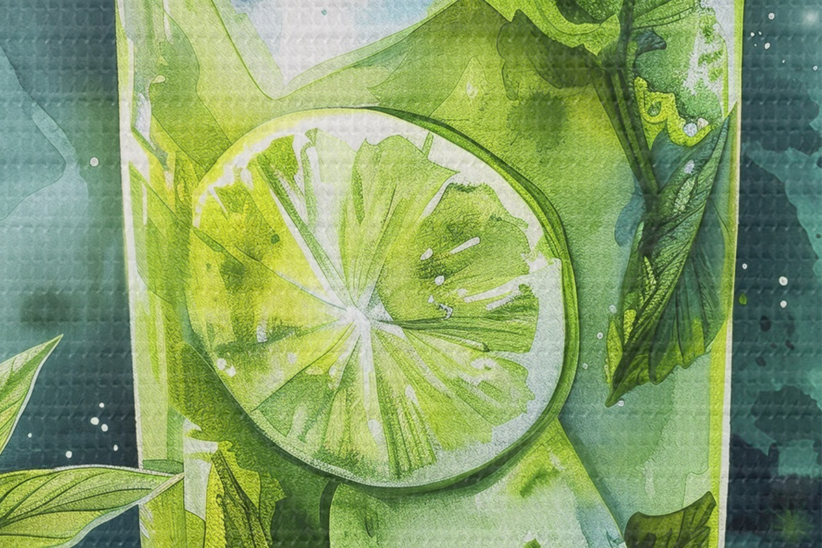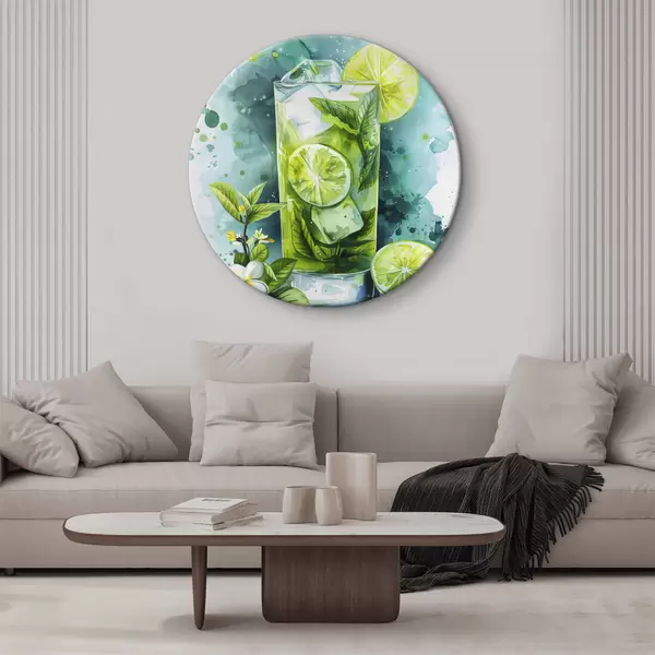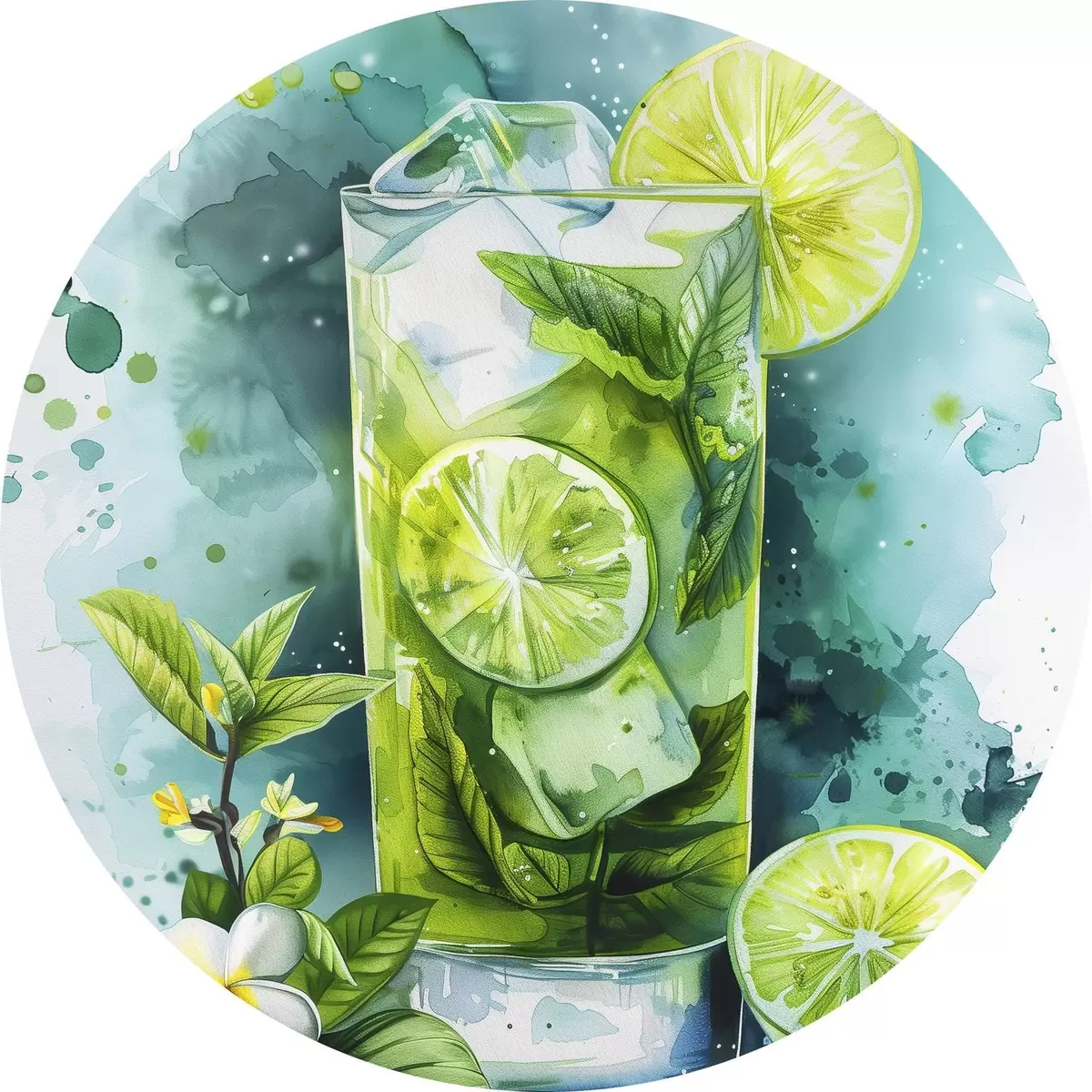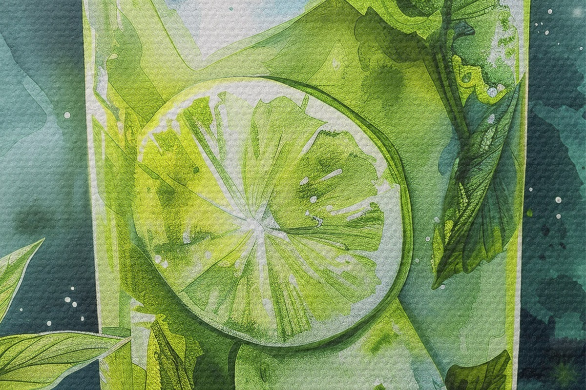 Pilt Akvarell suvekokteil, mojito, laim ja piparmünt, lillelised, rohelised värvid Nr r39712