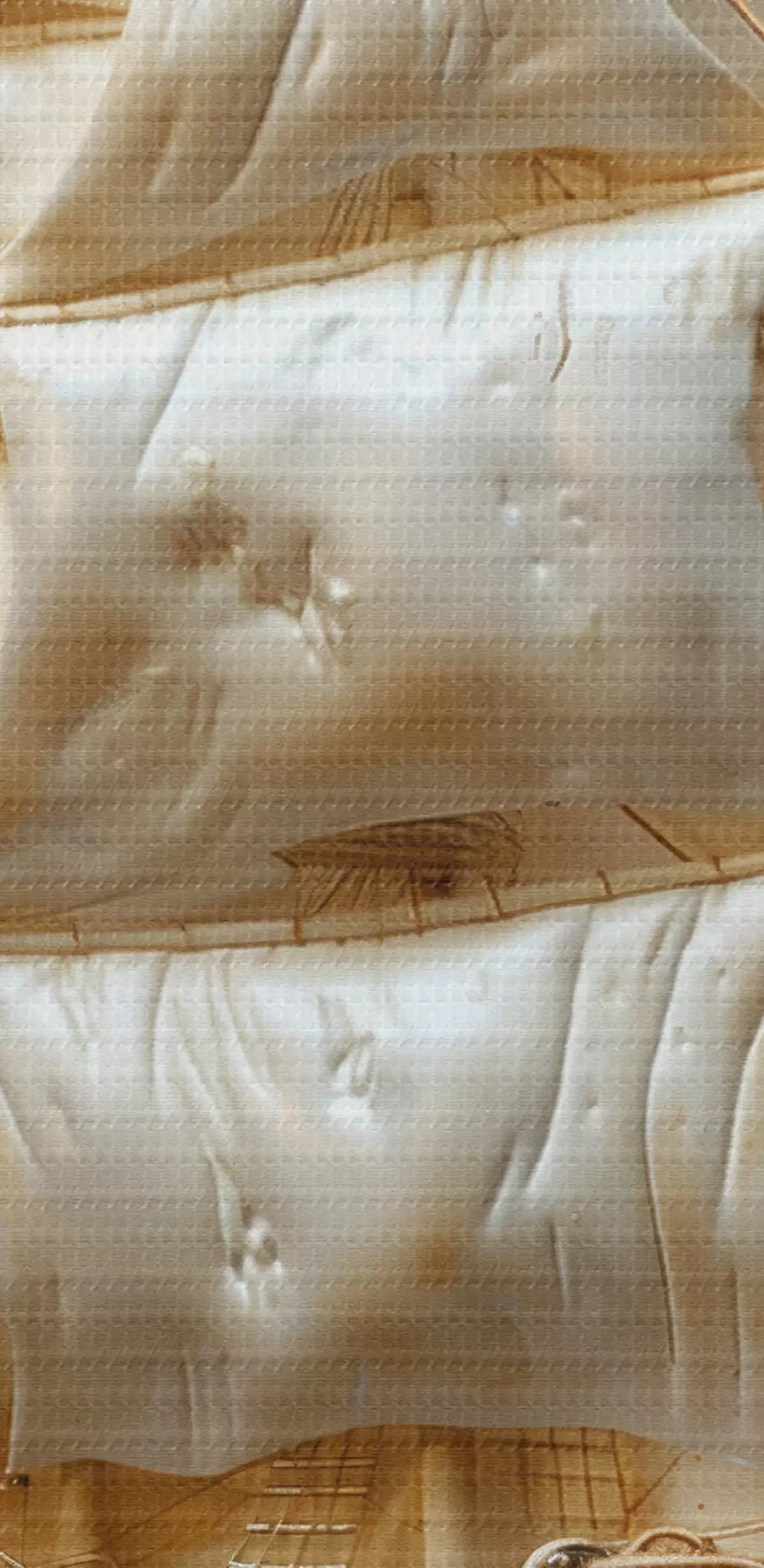 Selle lõuendi peenike niidipunus meenutab professionaalse kunstniku lõuendi pinda.