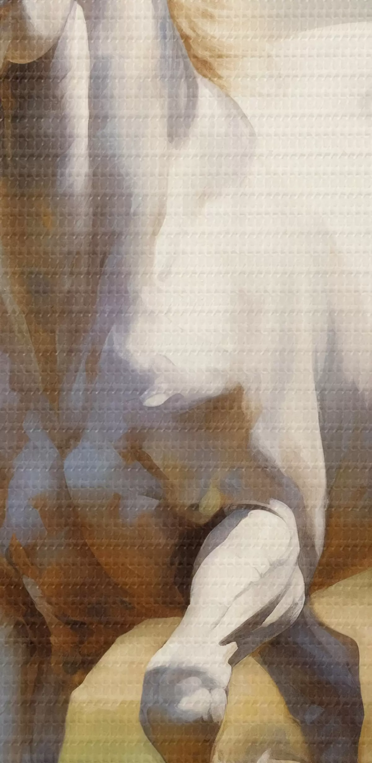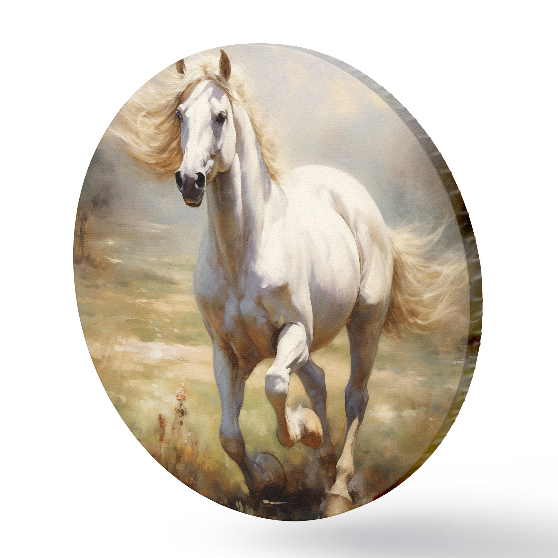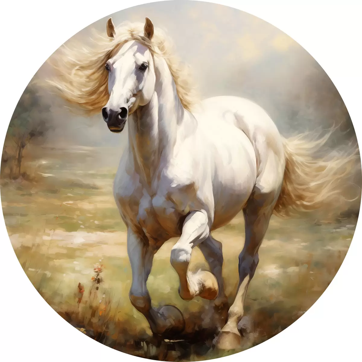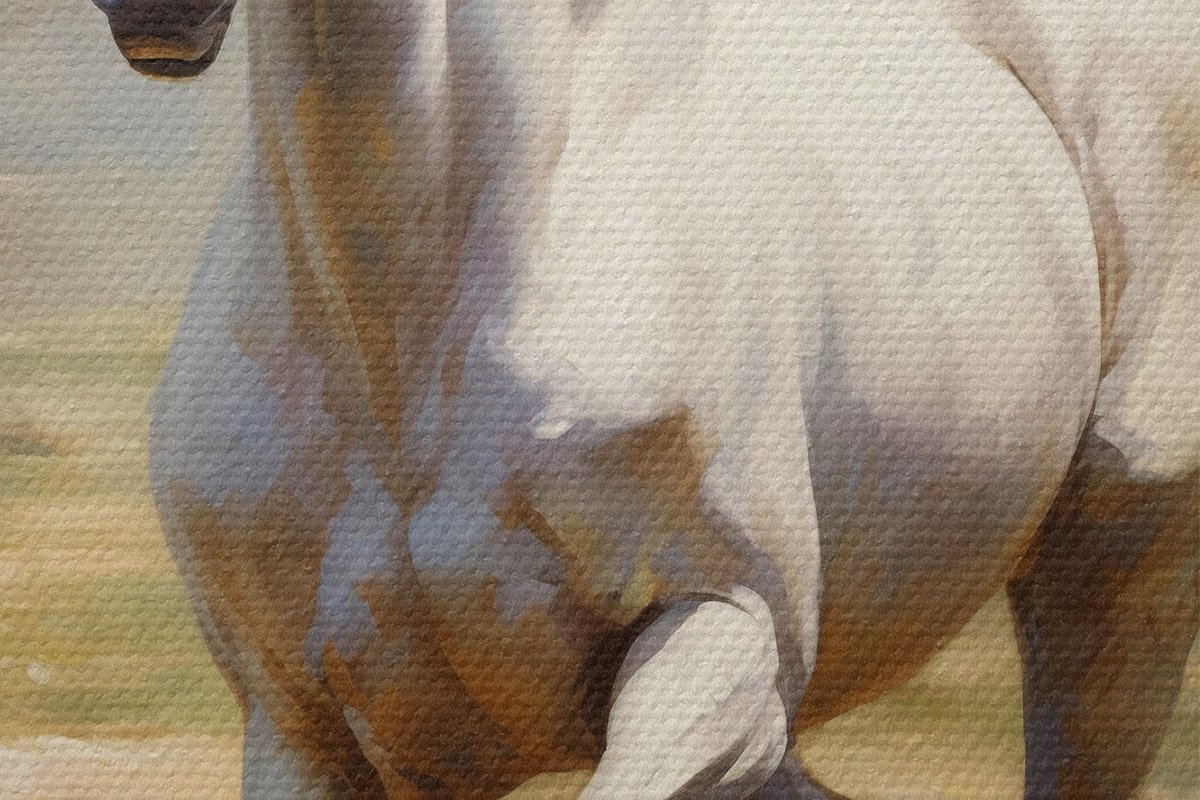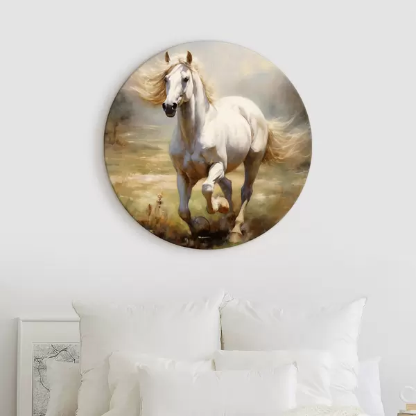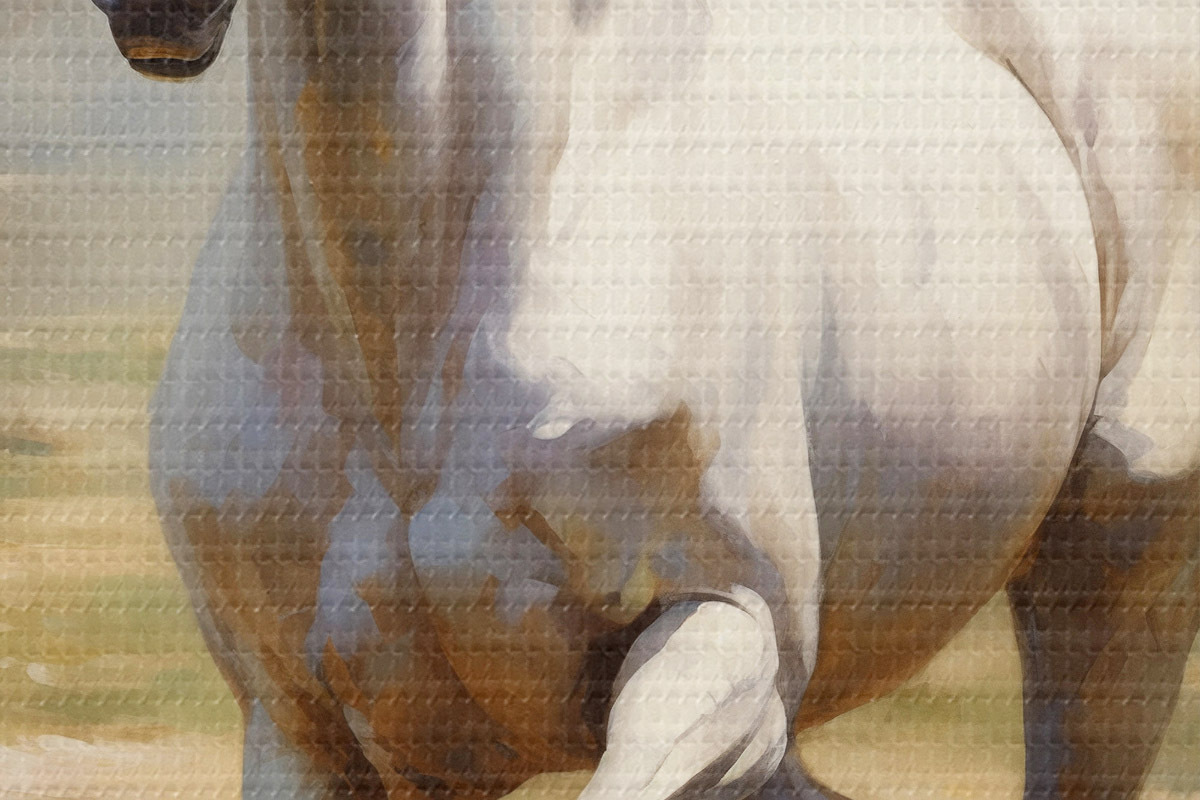 Pilt Valge hobune kappamas üle heinamaa õlimaal Nr r39818