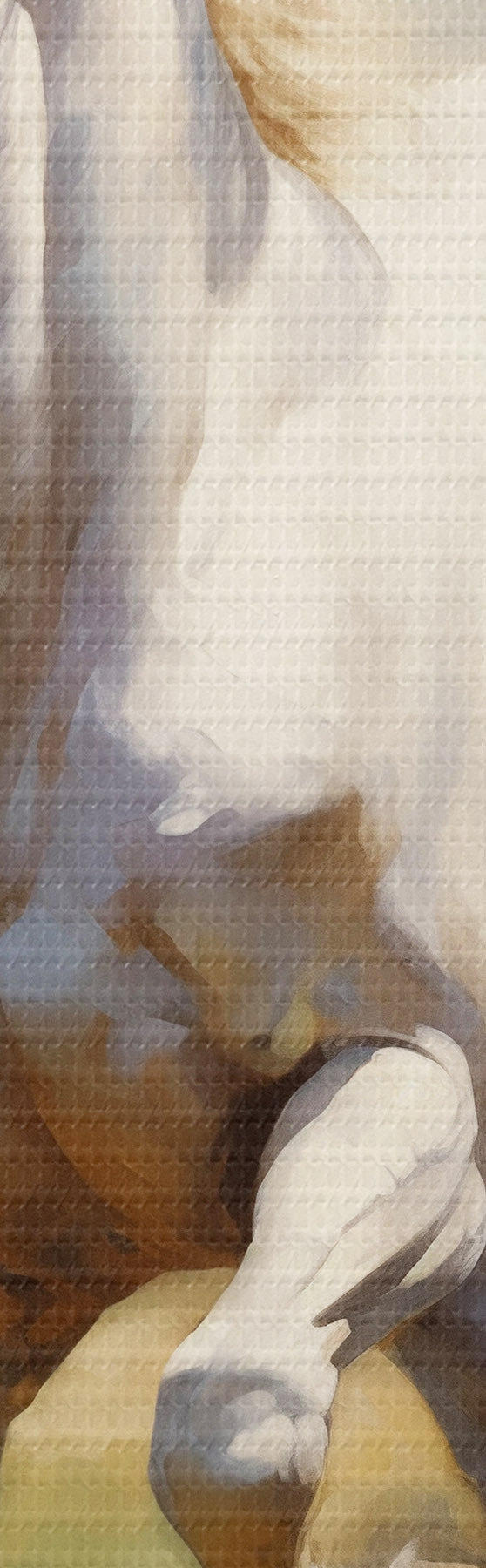 Selle lõuendi peenike niidipunus meenutab professionaalse kunstniku lõuendi pinda.