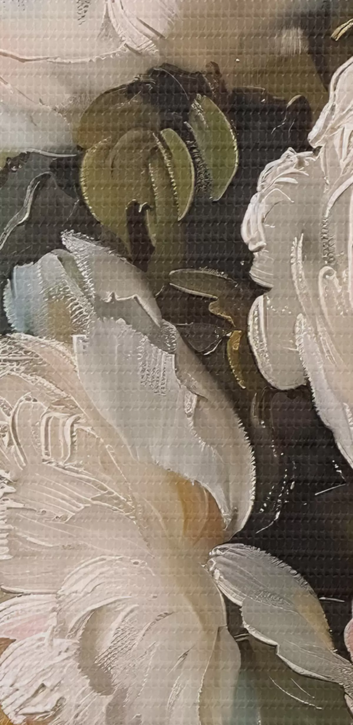 Selle lõuendi peenike niidipunus meenutab professionaalse kunstniku lõuendi pinda.