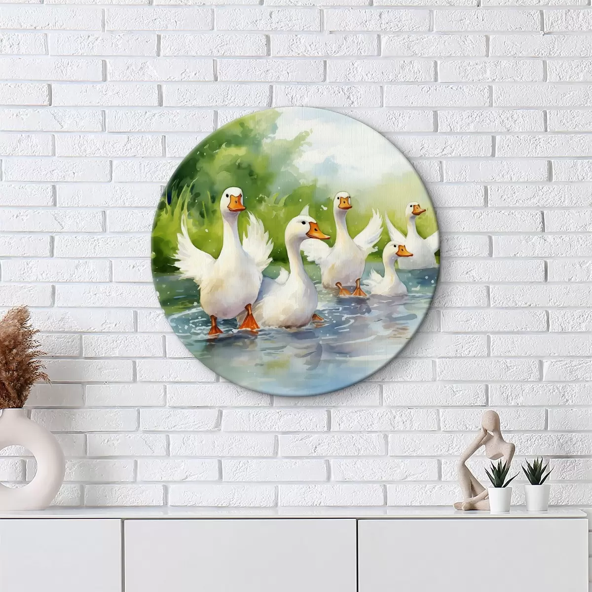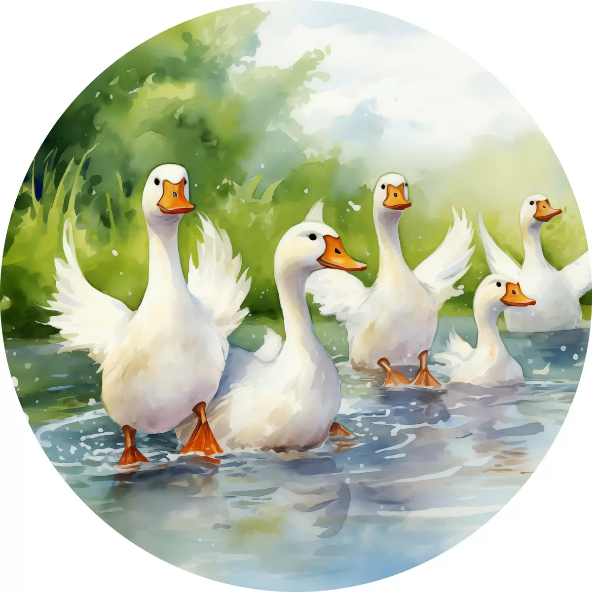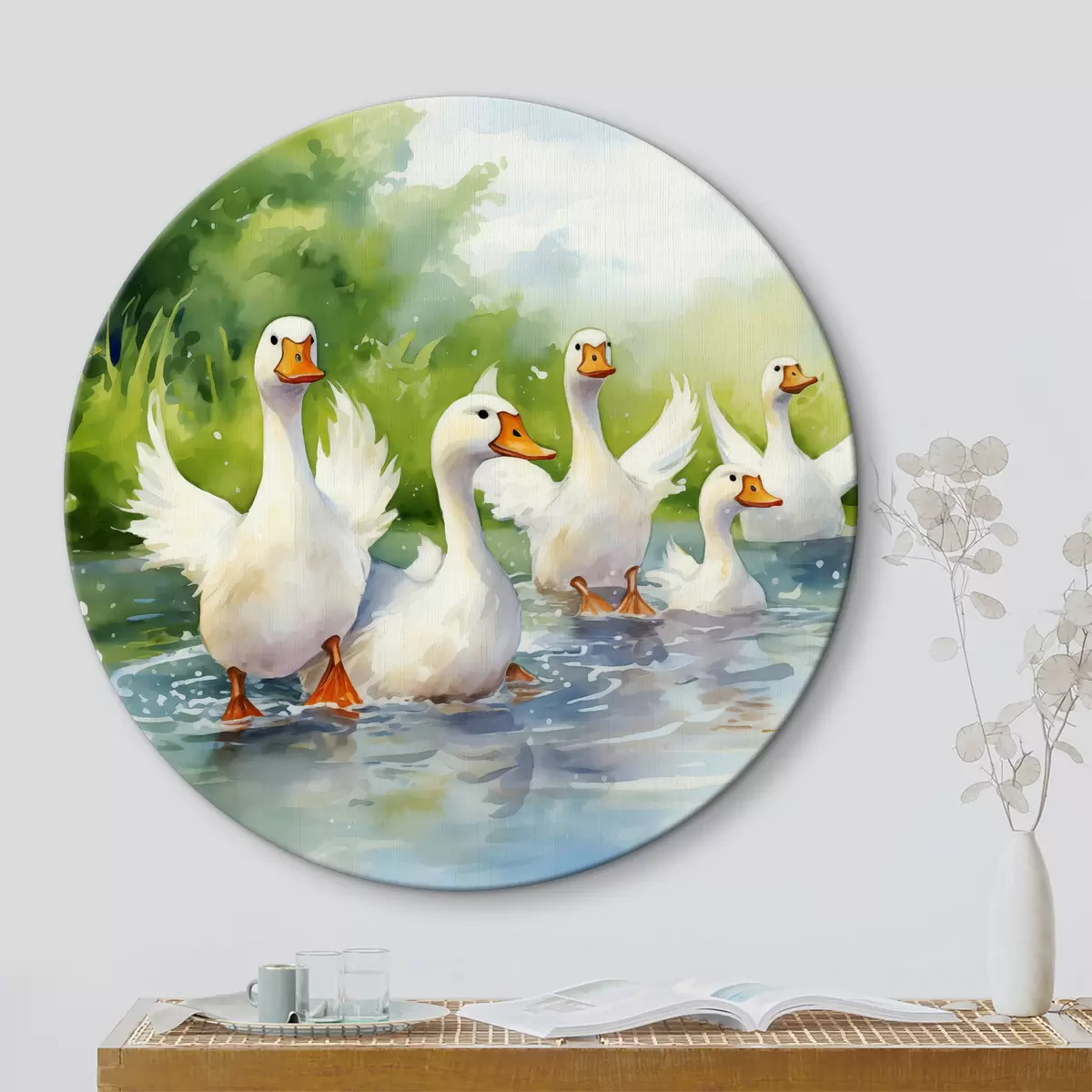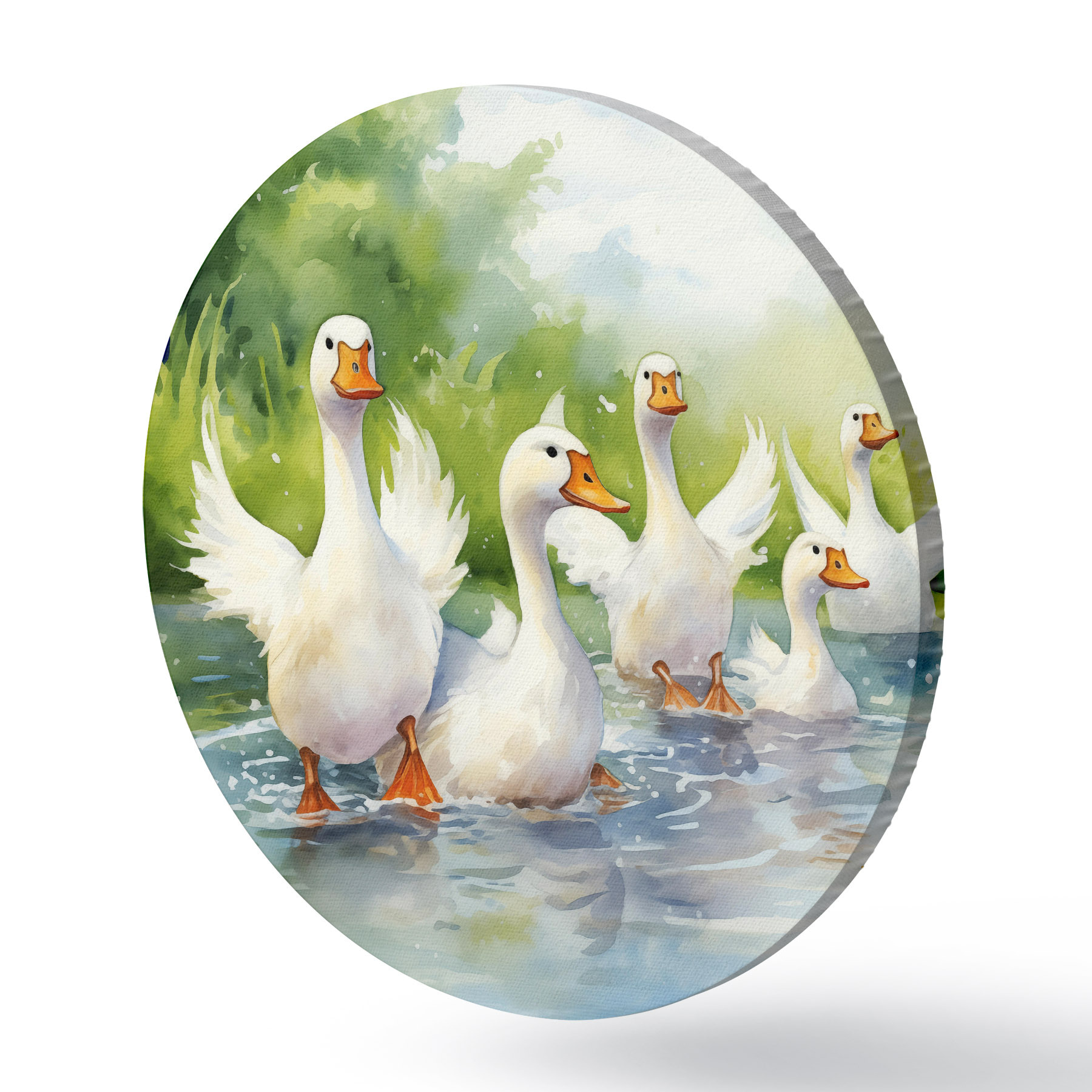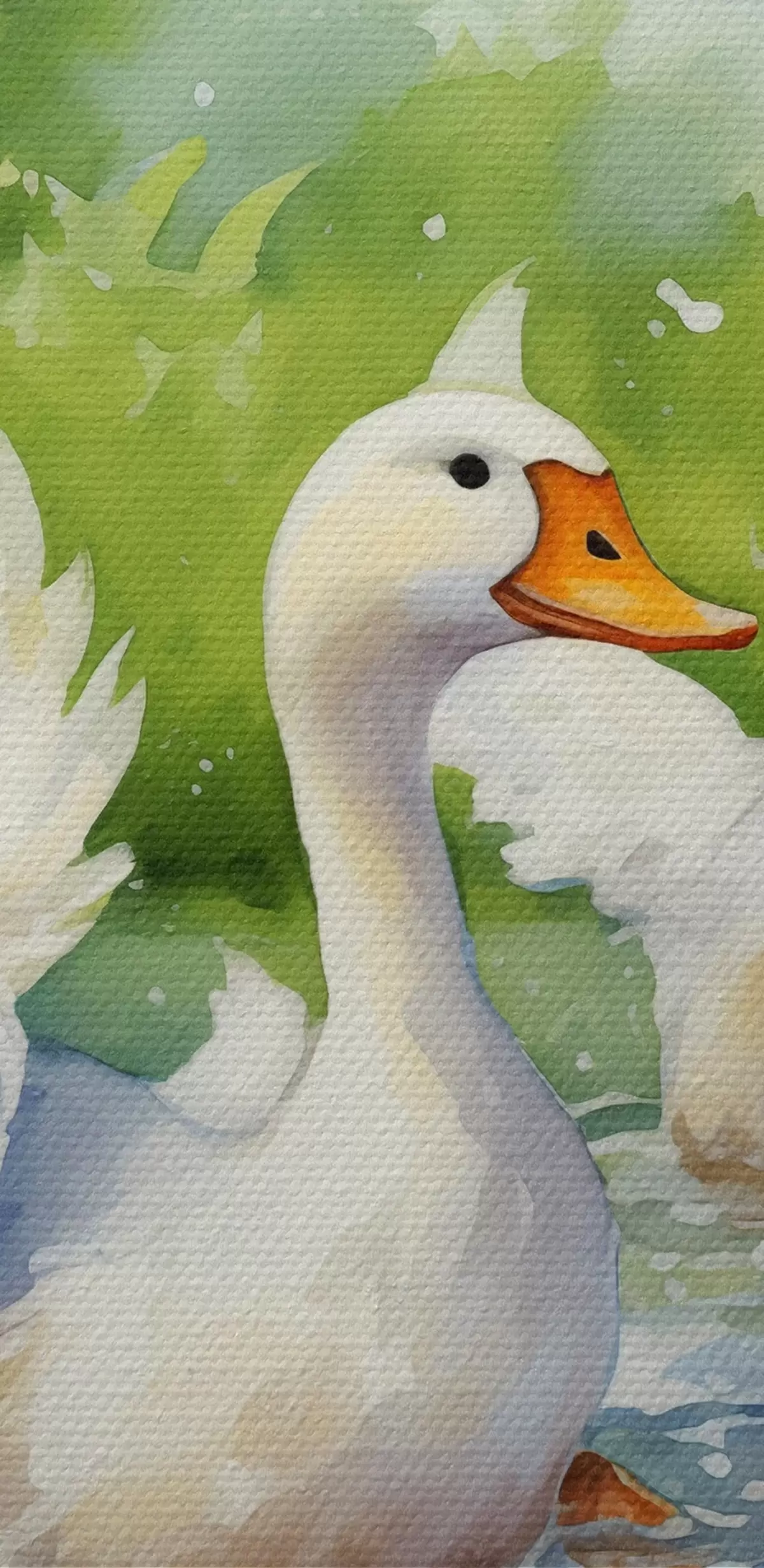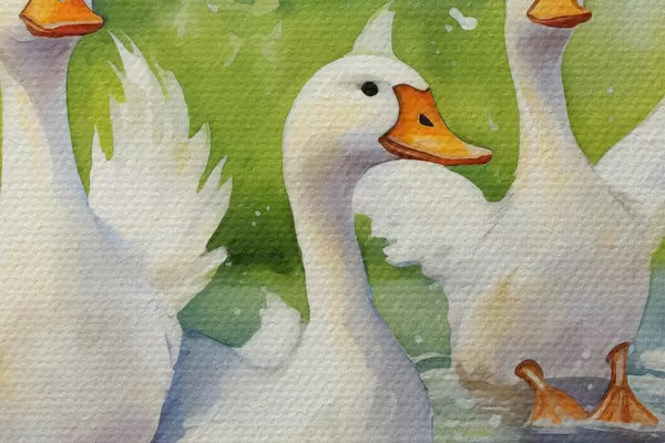 Pilt Valgehaned suplemas tiigis akvarellmaal Nr r39939