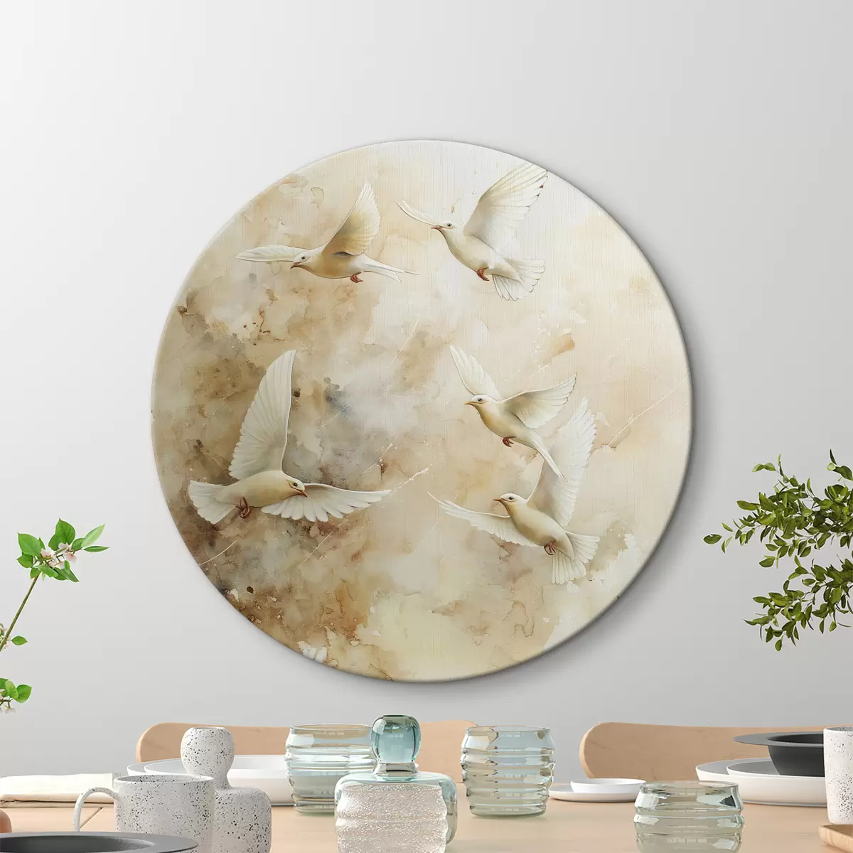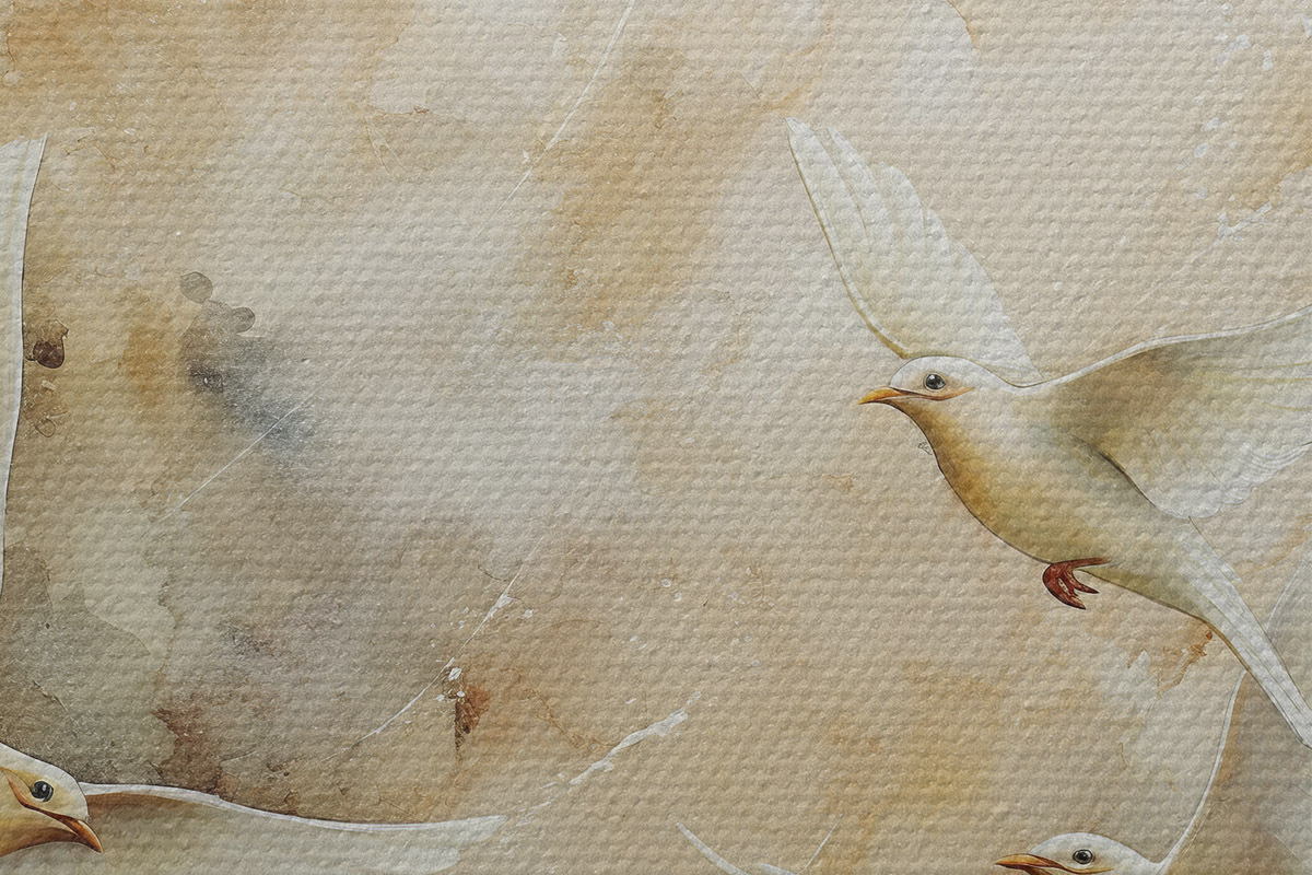 Pilt Akvarell lendavad tuvid, pehmed beežid ja valged värvid Nr r39977