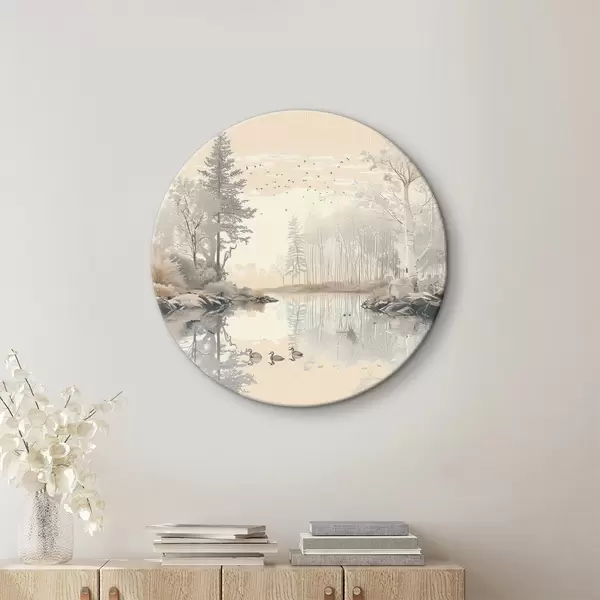 Pilt Kaunis loodusmaastik, tiik ja puud, elusloodus, pehmed pastelsed värvid Nr r39980