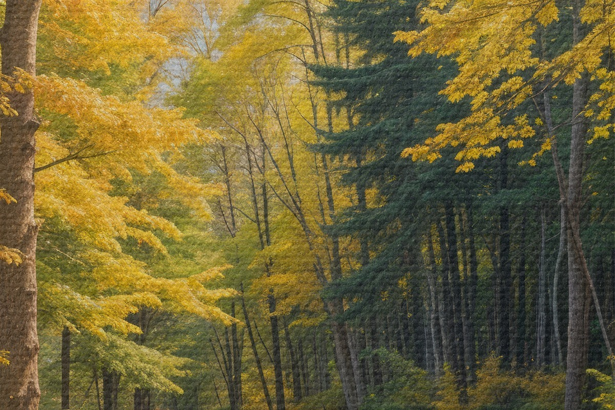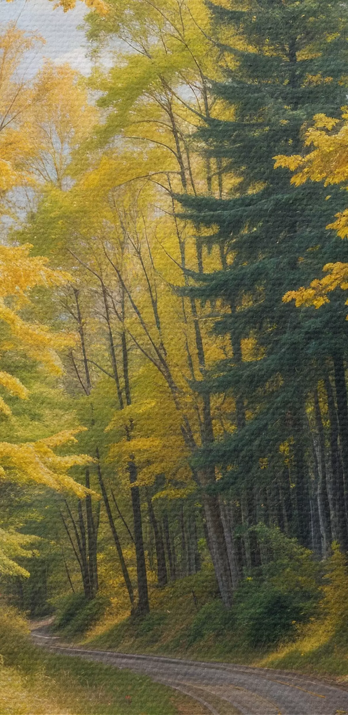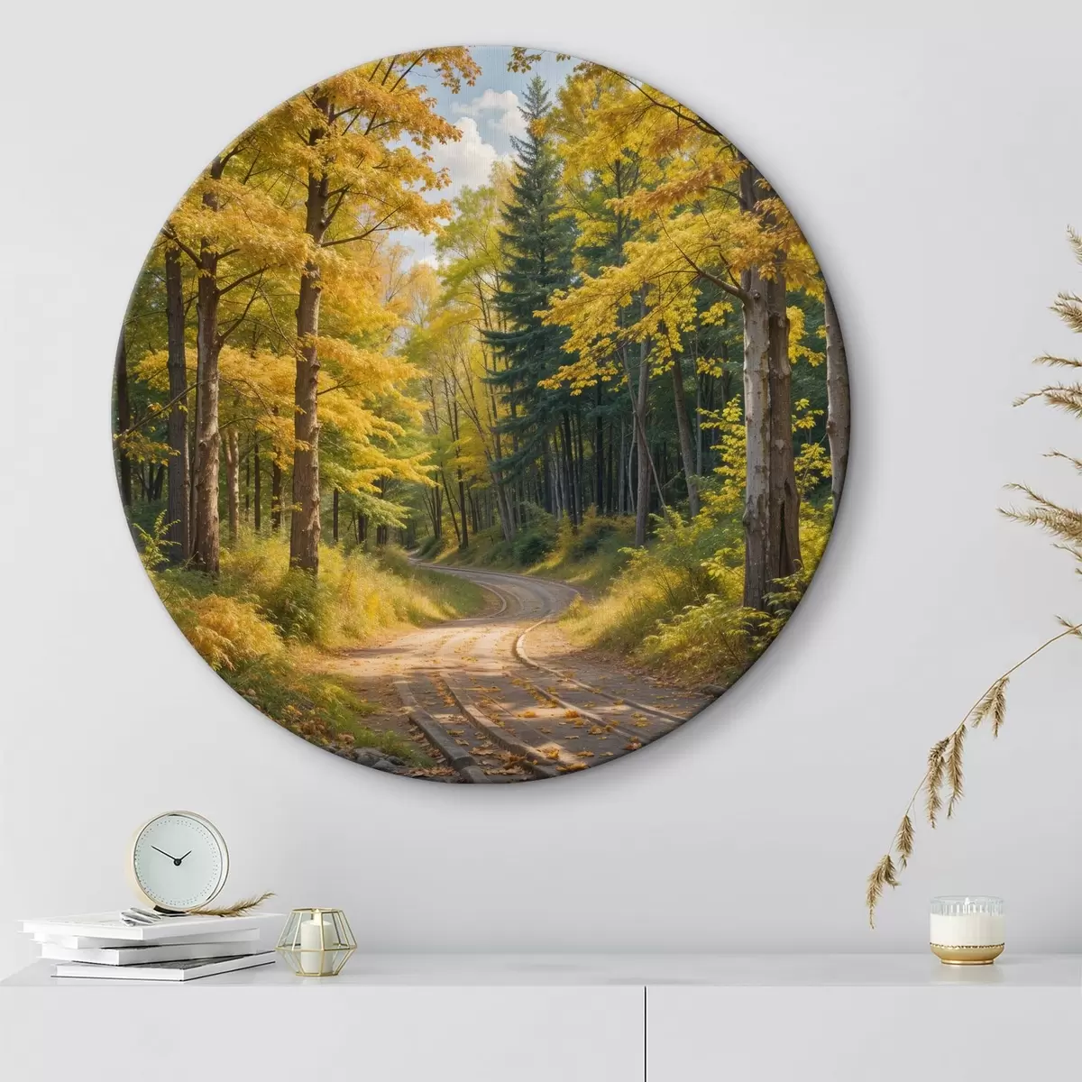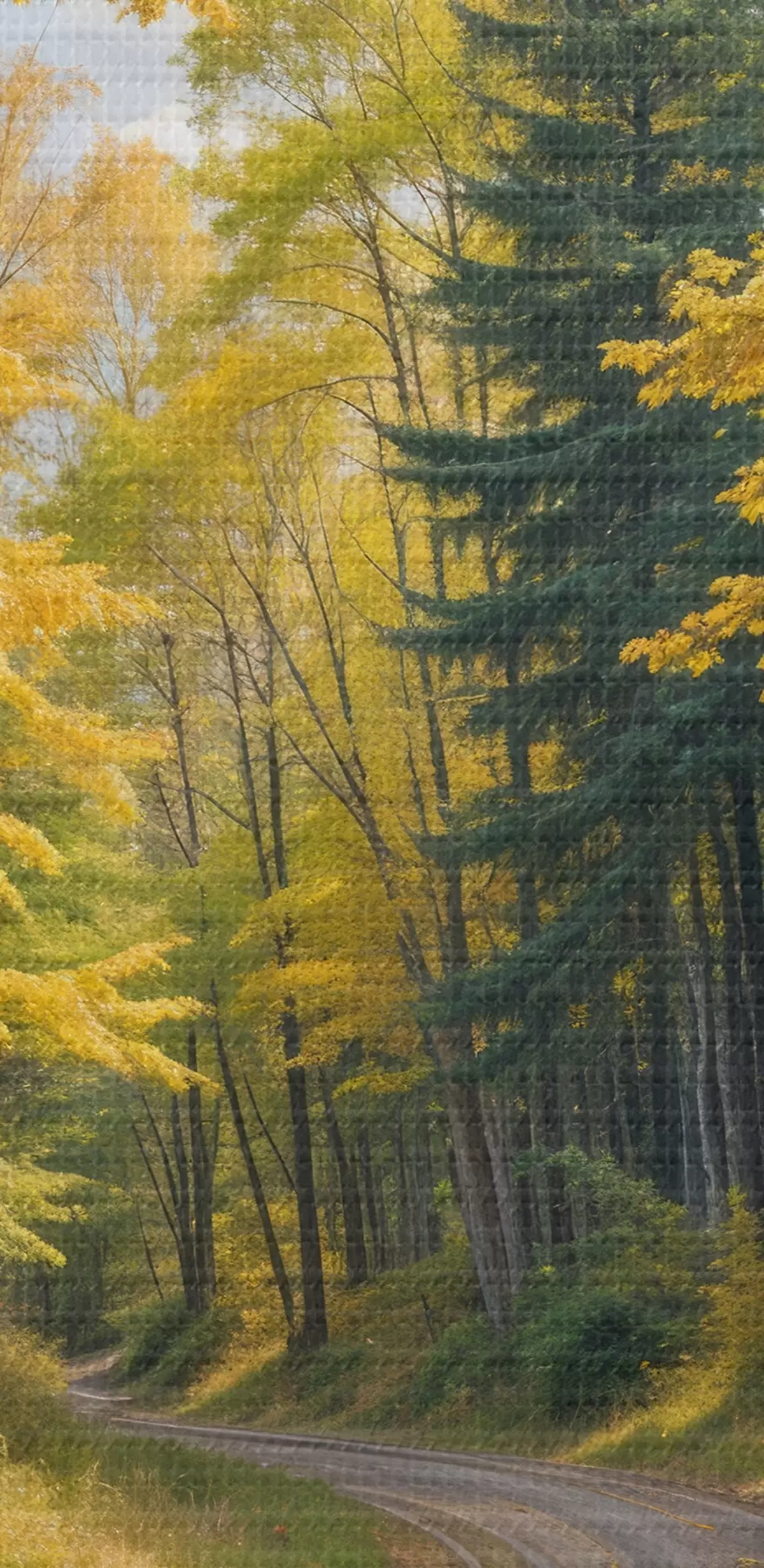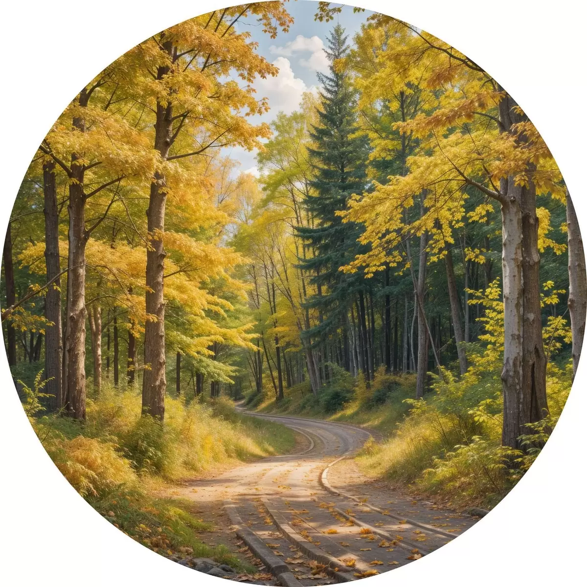 Pilt Sügisel läbi metsa looklev pinnastee, millel kahel pool kõrged puud Nr r40031