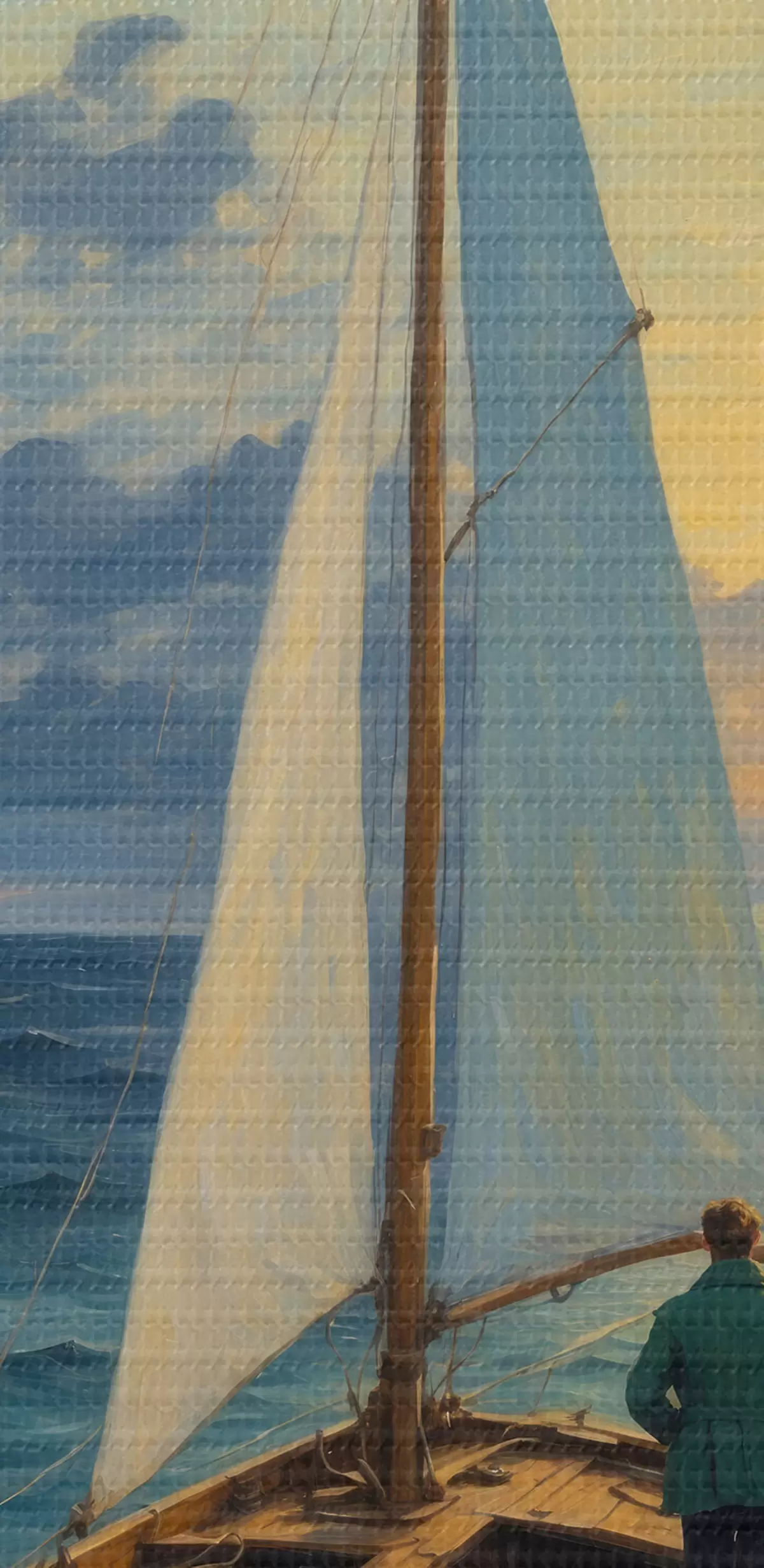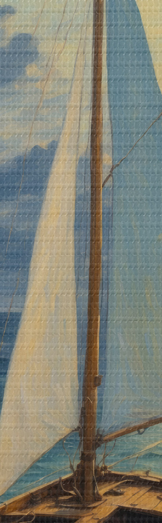 Selle lõuendi peenike niidipunus meenutab professionaalse kunstniku lõuendi pinda.