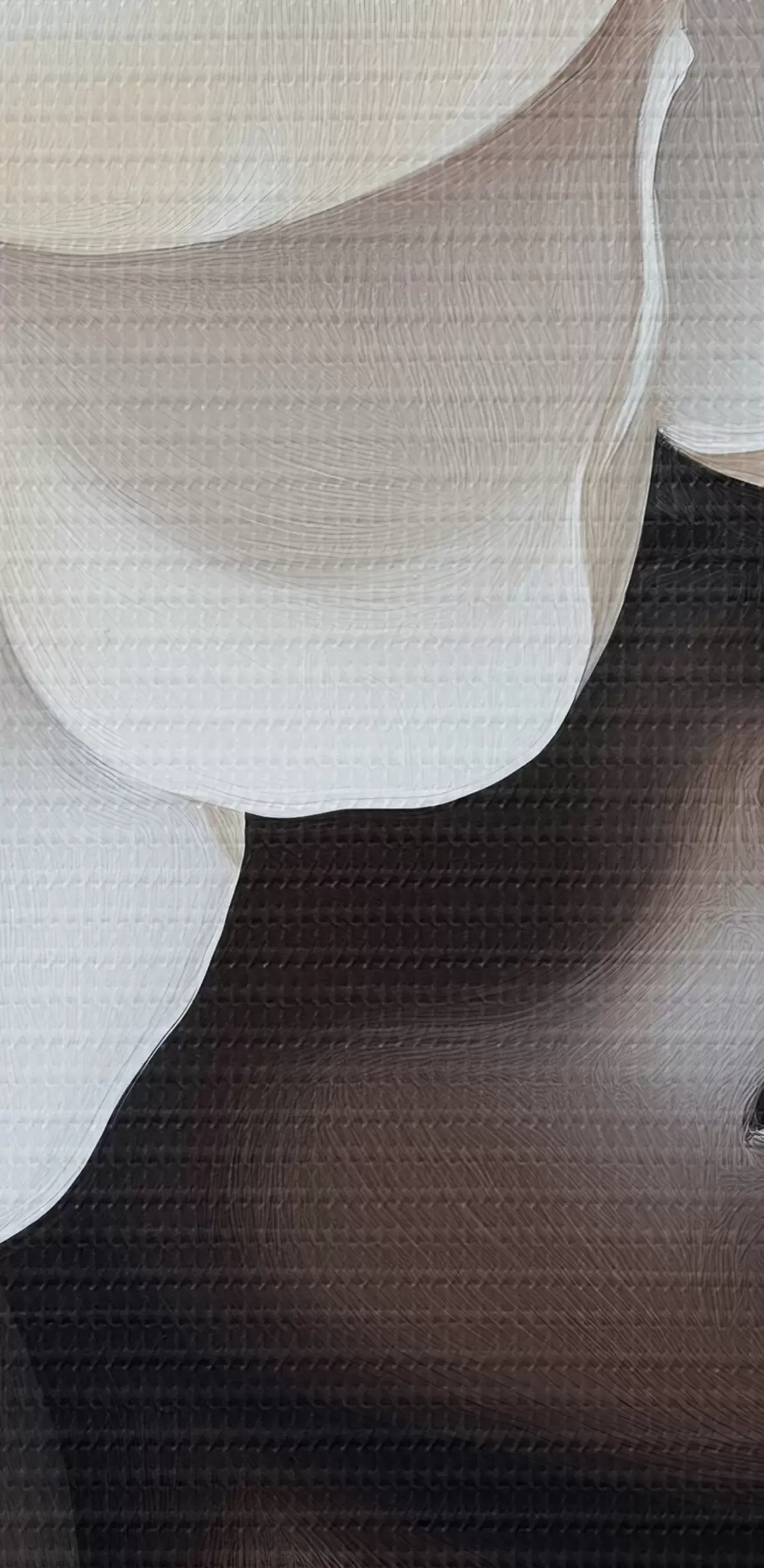 Selle lõuendi peenike niidipunus meenutab professionaalse kunstniku lõuendi pinda.